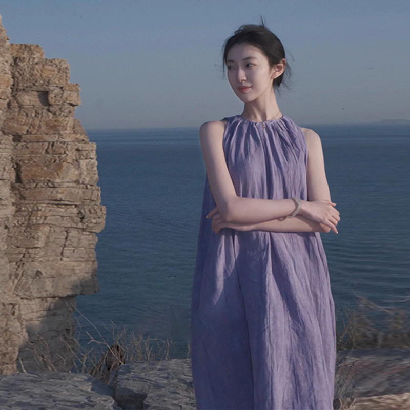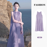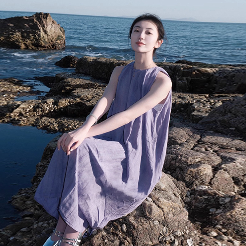 Летнее сиреневое пляжное платье без рукавов