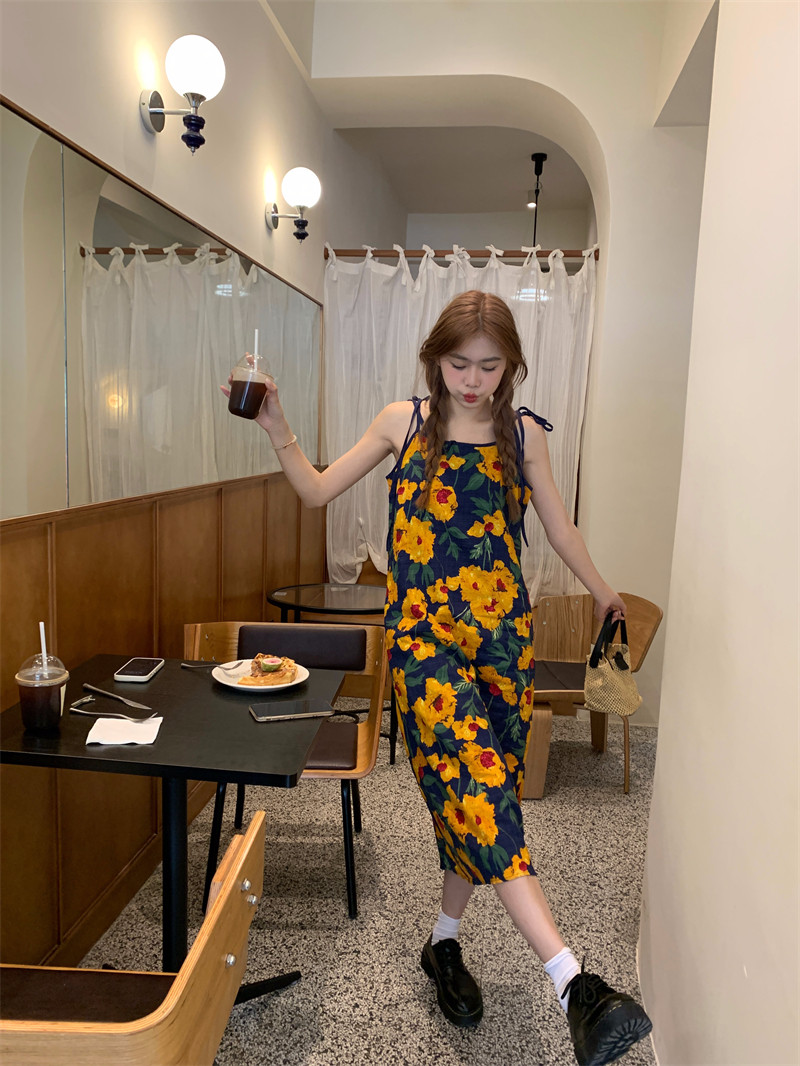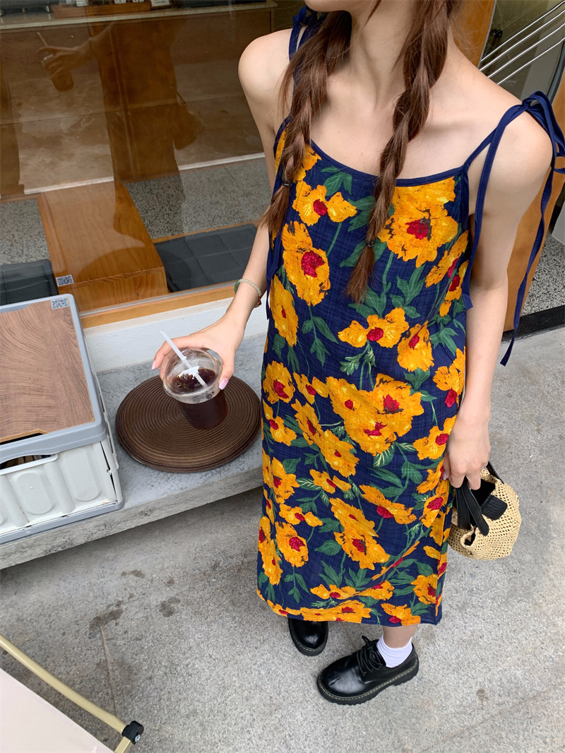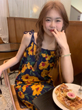 Летнее ретро платье, длинная юбка без рукавов, в цветочек, свободный крой, длина макси