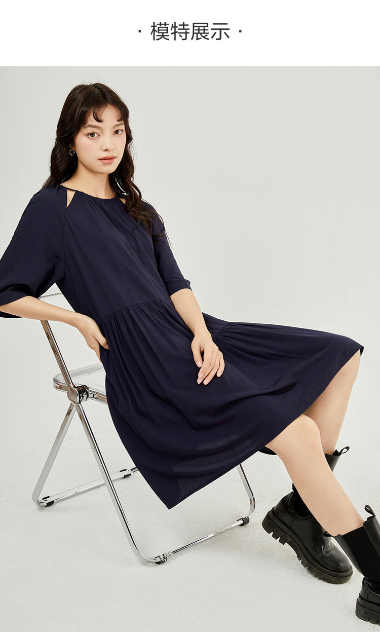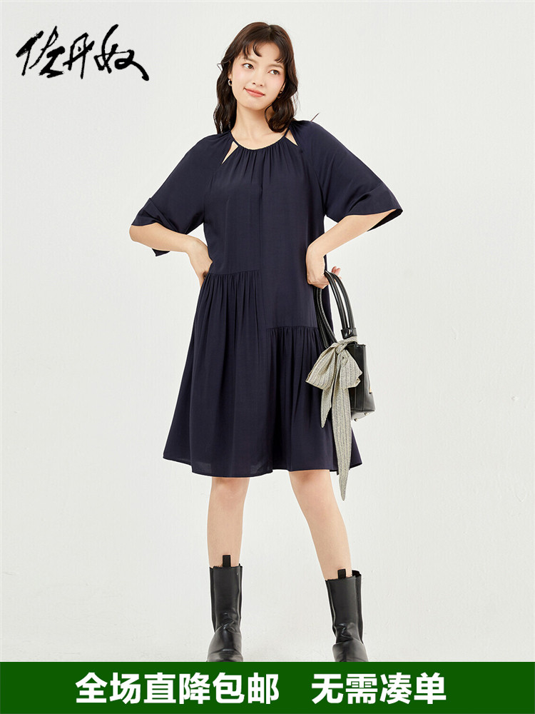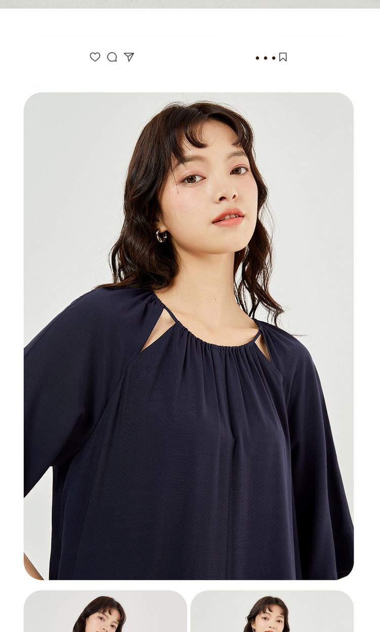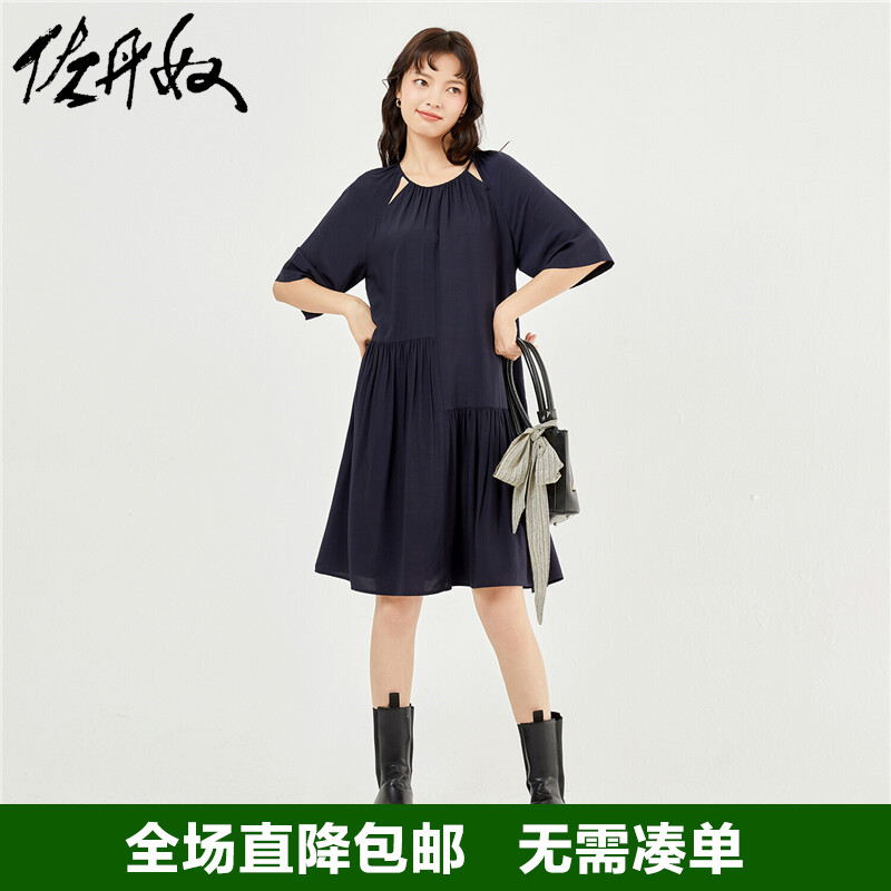 佐丹奴 Одевать женское новое скользкое плетение модного стареющего плеча круглого воротника с семидушной рукавом 18463219