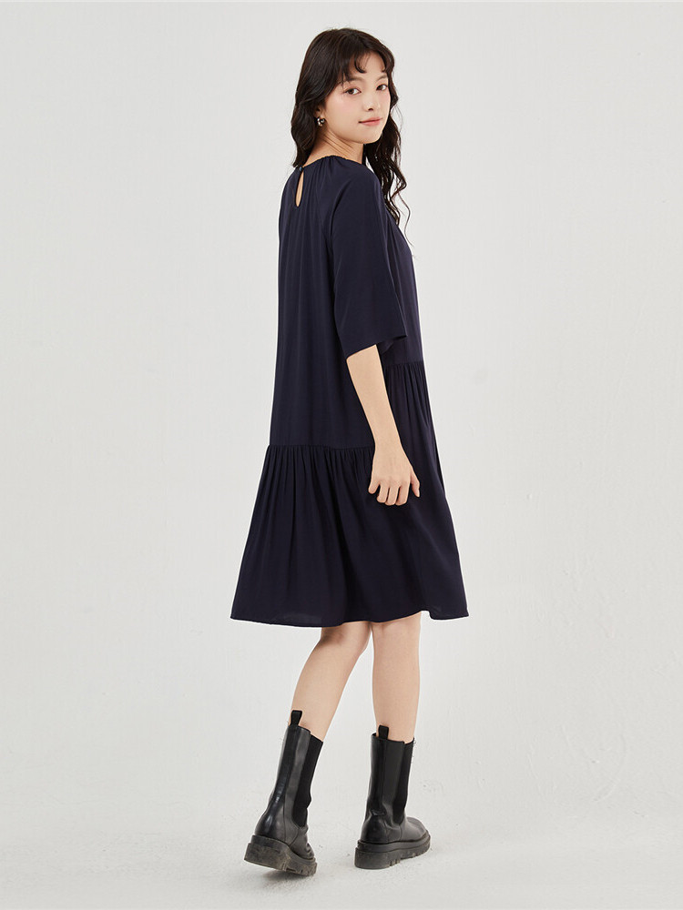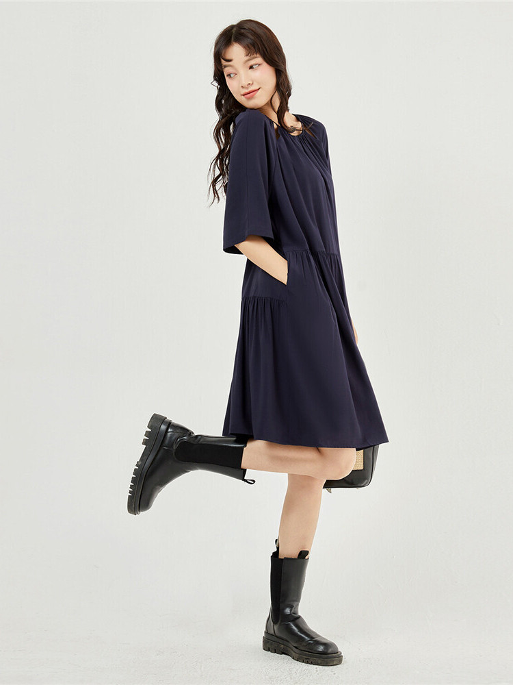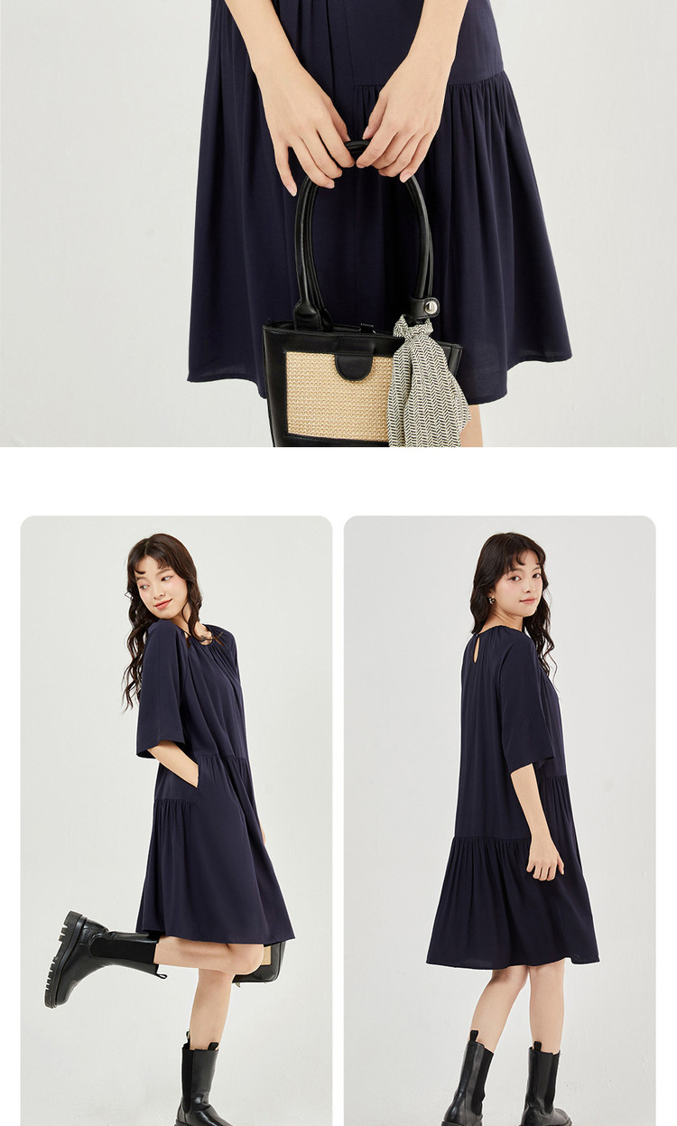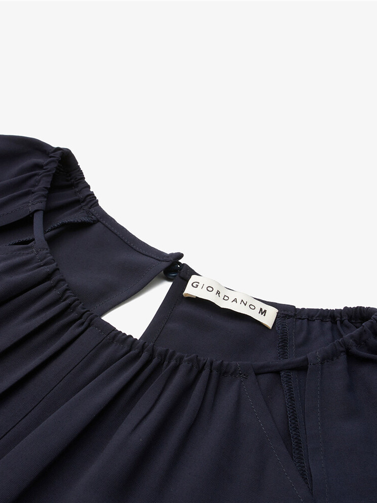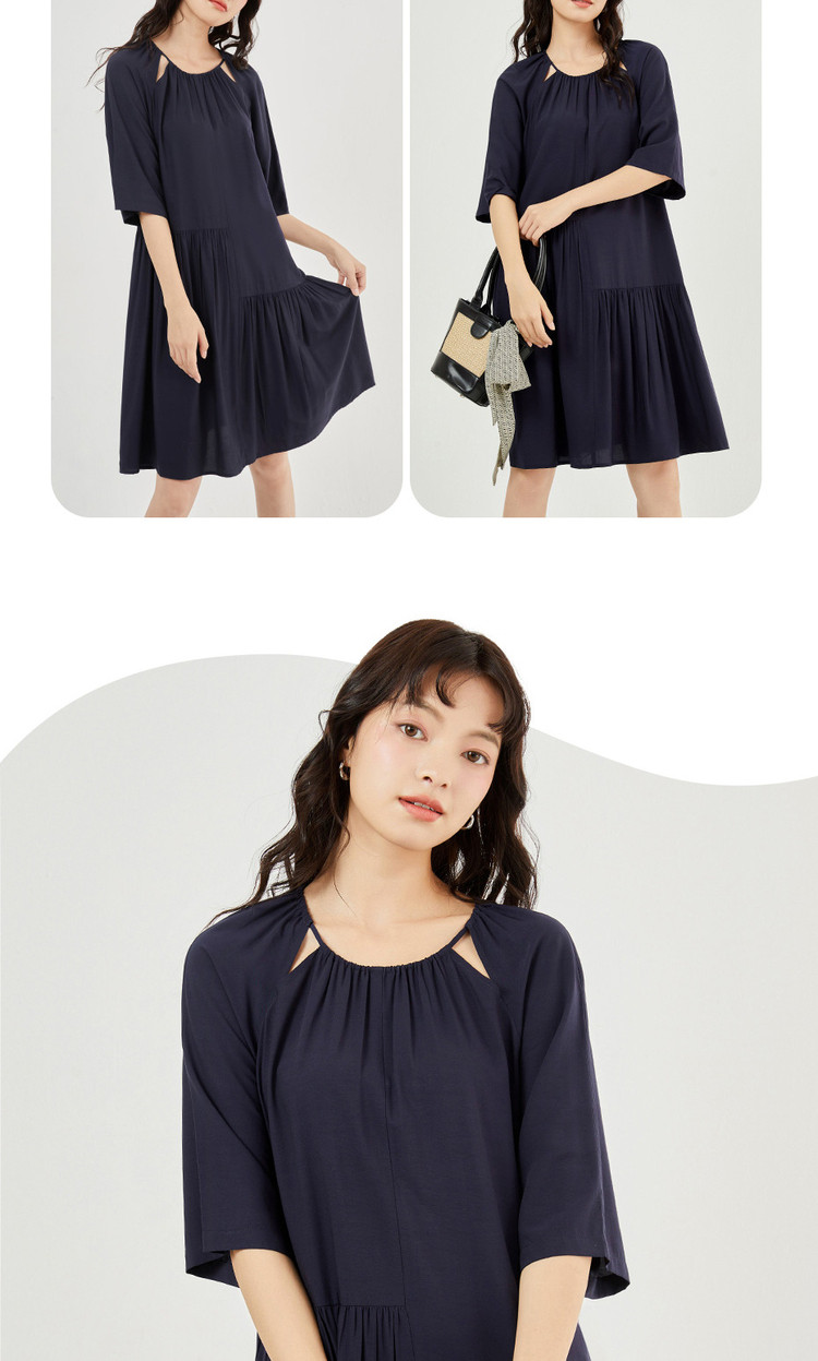 佐丹奴 Одевать женское новое скользкое плетение модного стареющего плеча круглого воротника с семидушной рукавом 18463219
