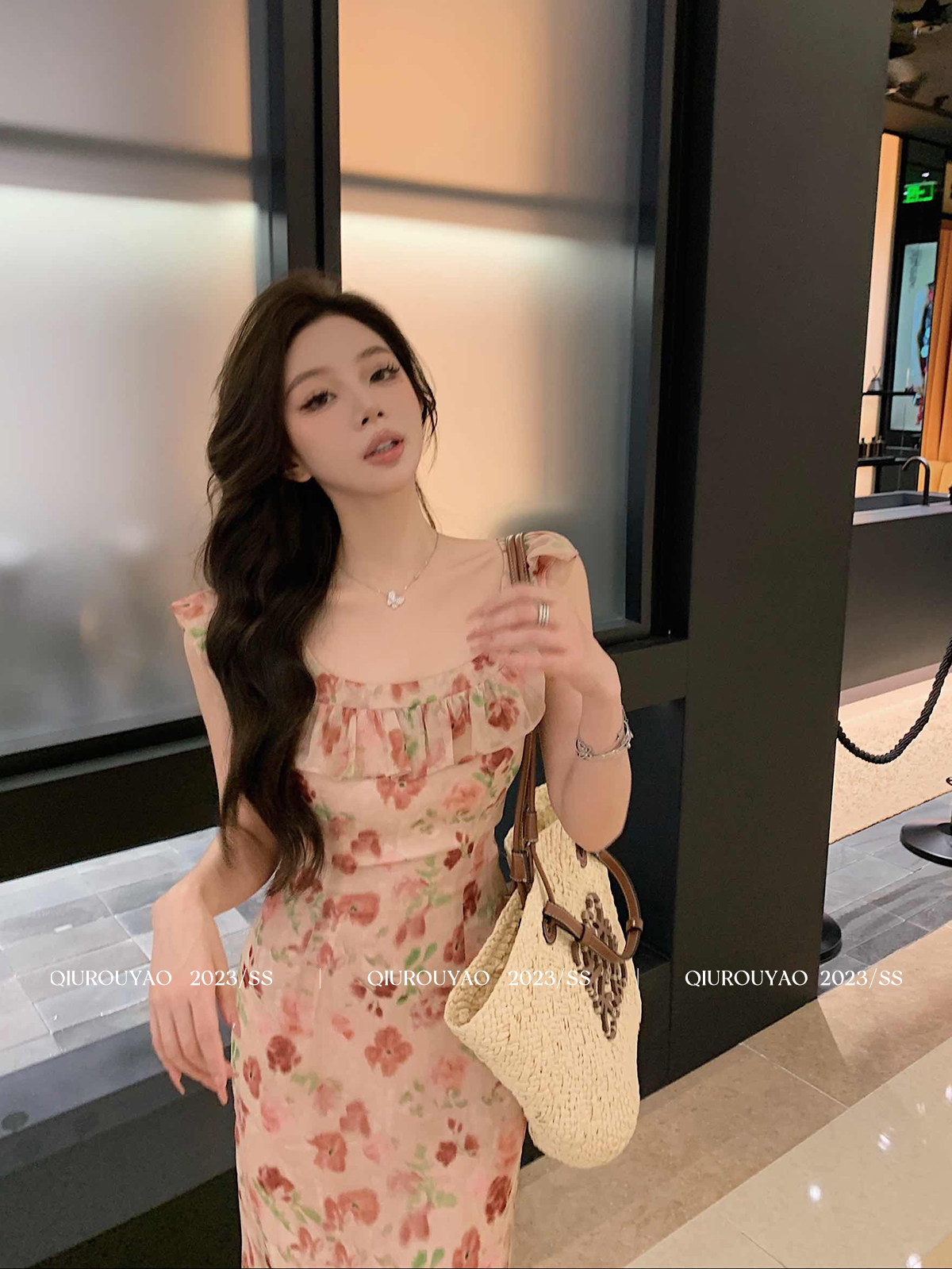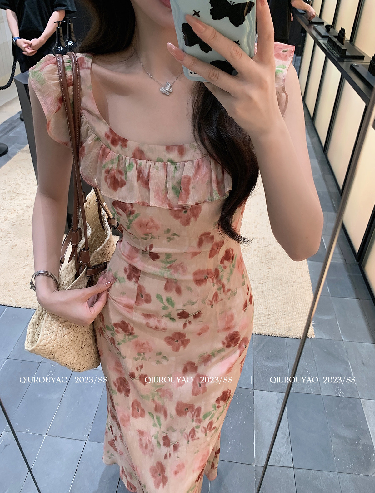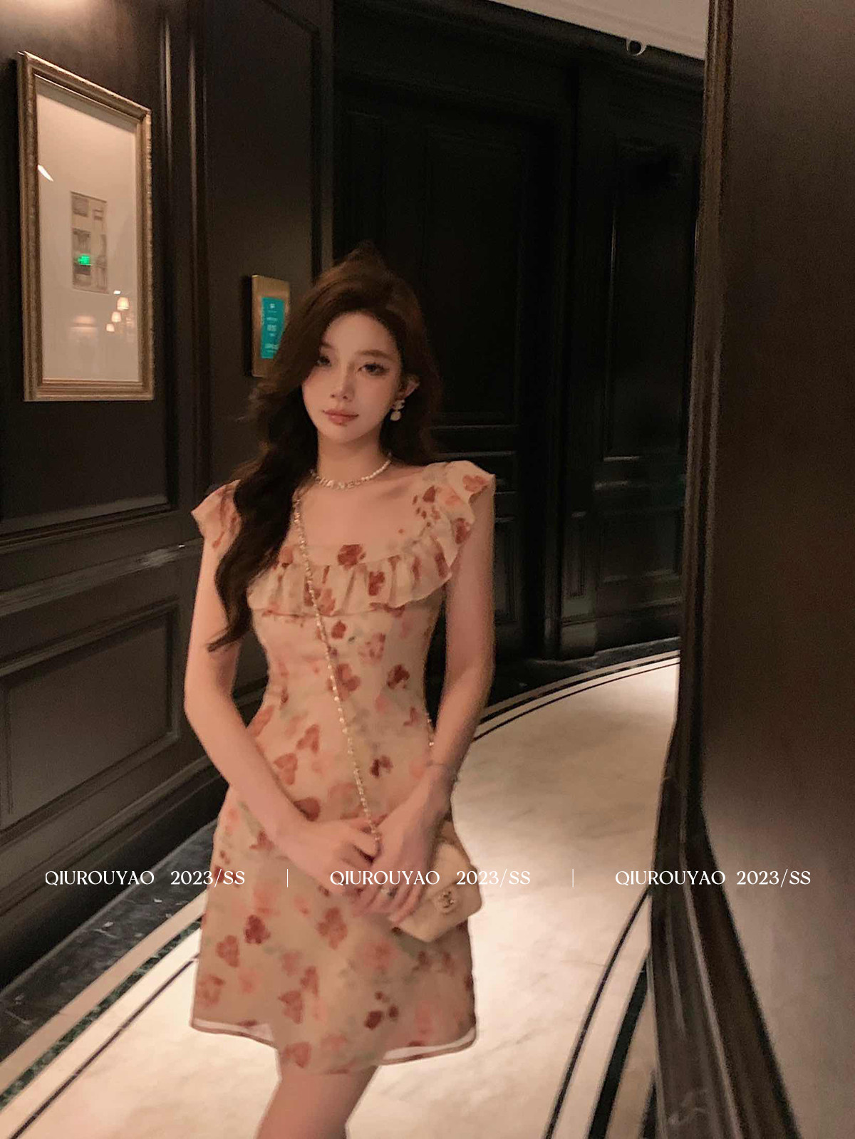 邱肉瑶 Летний милый приталенный корсет, цветочный принт, изысканный стиль