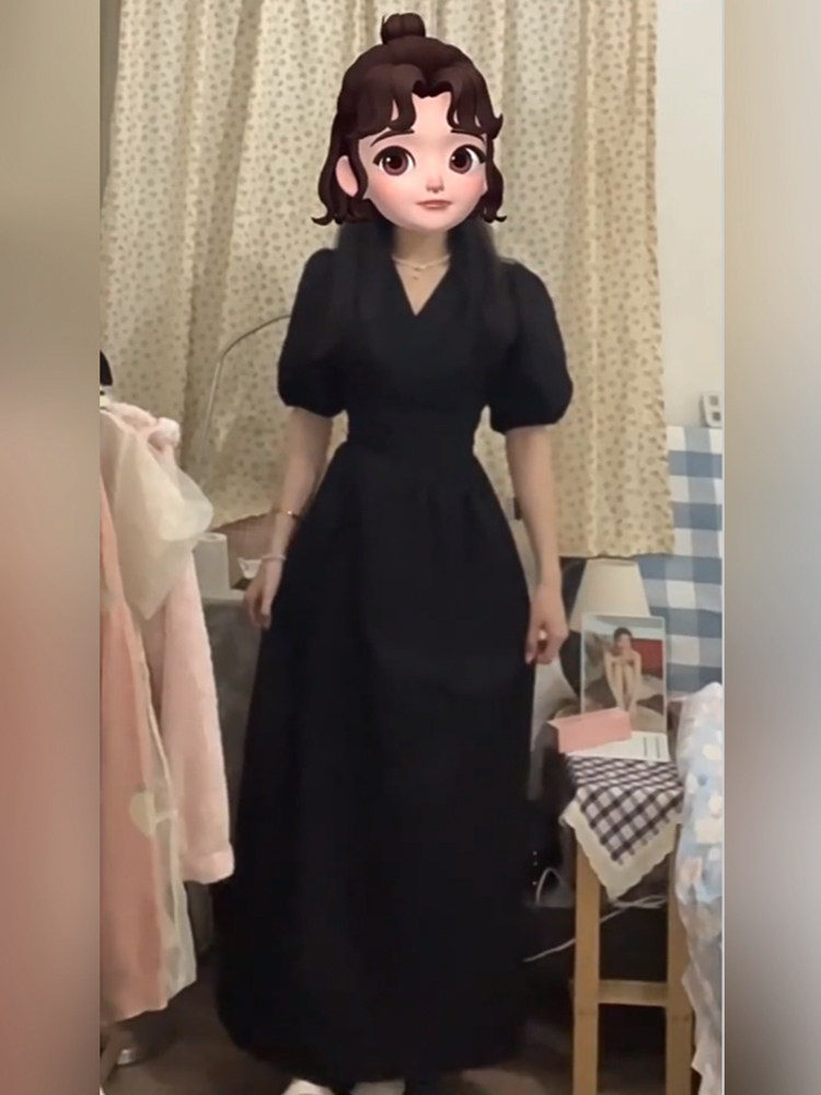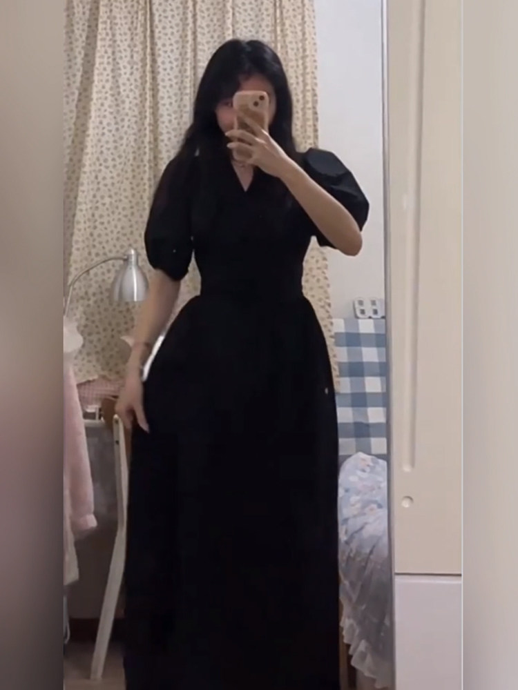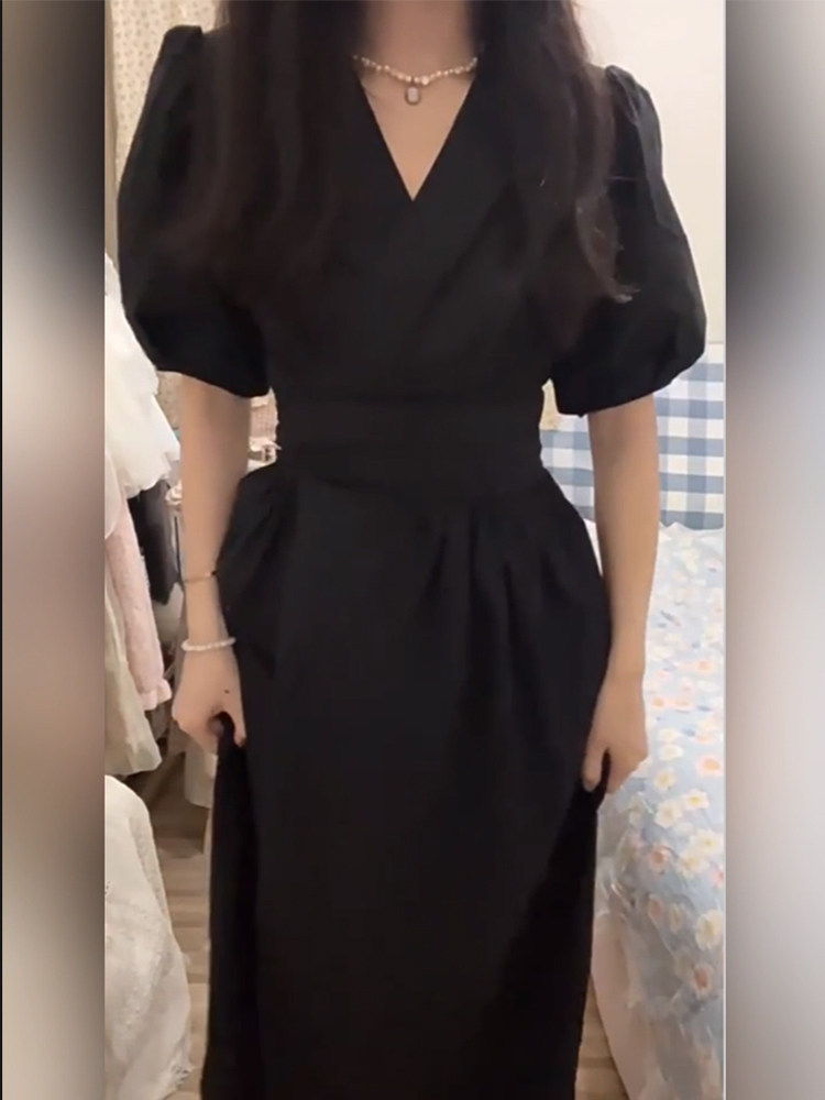 Черный летний приталенный корсет, длинная юбка, французский стиль, рукава фонарики, V-образный вырез, размер, изысканный стиль