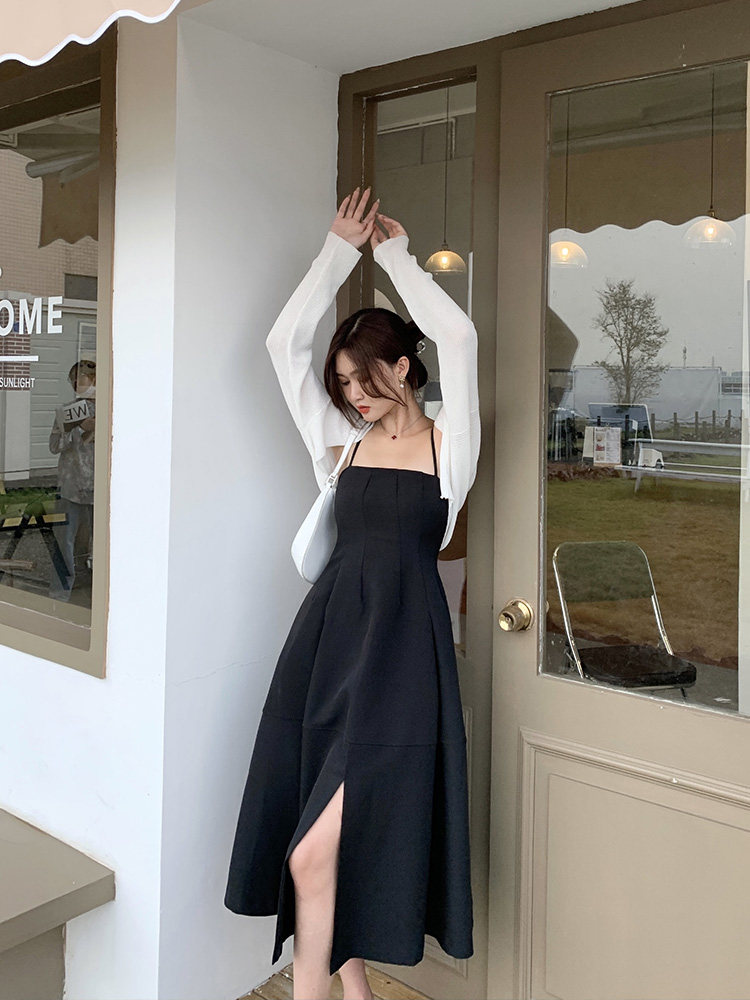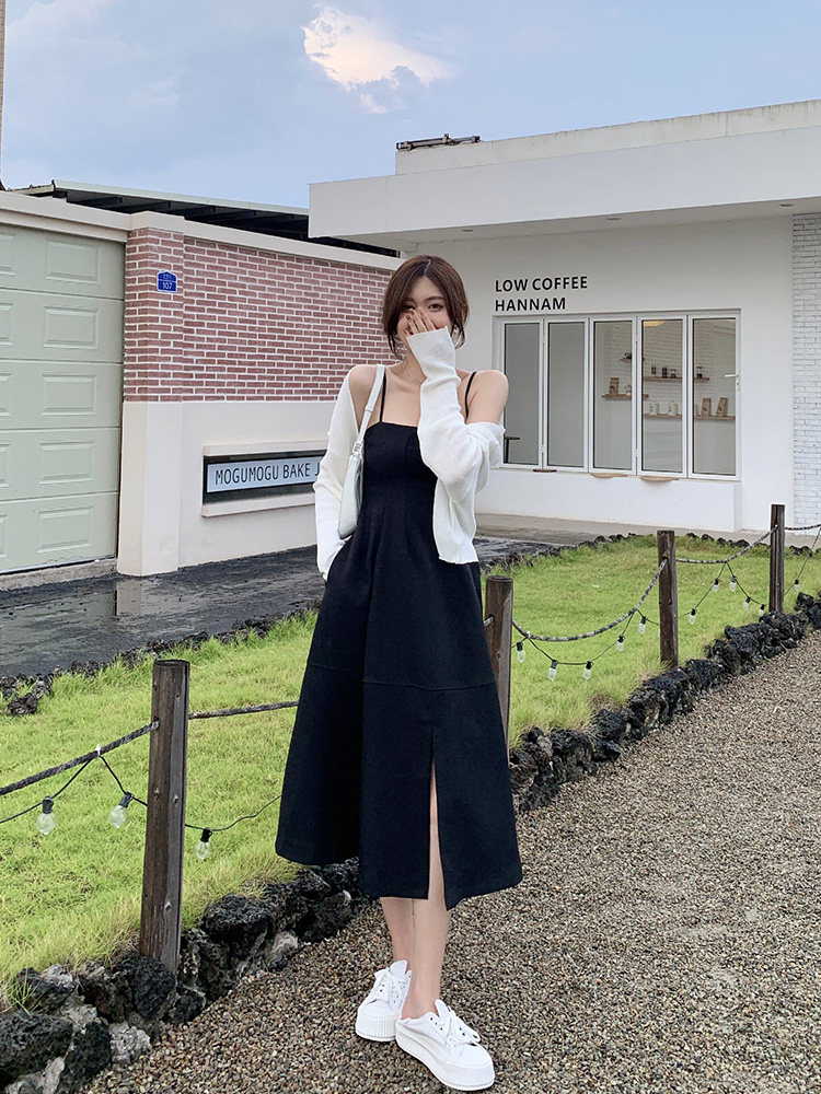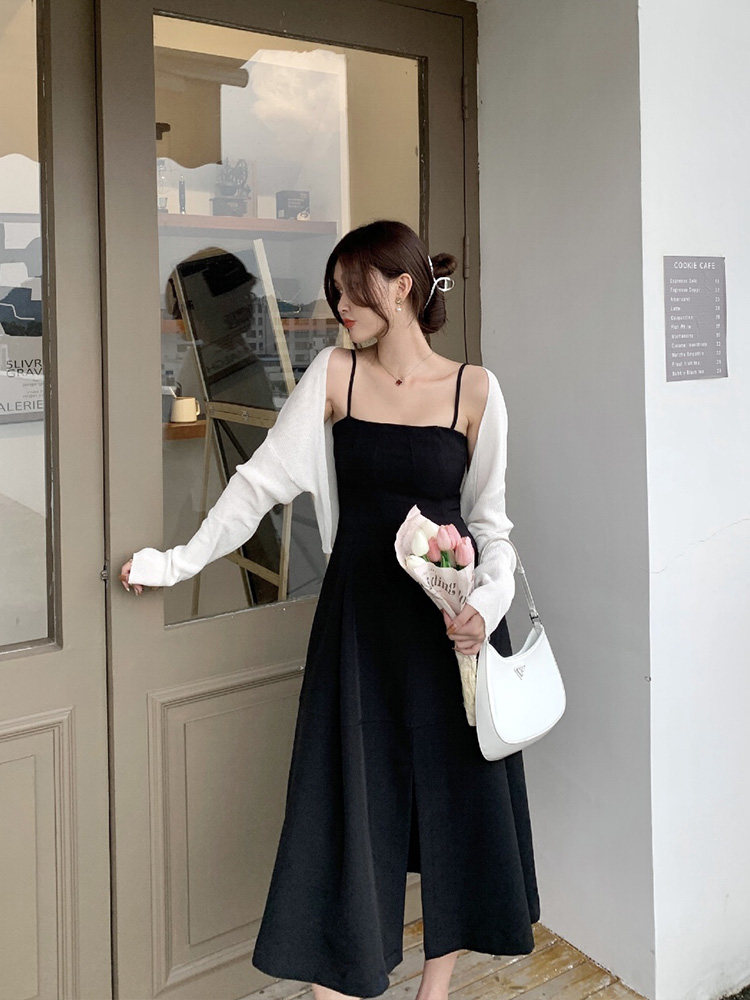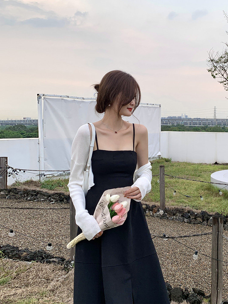 | Цвет: | Белый кардиган, Черное платье-комбинация |