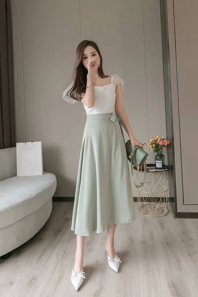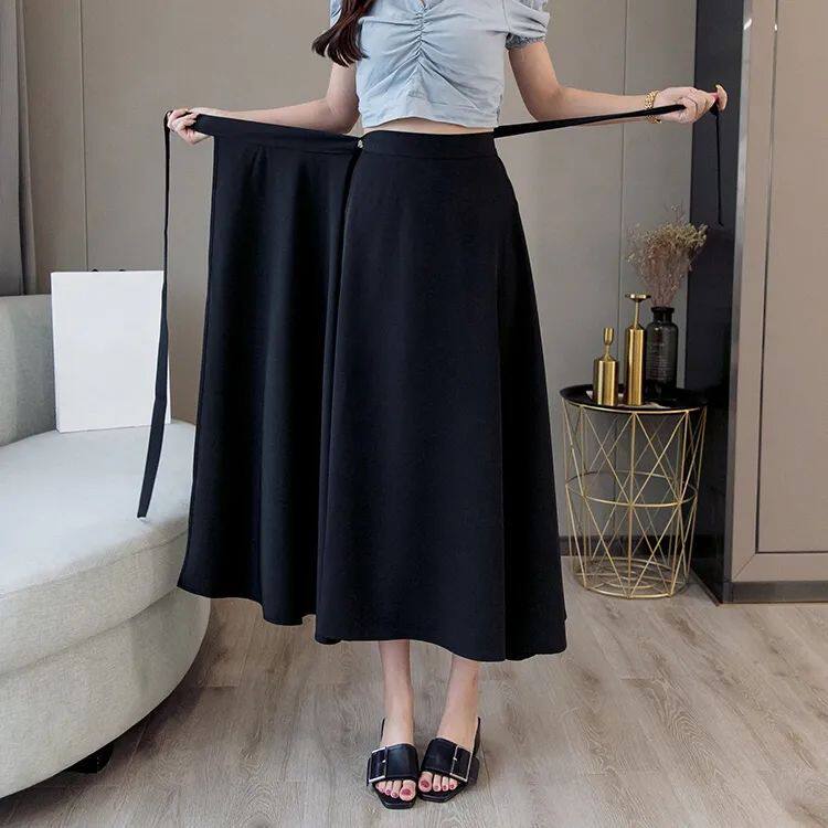 Длинная летняя юбка в складку, длинная юбка, высокая талия, А-силуэт, французский стиль, в корейском стиле