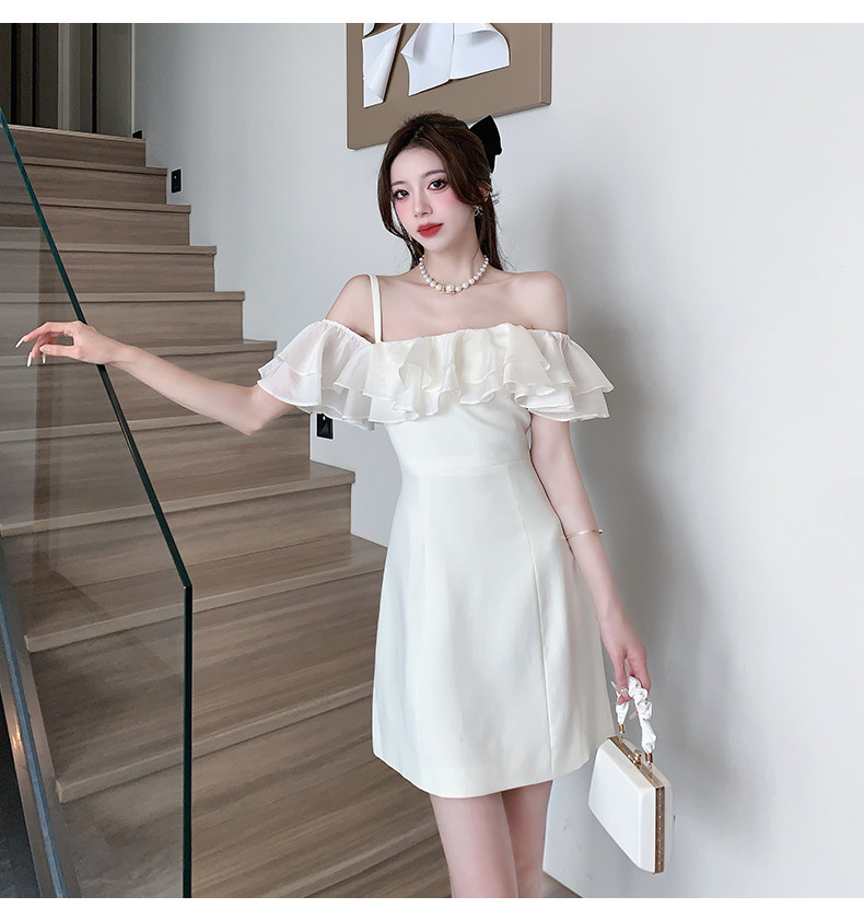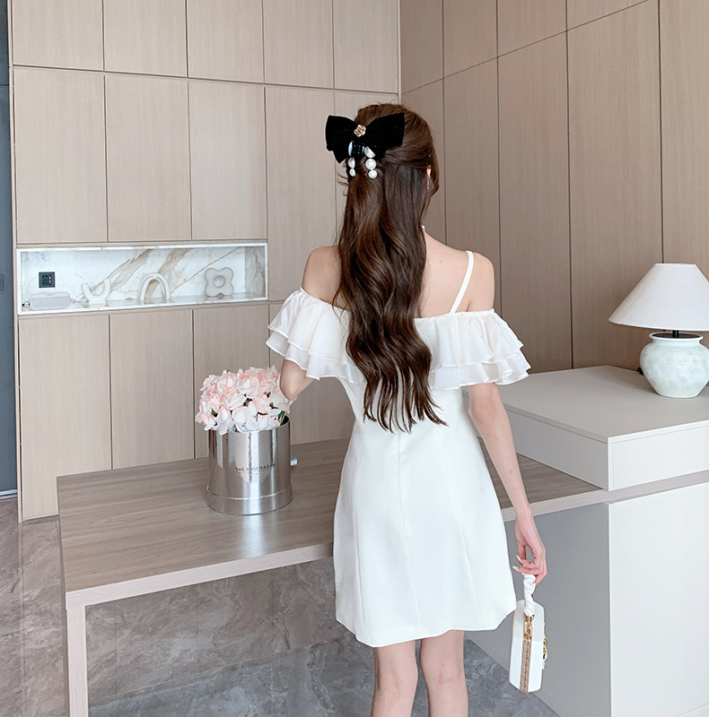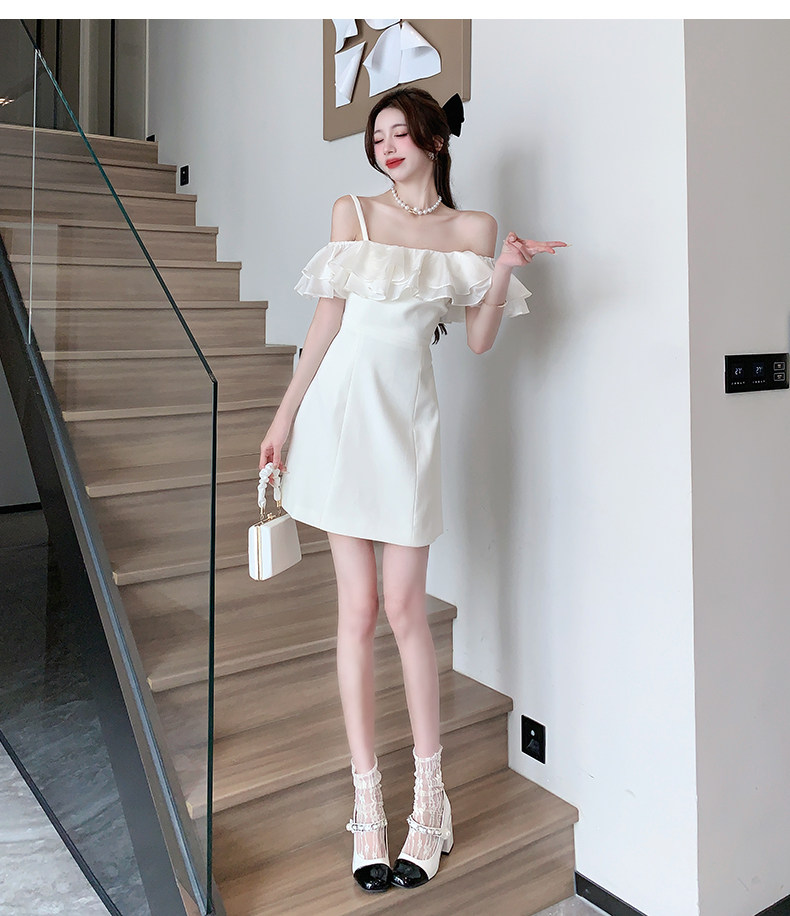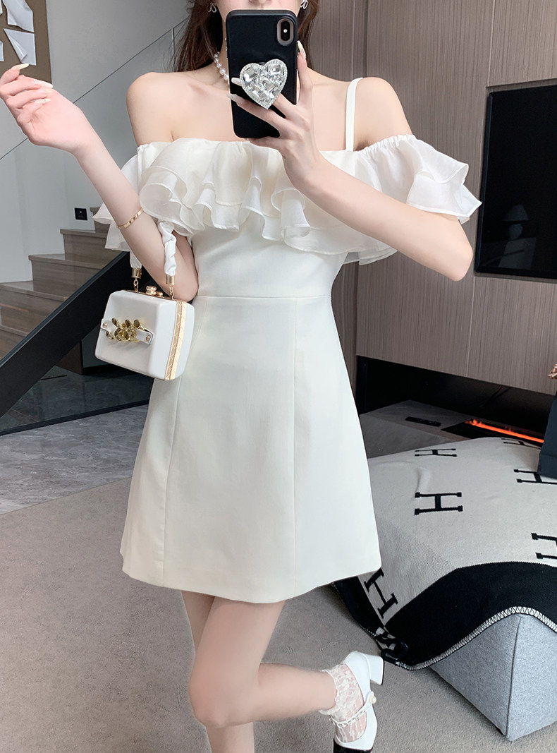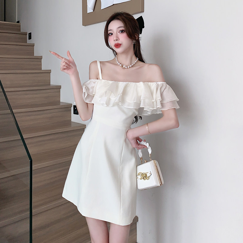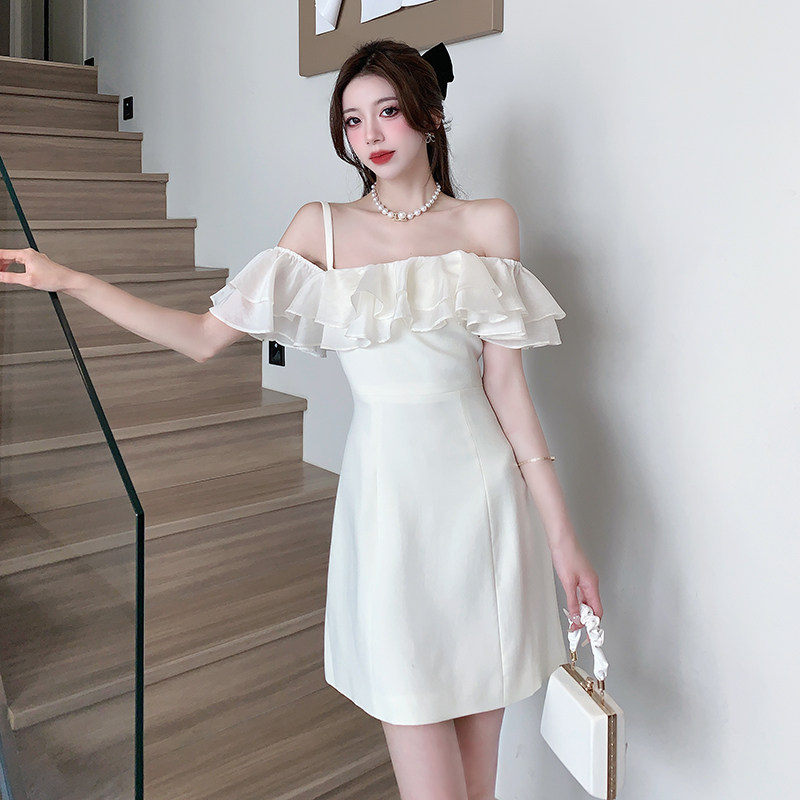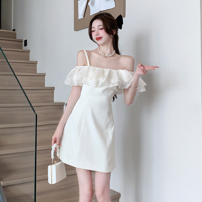 Белый бюстгальтер-топ, летнее платье, юбка, мини-юбка, французский стиль, яркий броский стиль, открытые плечи