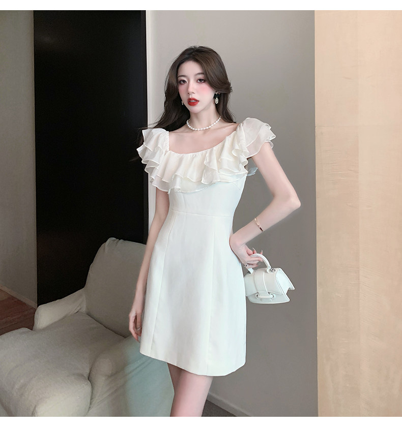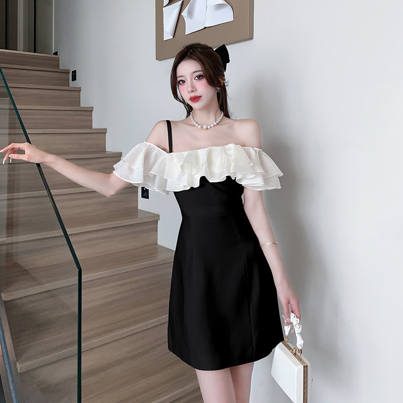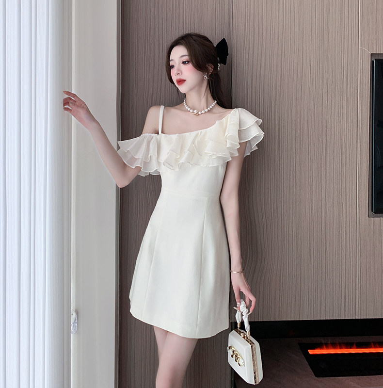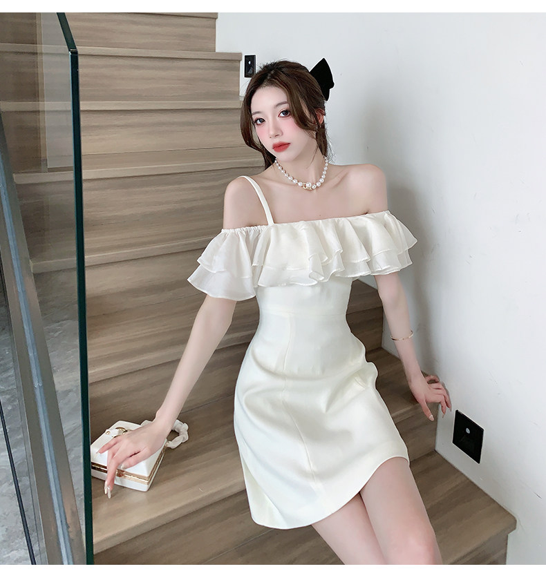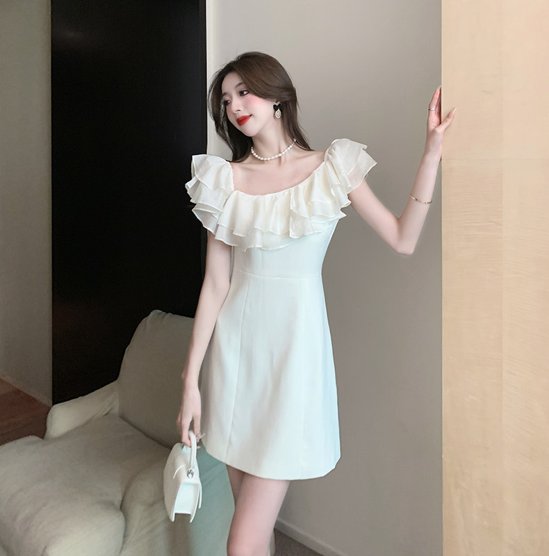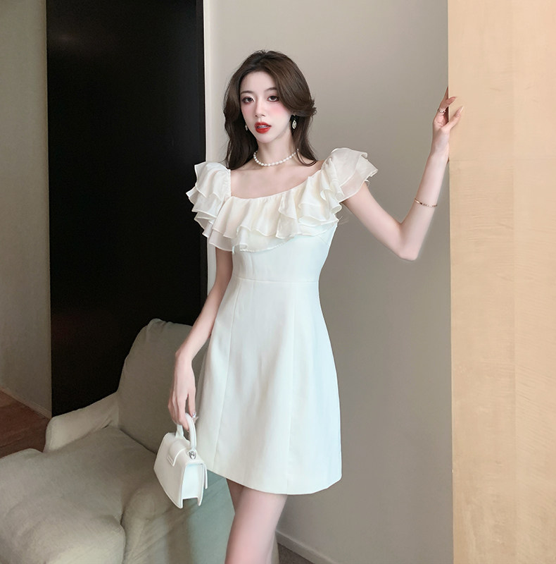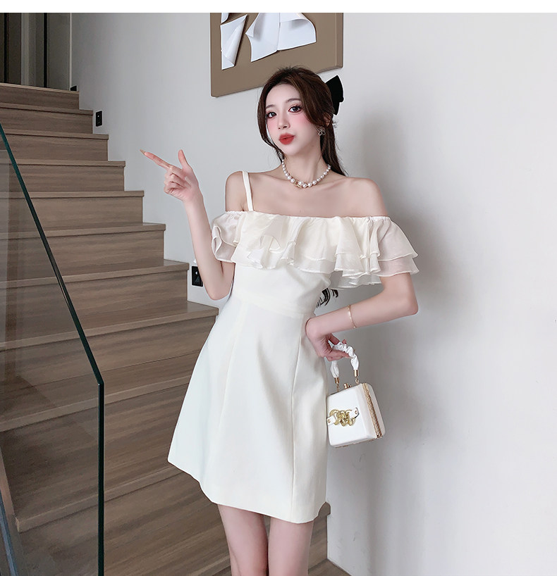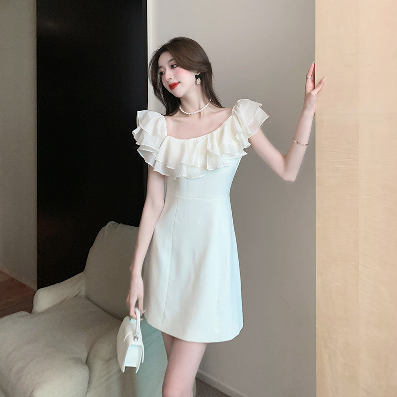 Белый бюстгальтер-топ, летнее платье, юбка, мини-юбка, французский стиль, яркий броский стиль, открытые плечи