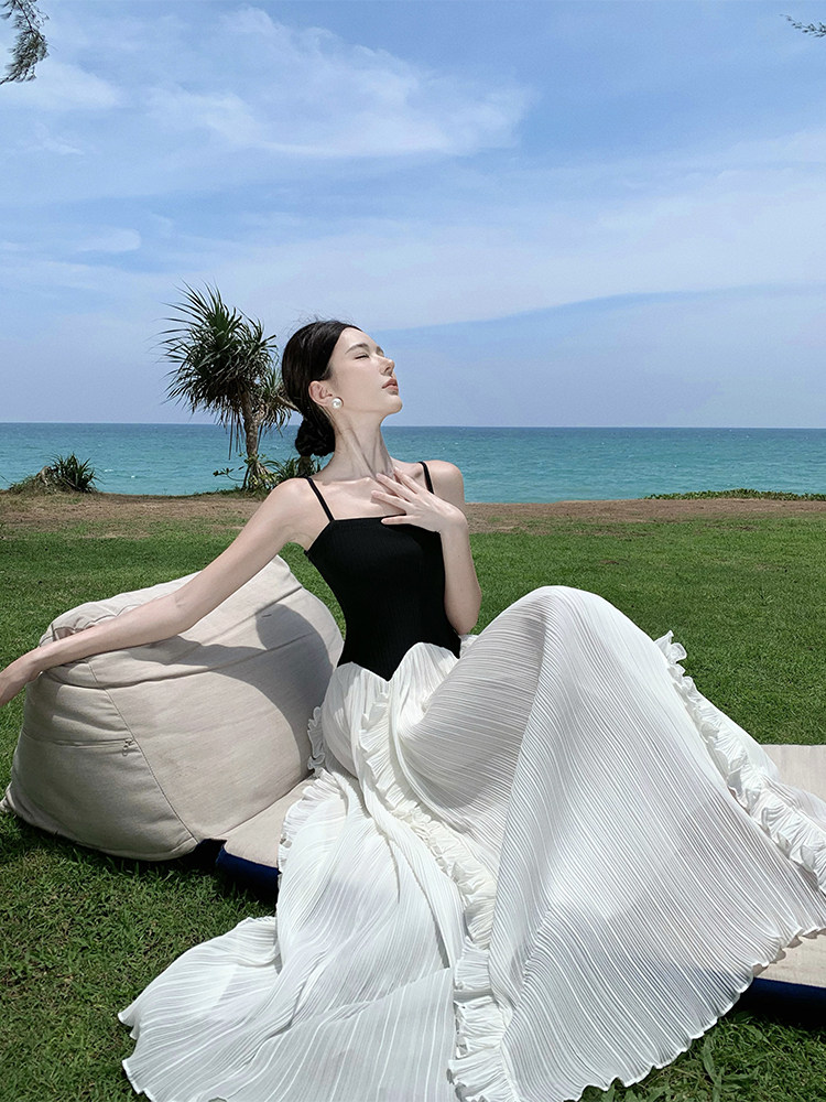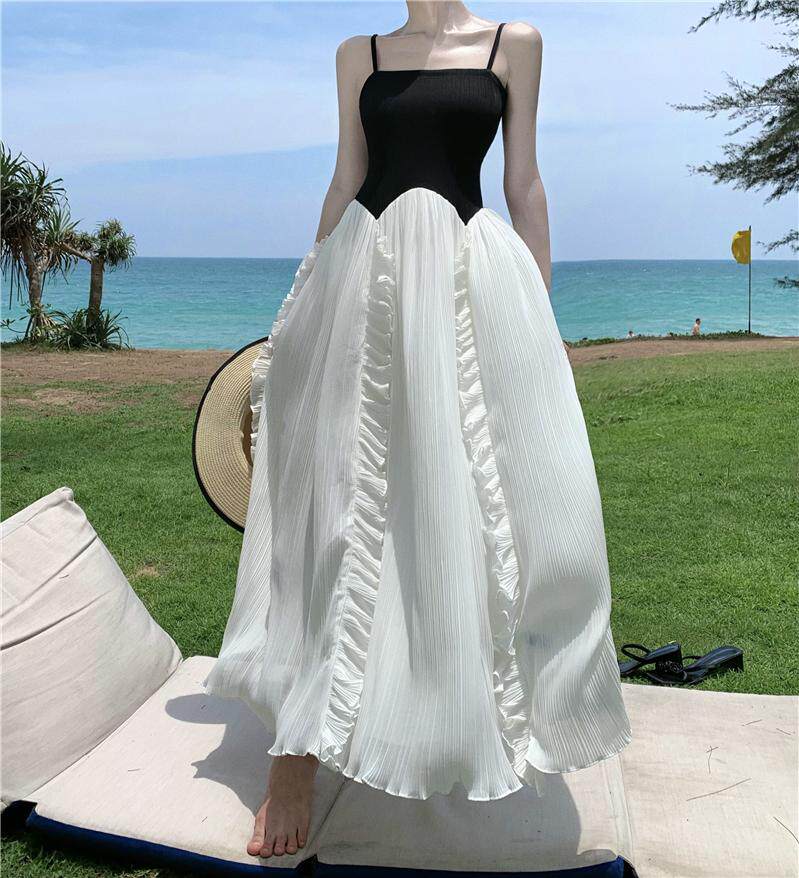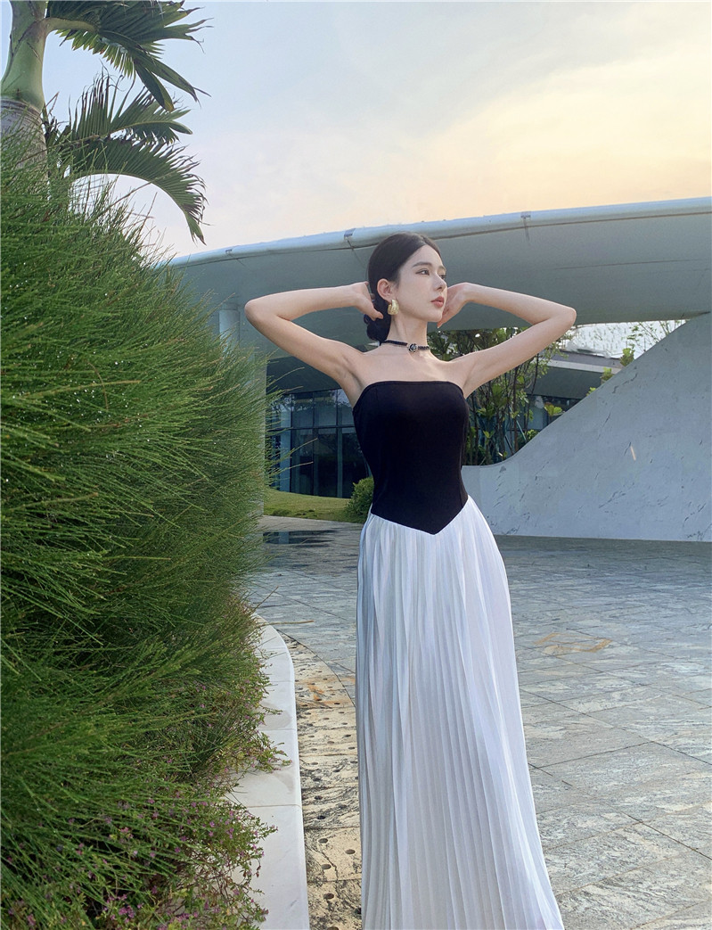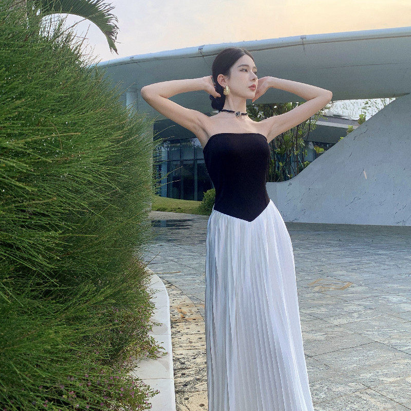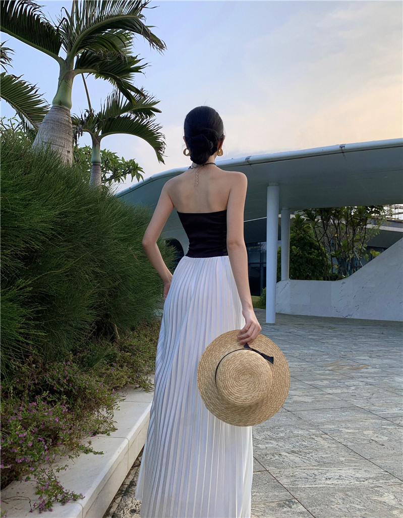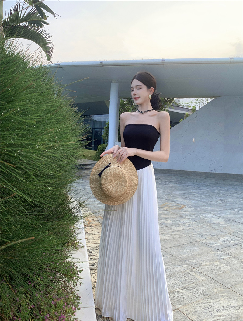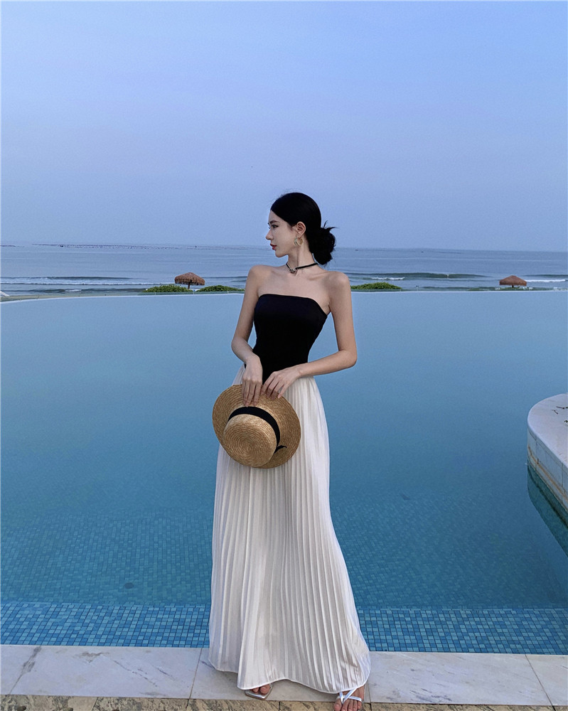 Пляжная длинная юбка, эластичный летний топ без лямок, юбка в складку, французский стиль, открытые плечи
