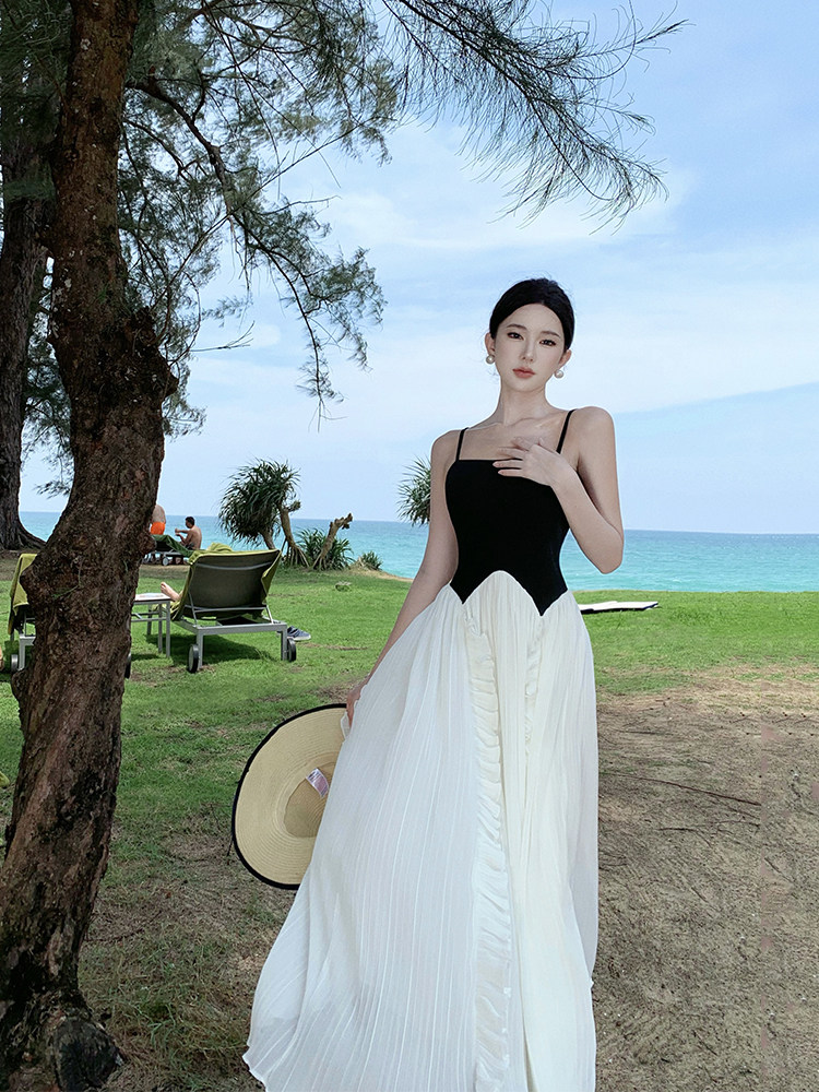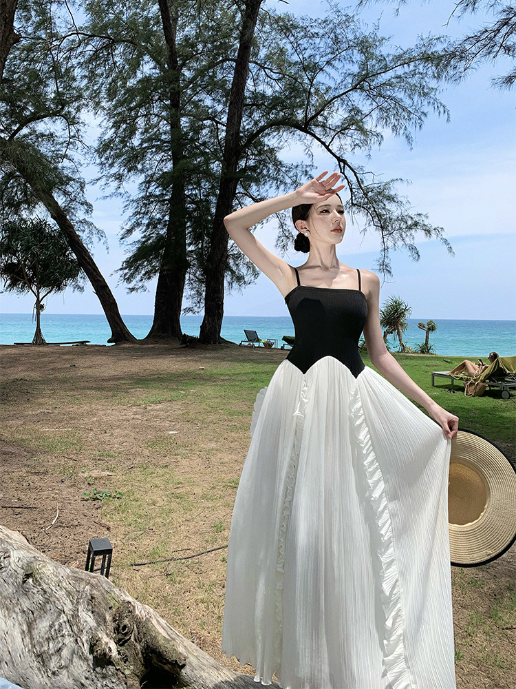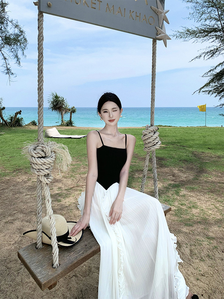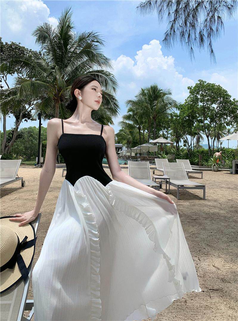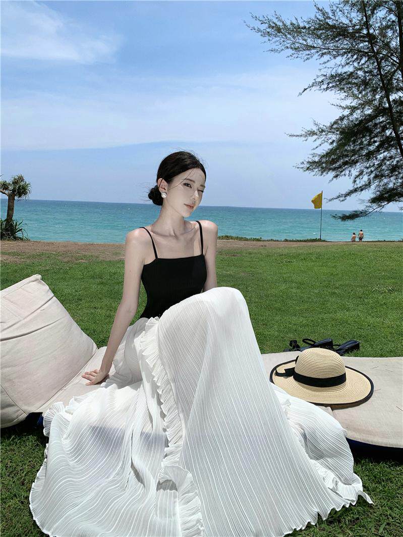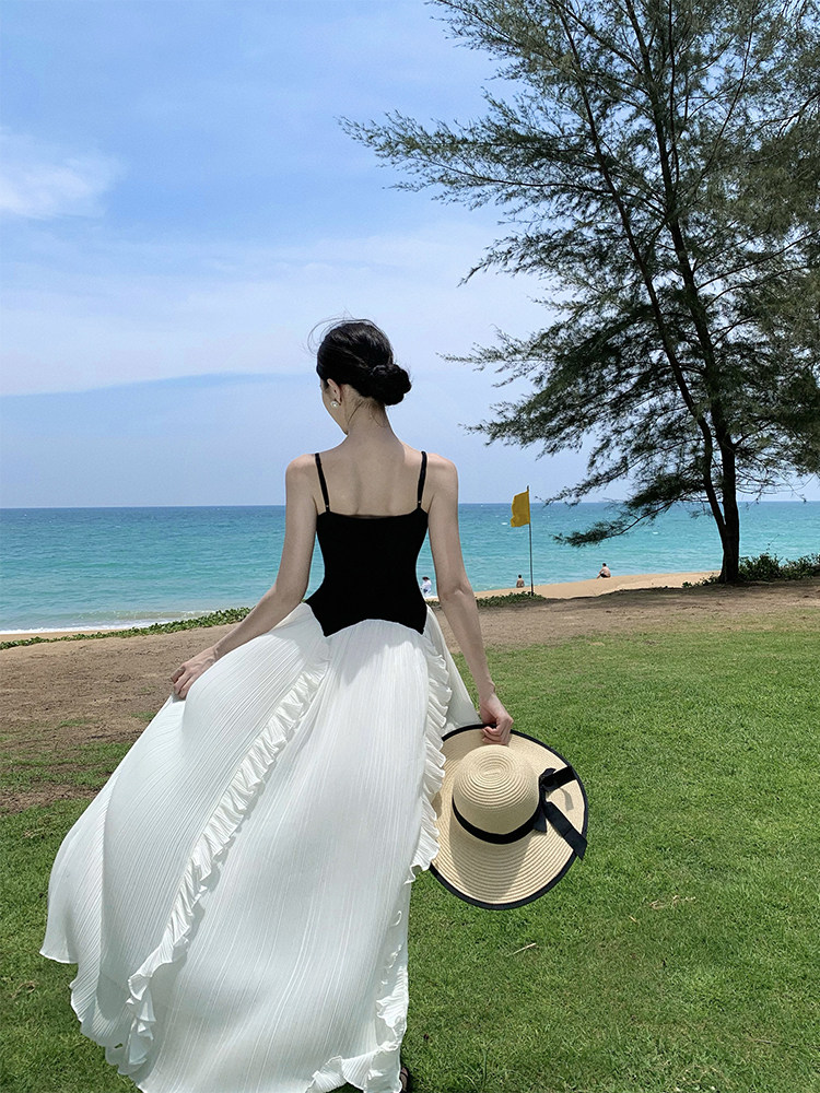 Пляжная длинная юбка, эластичный летний топ без лямок, юбка в складку, французский стиль, открытые плечи