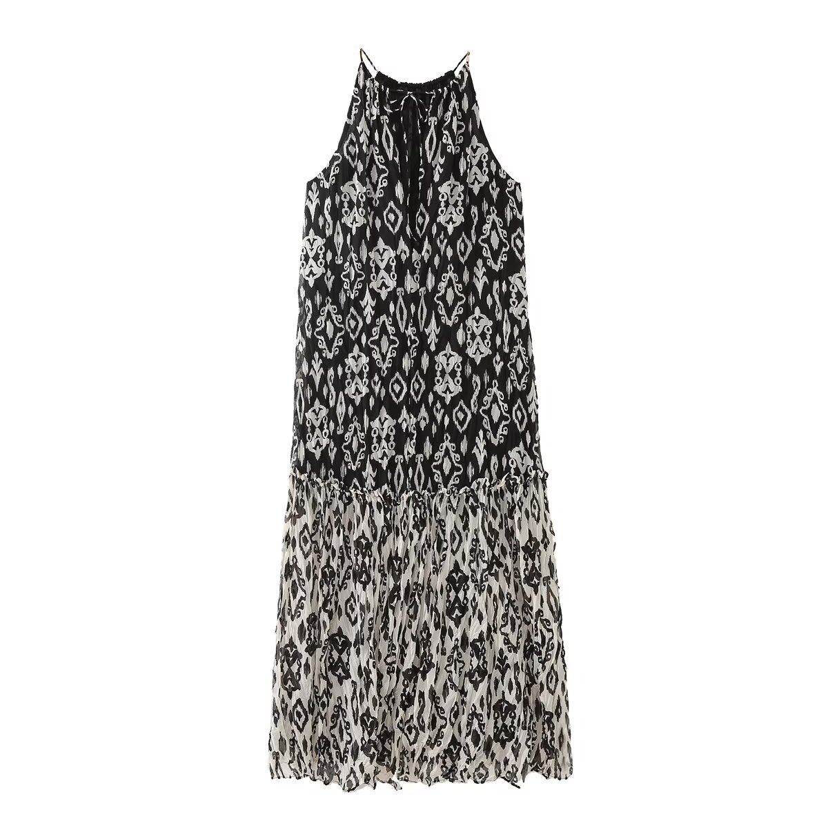 Kaslead New Women's European и American Style Printing Printing Flute Hearing Neck Workar платье 2548241 800