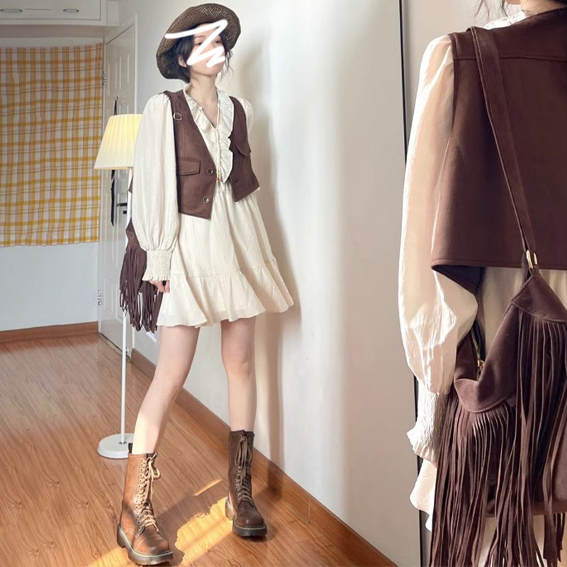 | Цвет: | Абрикосовое короткое платье, мини-юбка, 【Коричневый жилет одиночный кусок】, [Жилет + платье] [Осень и зима/маленький вкус/дата/высококачественные наряды для маленьких людей/сестринской юбки/Хэллоуинская одежда/уникальная и супер симпатичная/сильная аура/отведение/показ фигура/любезность/юбка принцессы/французский язык] |