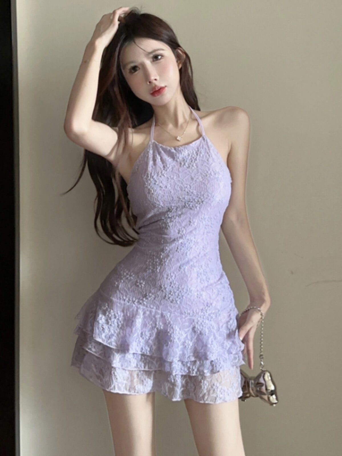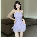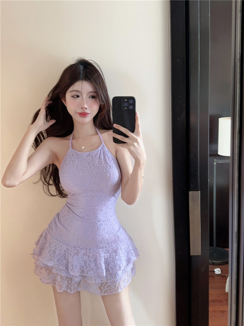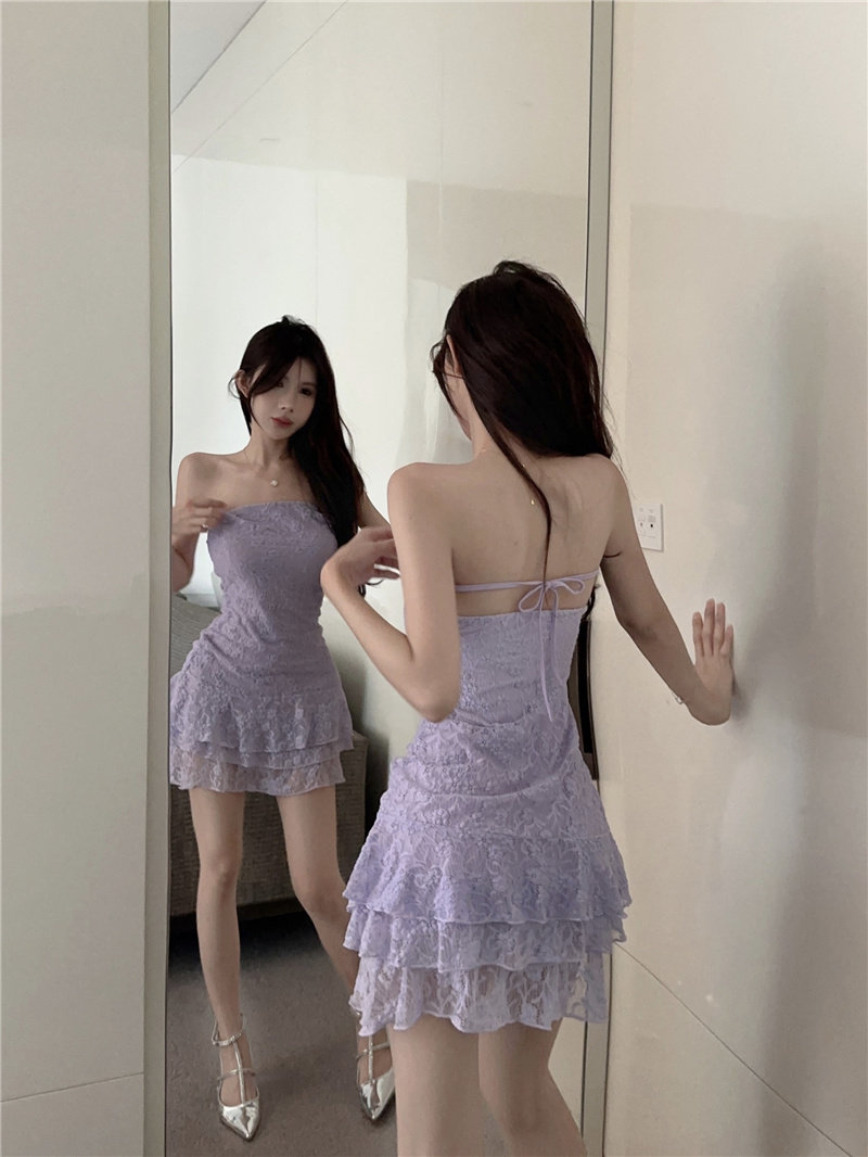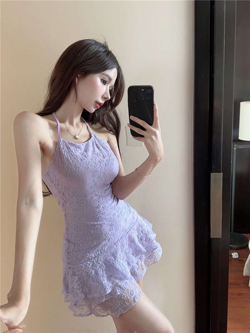 Кружевное платье-комбинация, приталенная юбка, платье, с открытой спиной, подходит для подростков