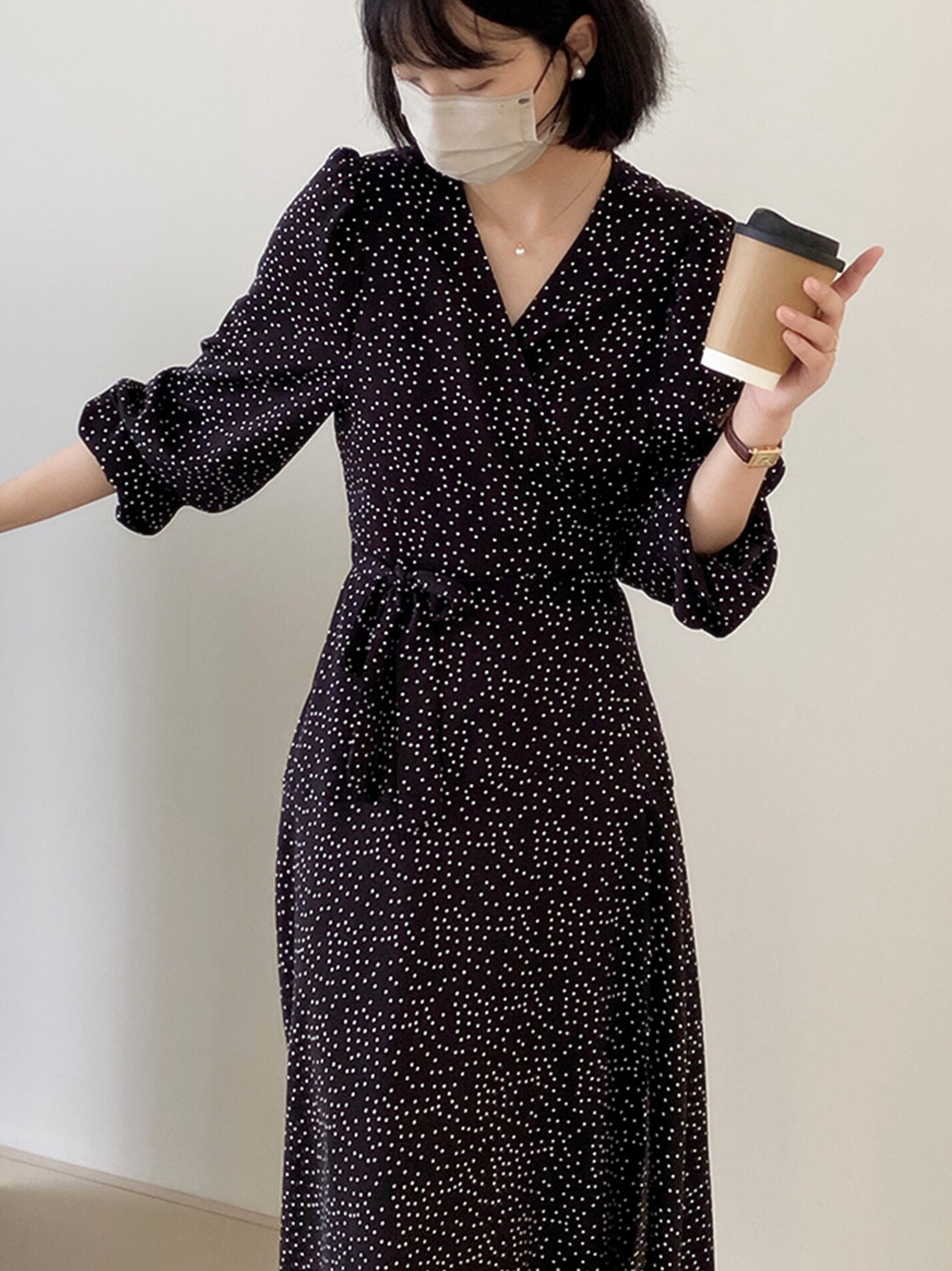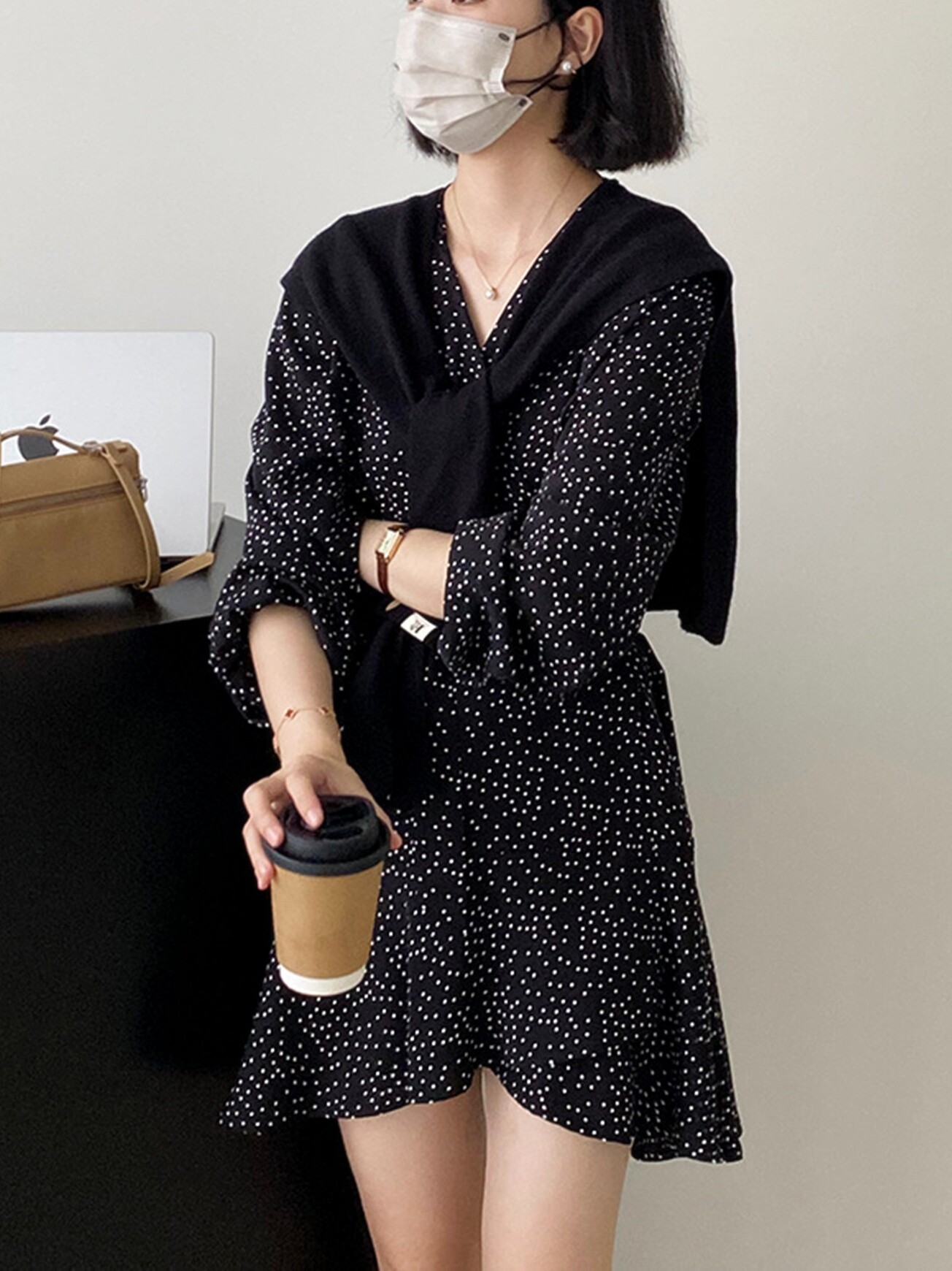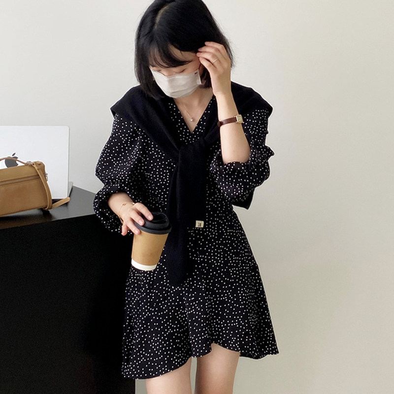 Черный лонгслив, платье, юбка, подходит для подростков, V-образный вырез, французский стиль