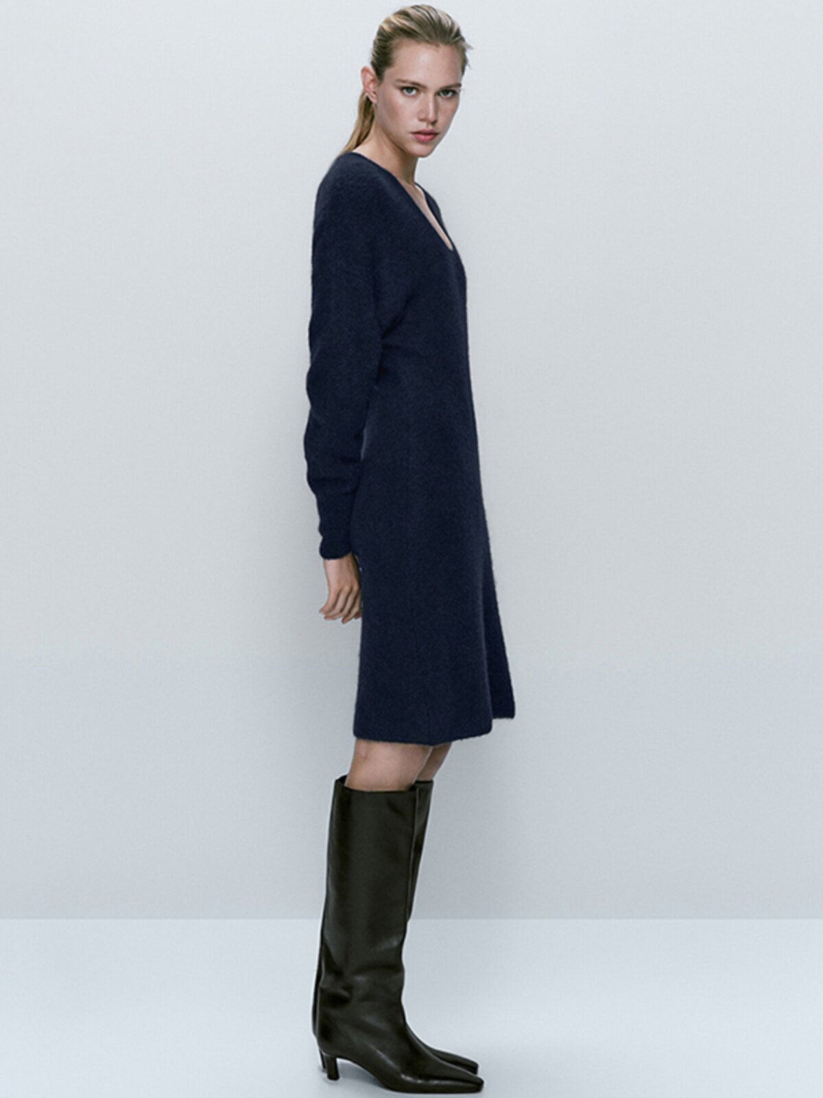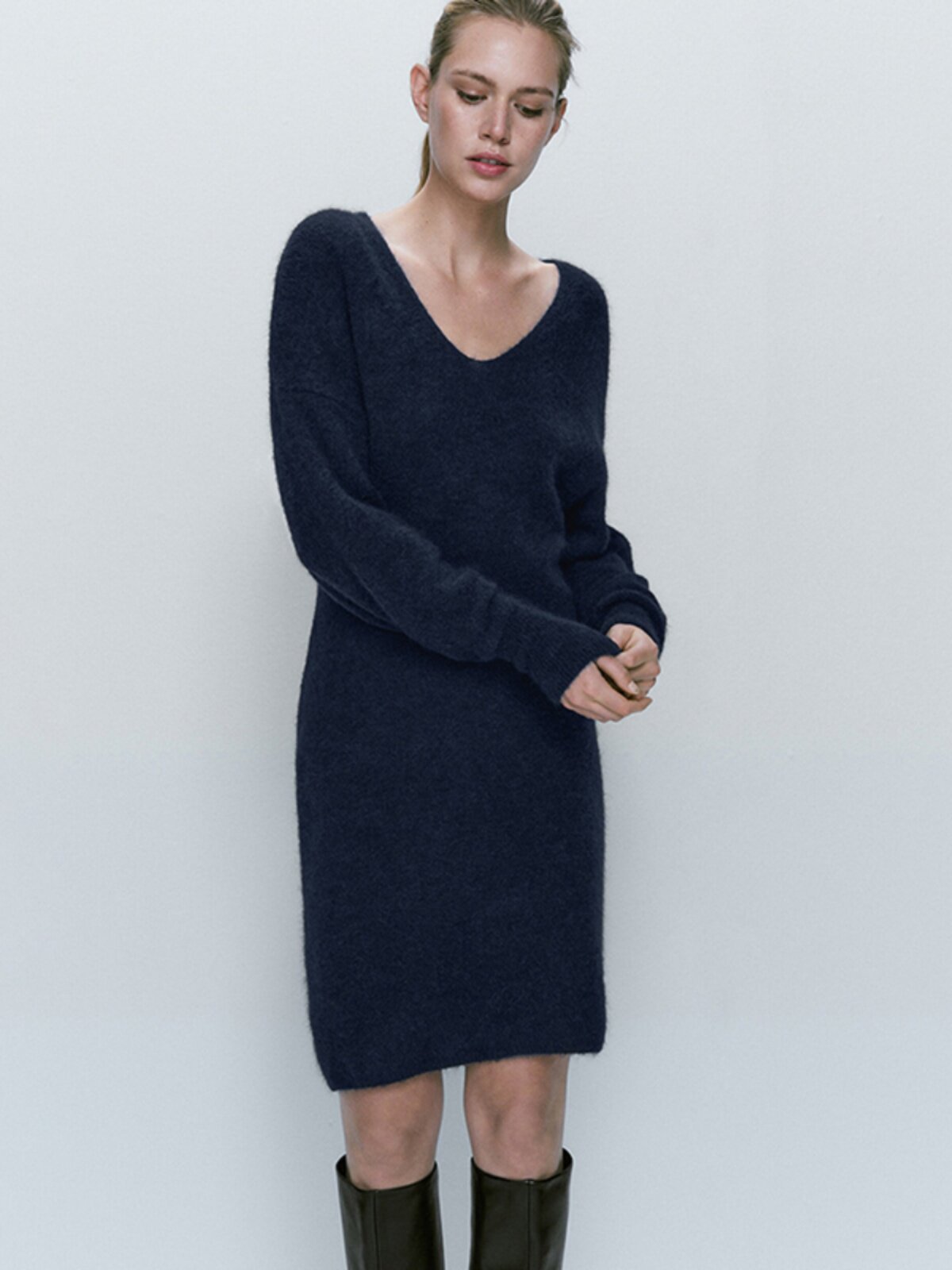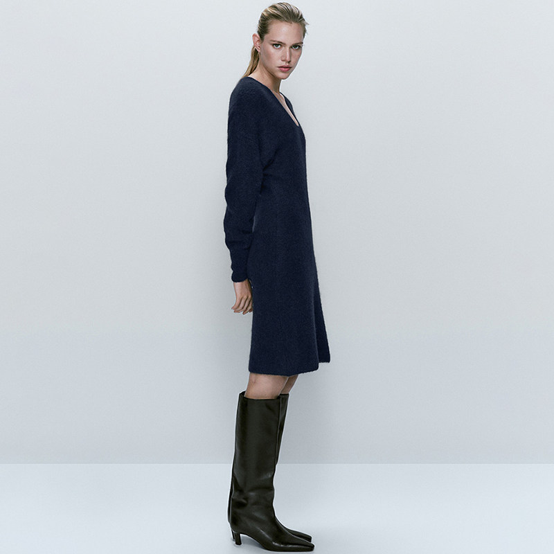 Демисезонное элегантное цветное шерстяное трикотажное платье, коллекция 2023, V-образный вырез
