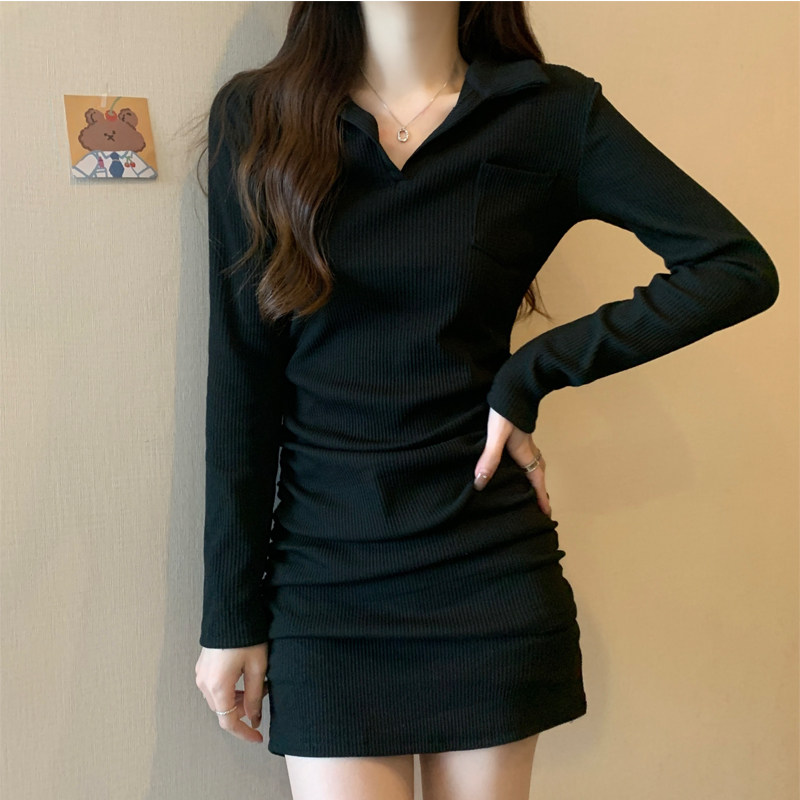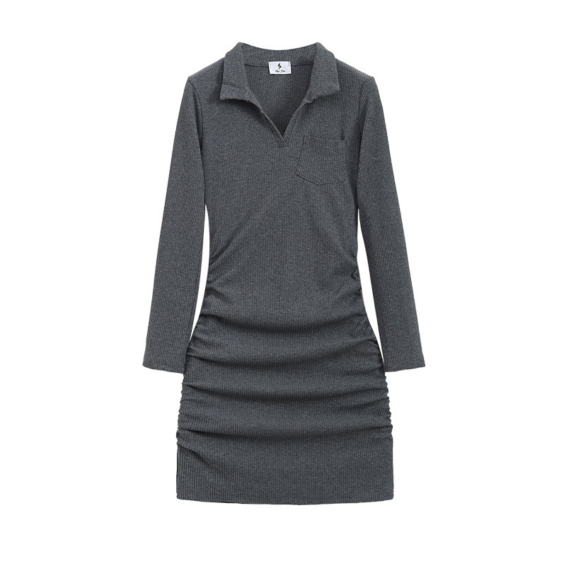 Осеннее платье, приталенный базовый корсет, платье-футболка, облегающий крой, большой размер, с акцентом на бедрах