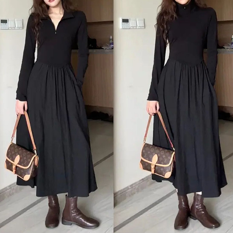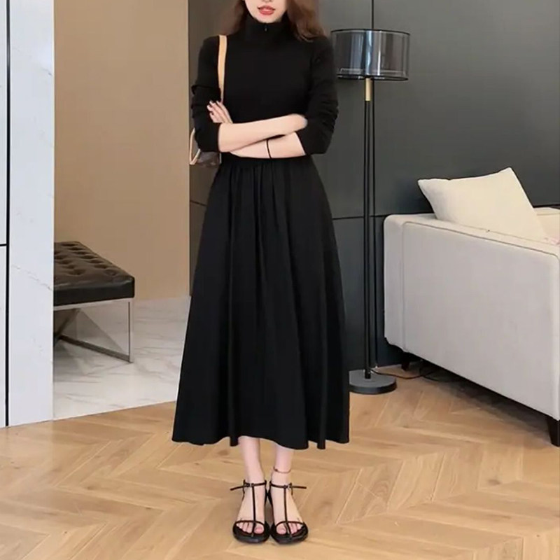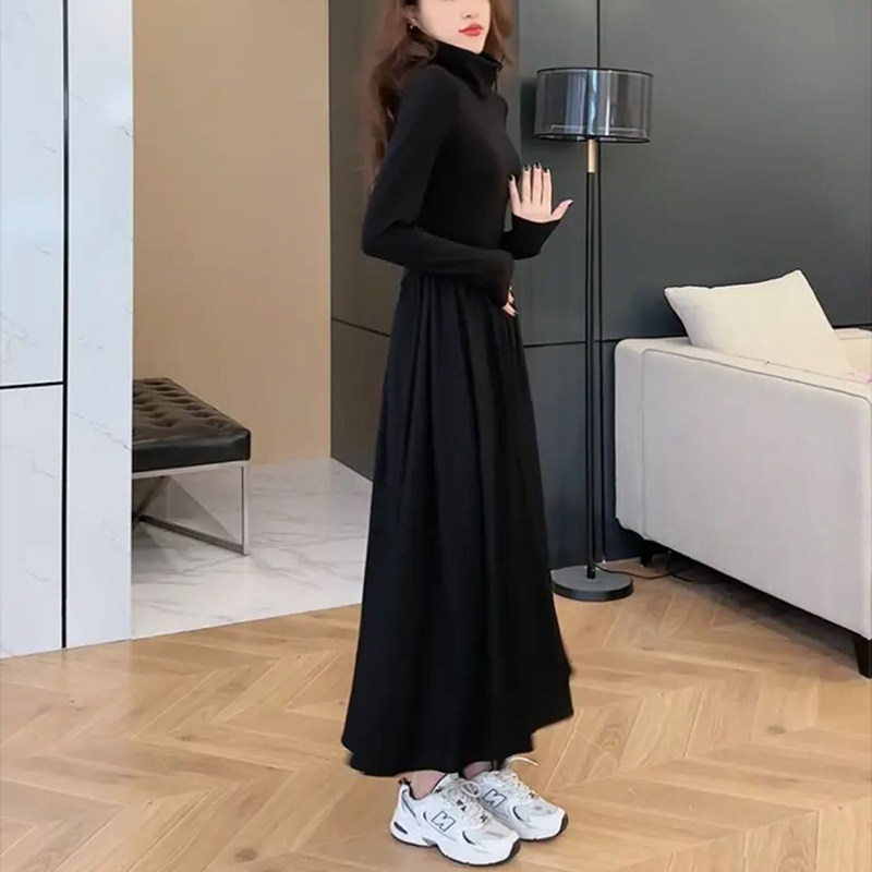 Лонгслив, юбка, приталенное базовое платье, французский стиль, большой размер, по фигуре