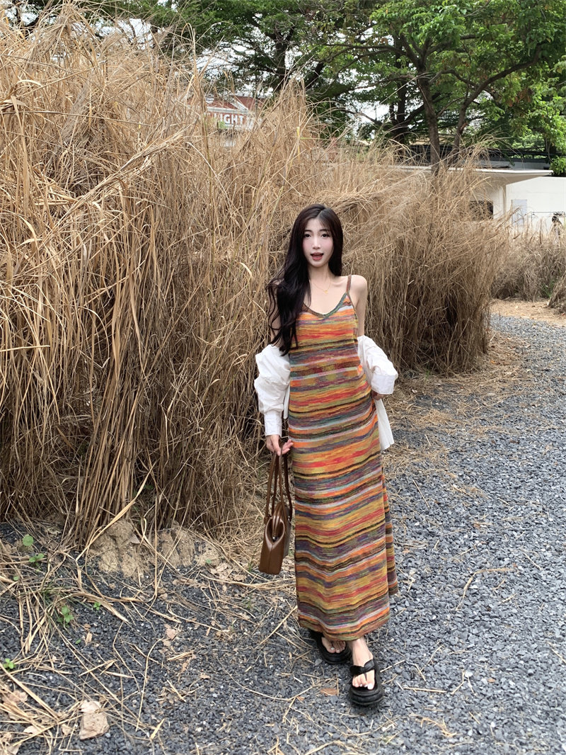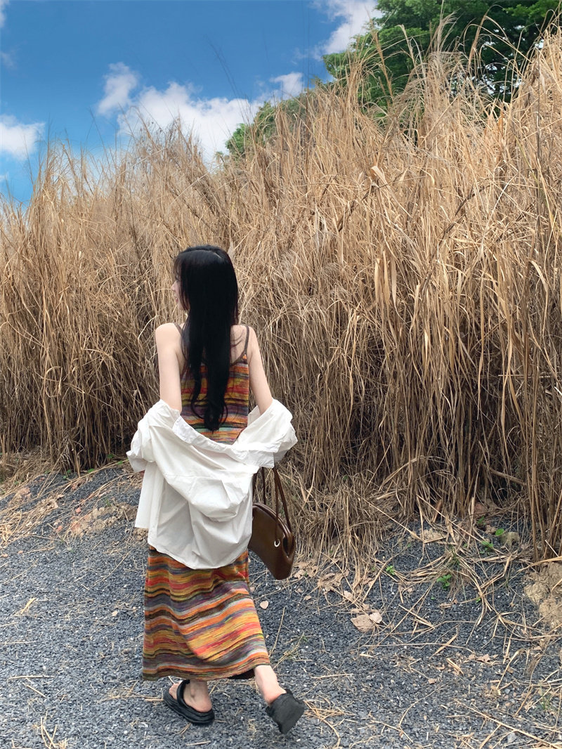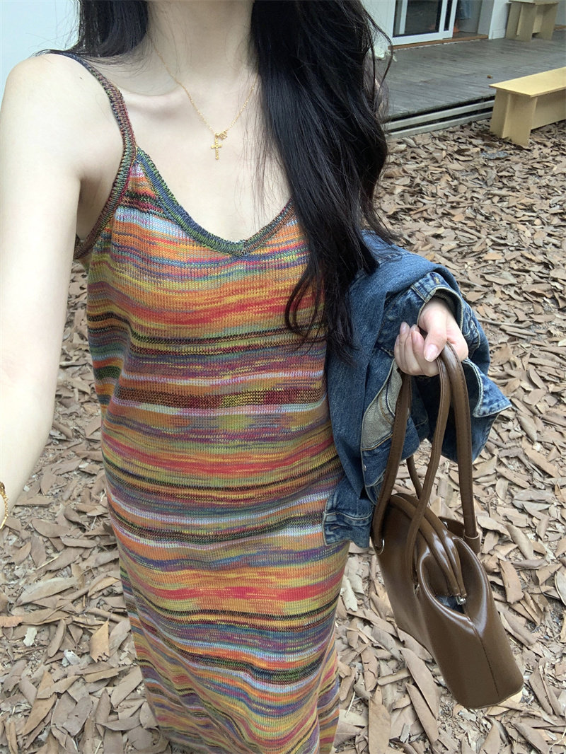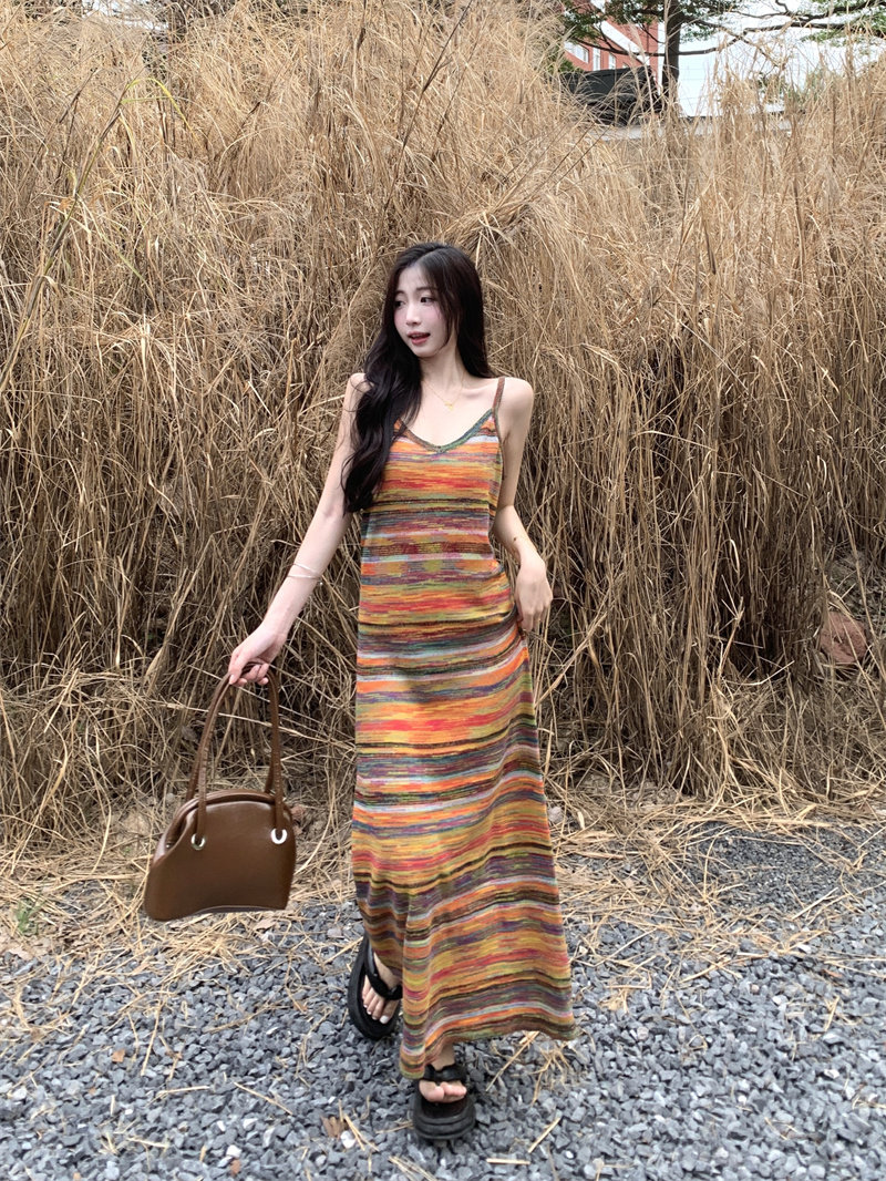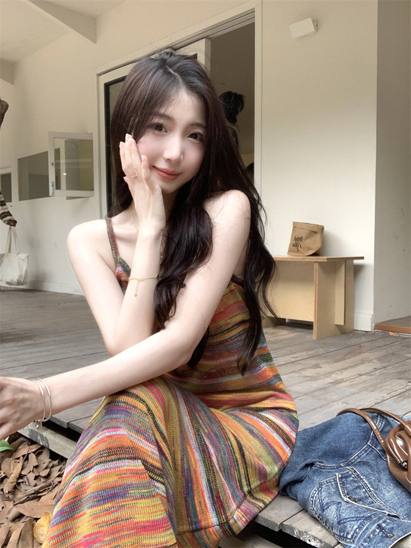Радужное летнее платье, базовая длинная юбка для отдыха, французский стиль, оверсайз