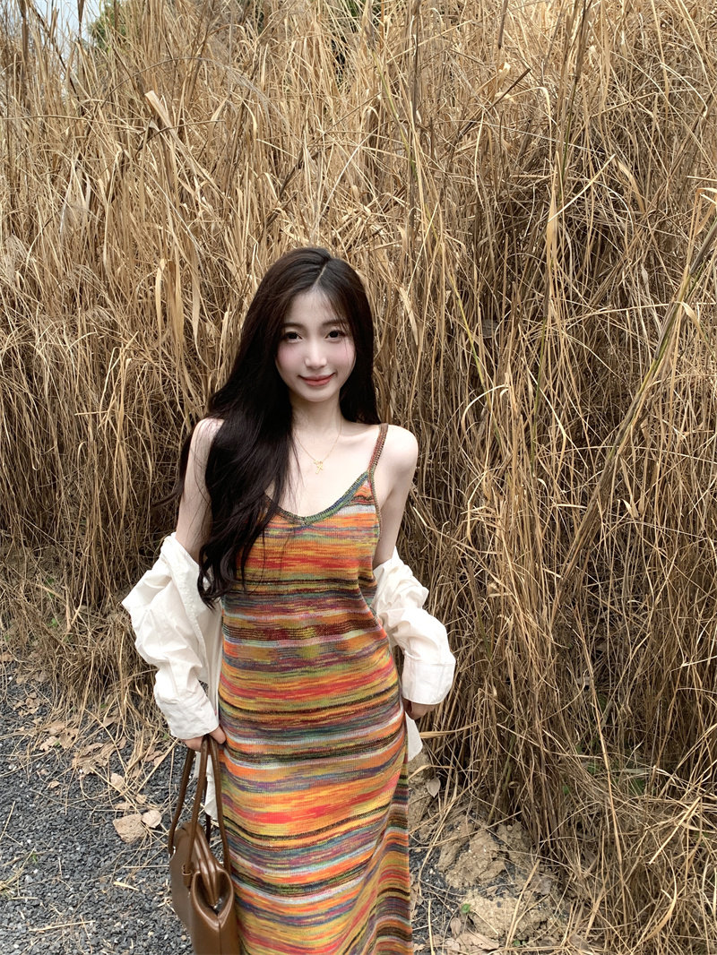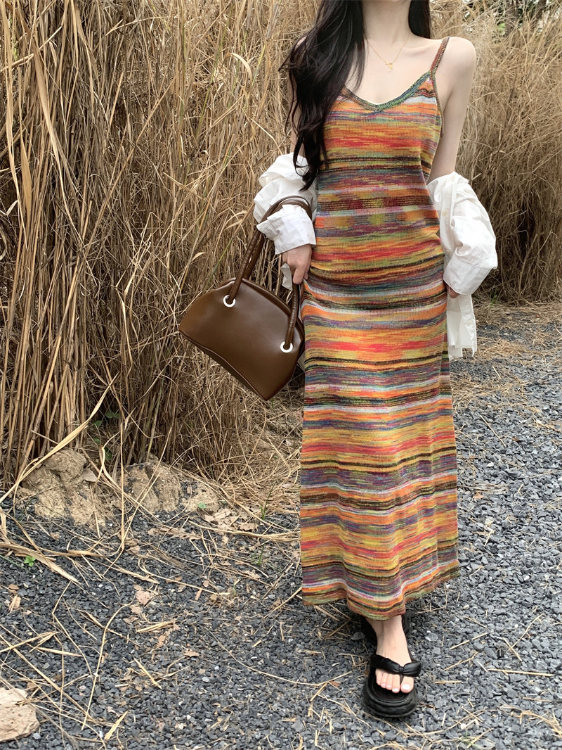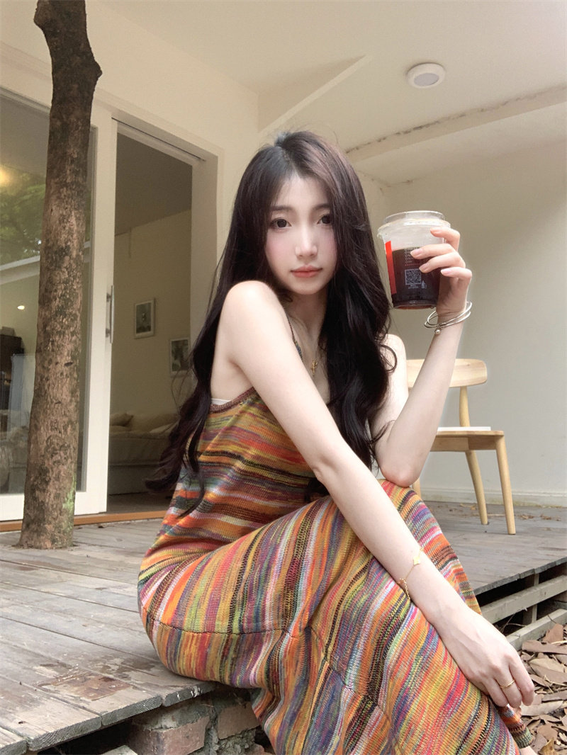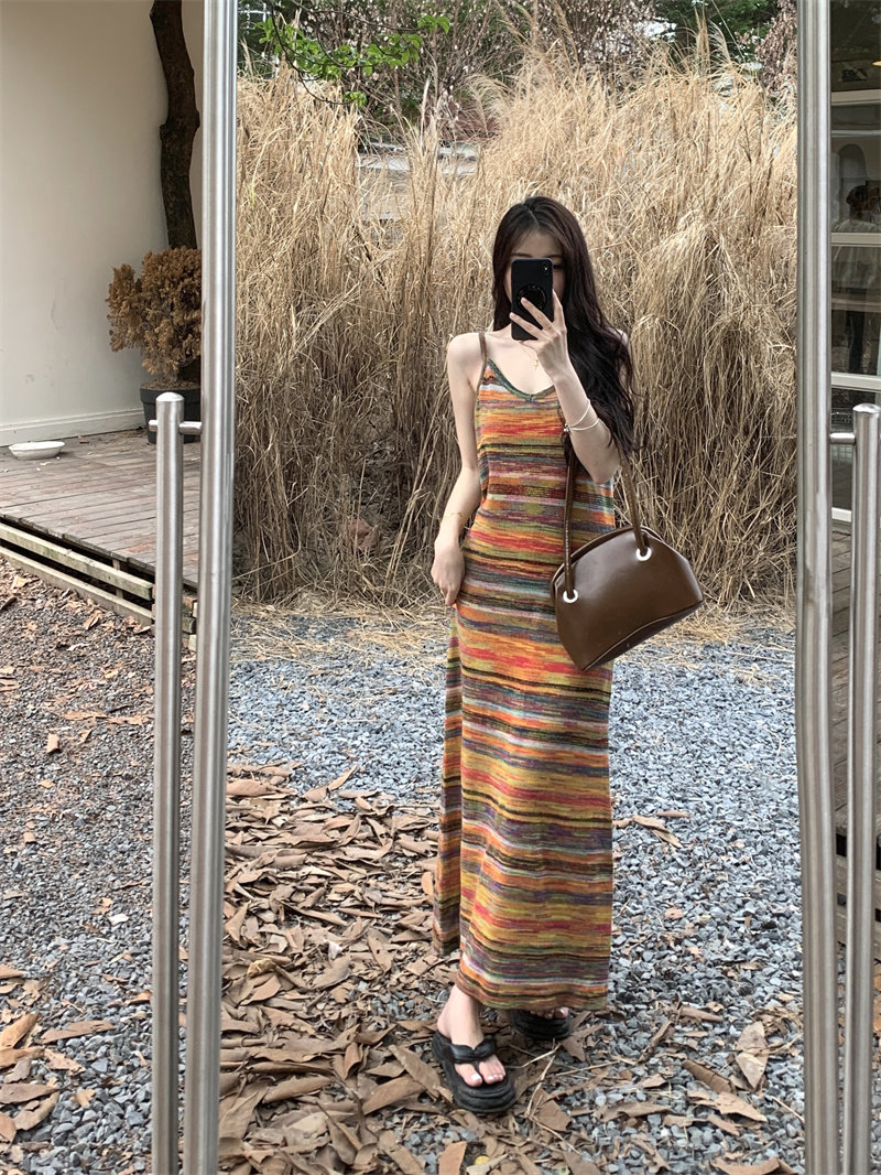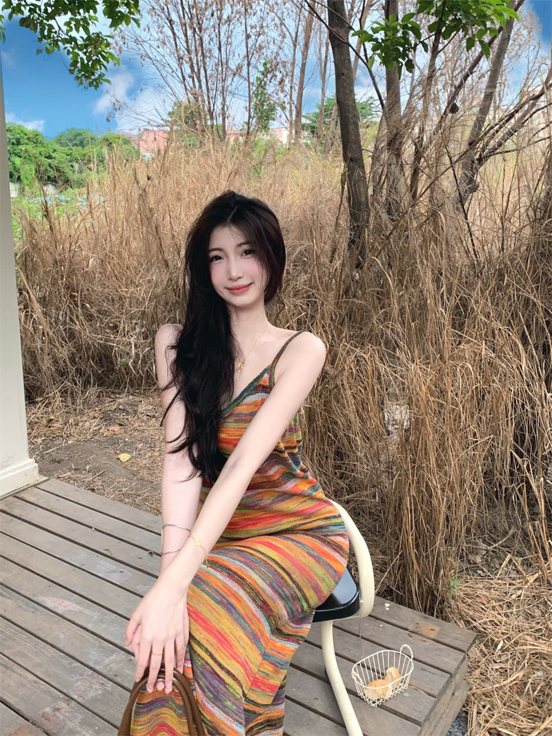 Радужное летнее платье, базовая длинная юбка для отдыха, французский стиль, оверсайз