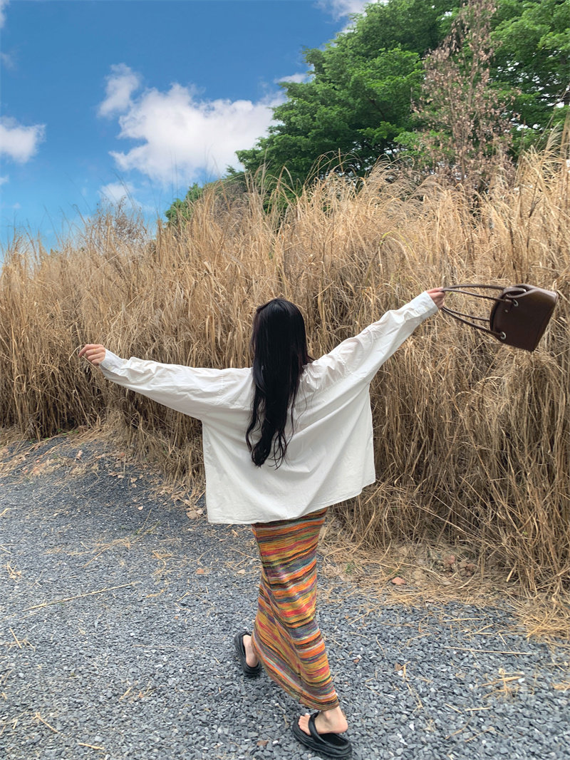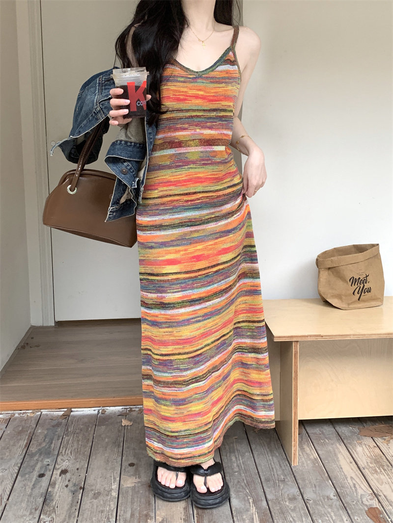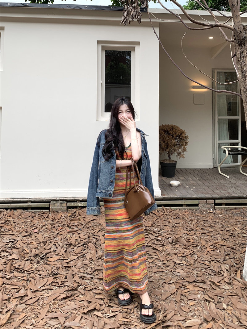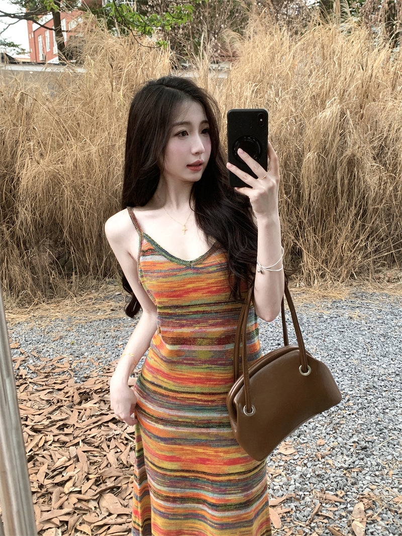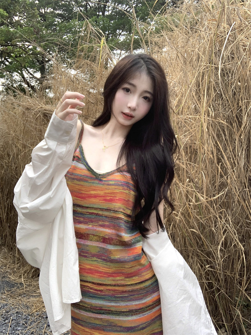 Радужное летнее платье, базовая длинная юбка для отдыха, французский стиль, оверсайз
