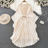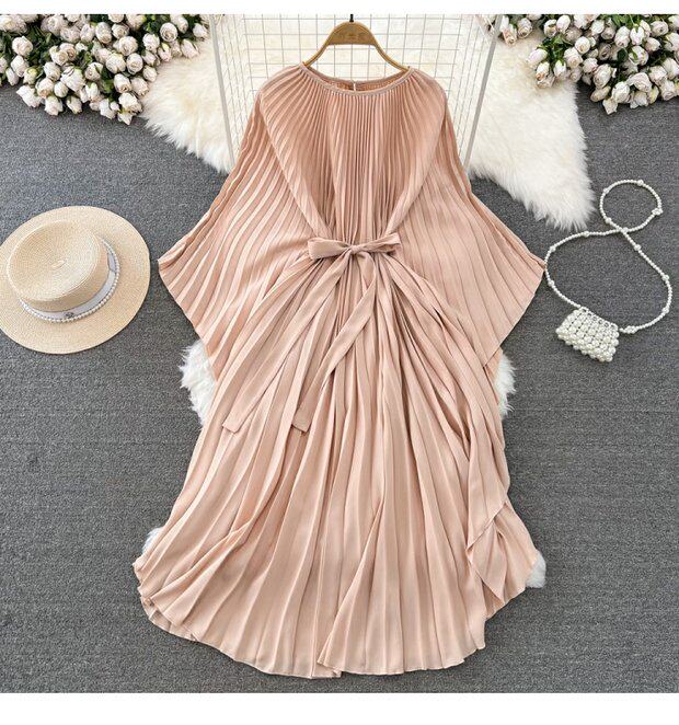 Элегантное платье, длинная юбка, изысканный стиль, с рукавом, свободный крой, А-силуэт
