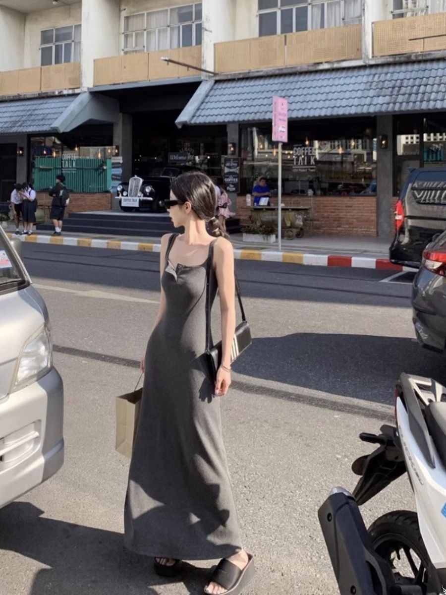 Летнее платье, приталенный корсет без рукавов, длинная юбка, большой размер, изысканный стиль, средней длины