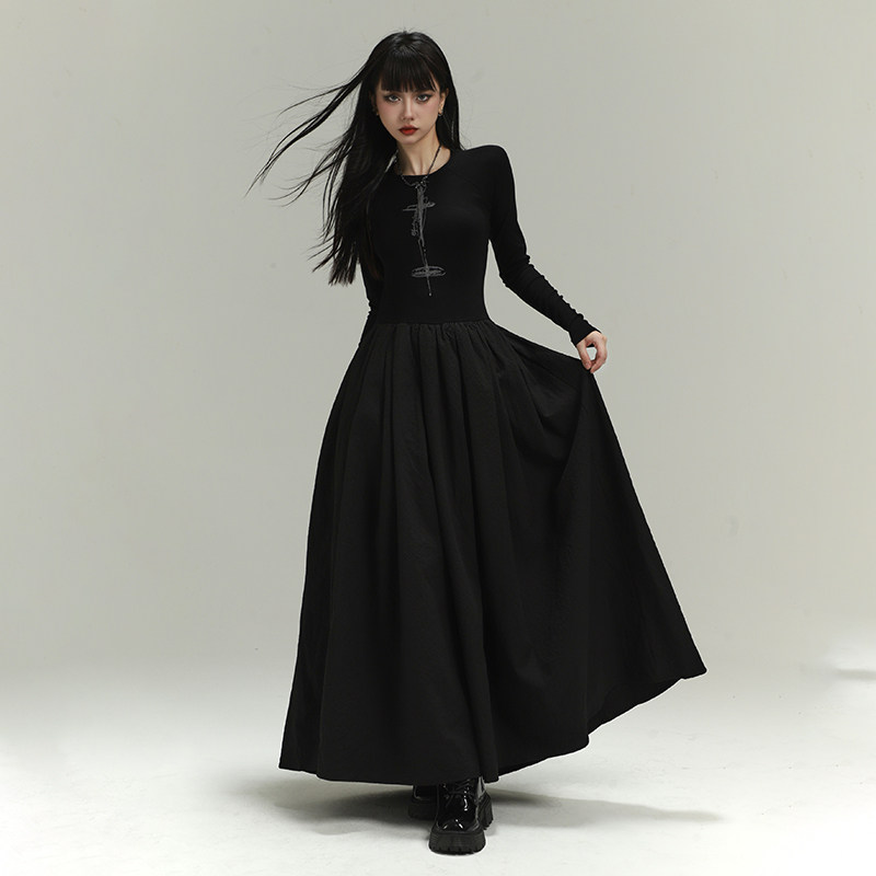 幽灵少女 Черное длинное платье в готическом стиле, уникальное, красивое, неконтрастное платье для церемонии для взрослых.