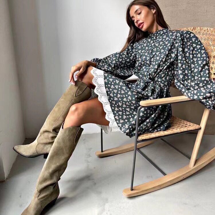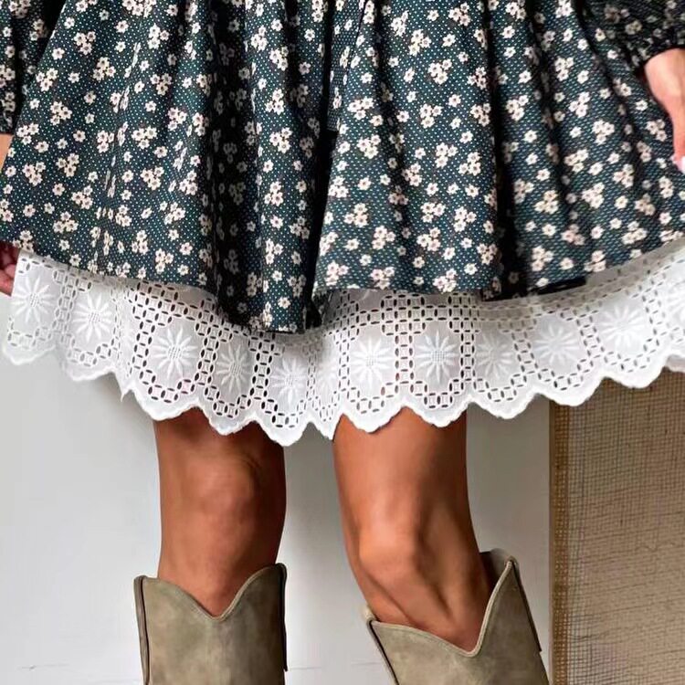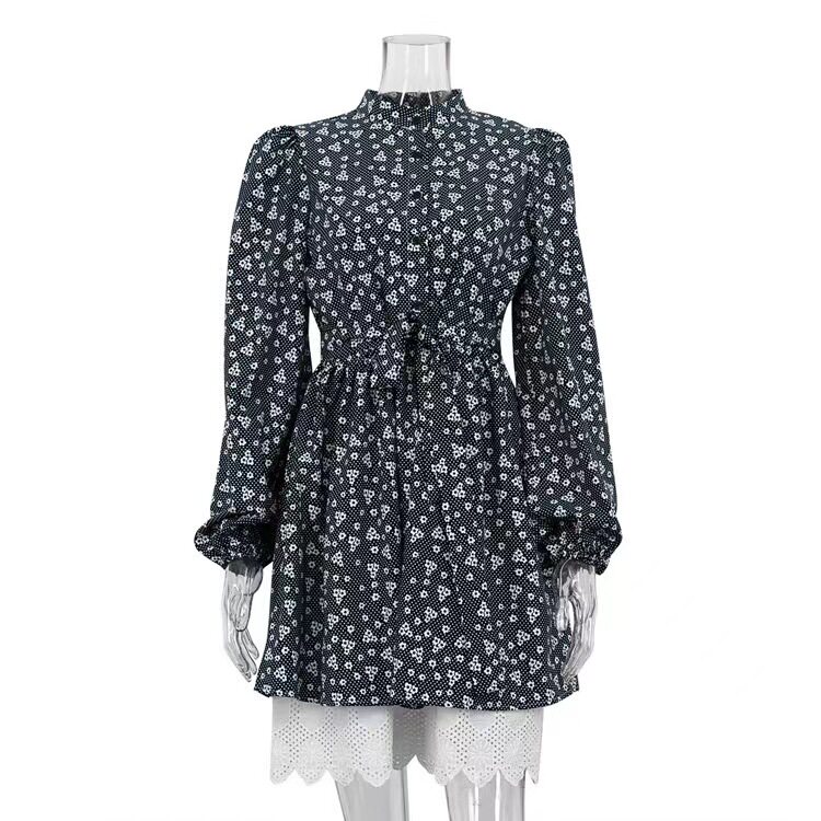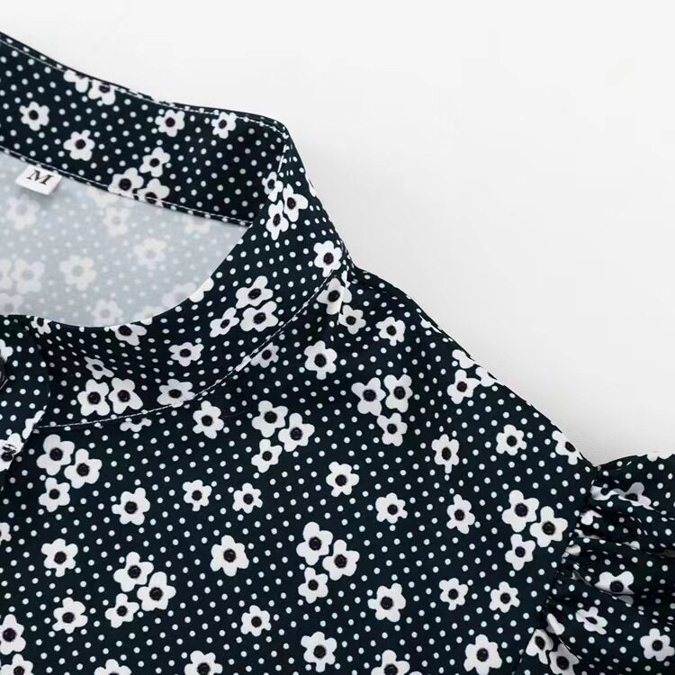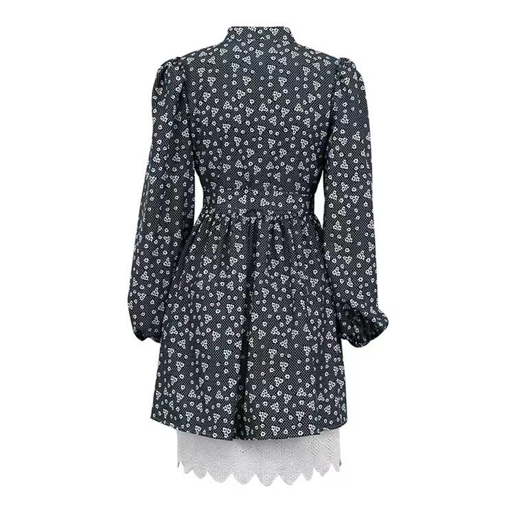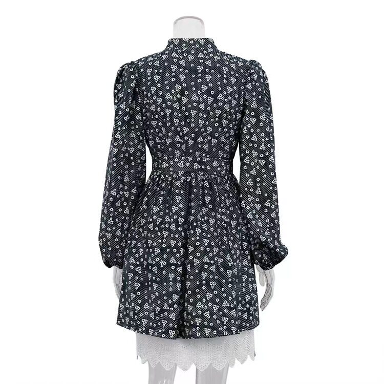 Новое французское стенд -ошейник, собирающий пузырьковые пузырьковые рукавы, цветочное платье, пузырьковое платье с рукавами рукава