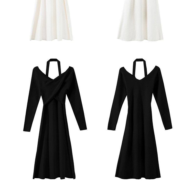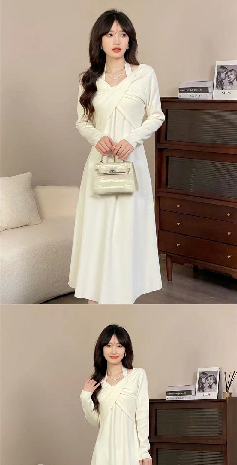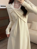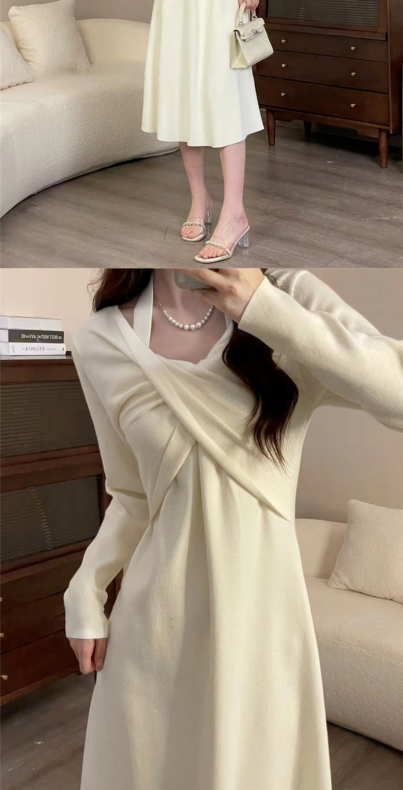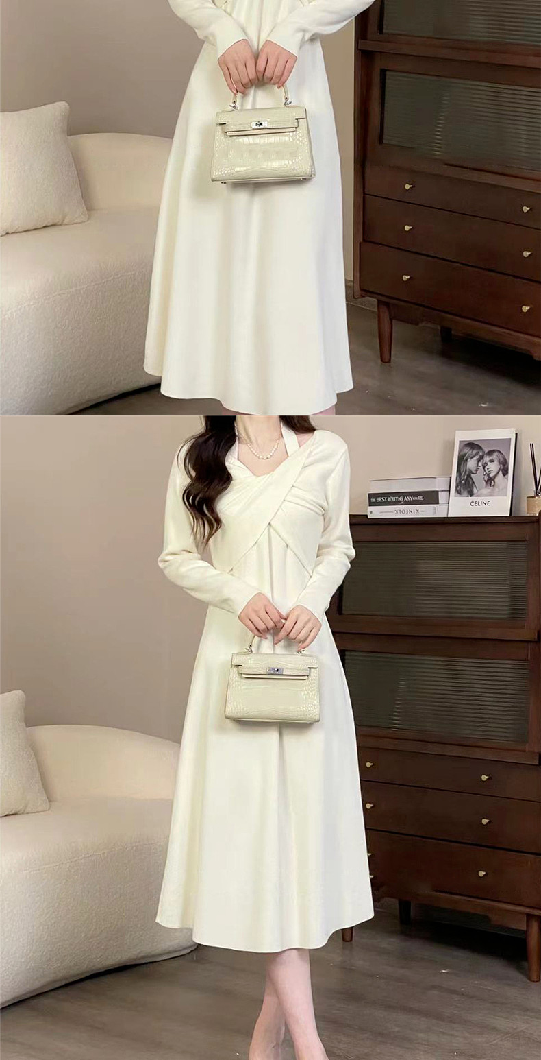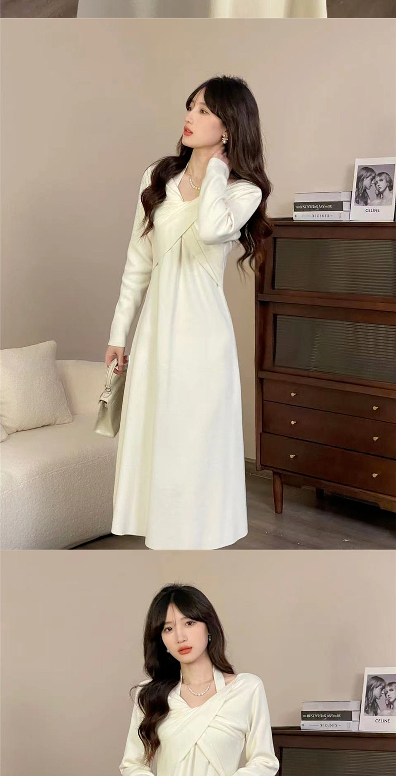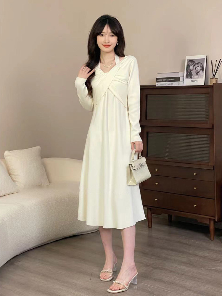 Белое платье, осенняя трикотажная небольшая длинная юбка, коллекция 2023, осеннее, яркий броский стиль, подходит для подростков