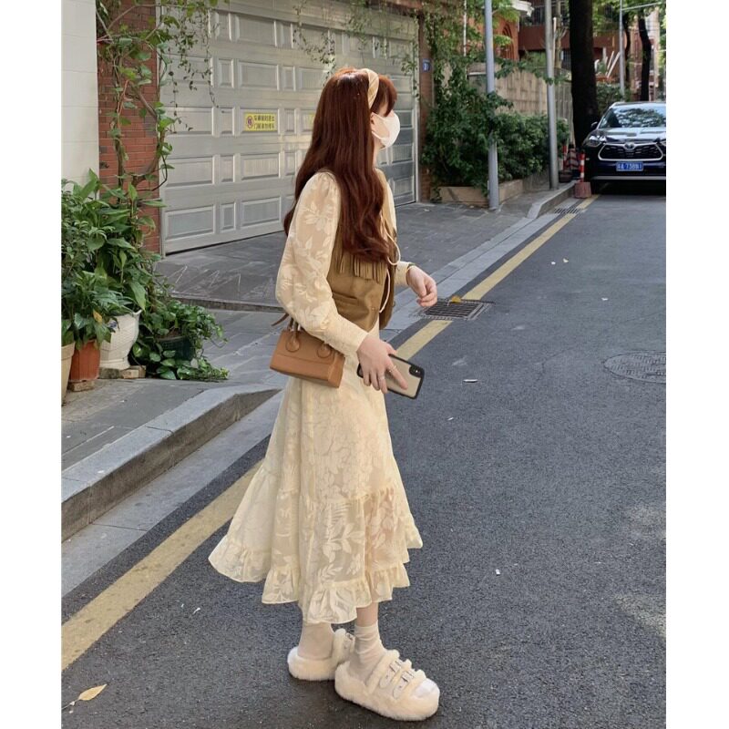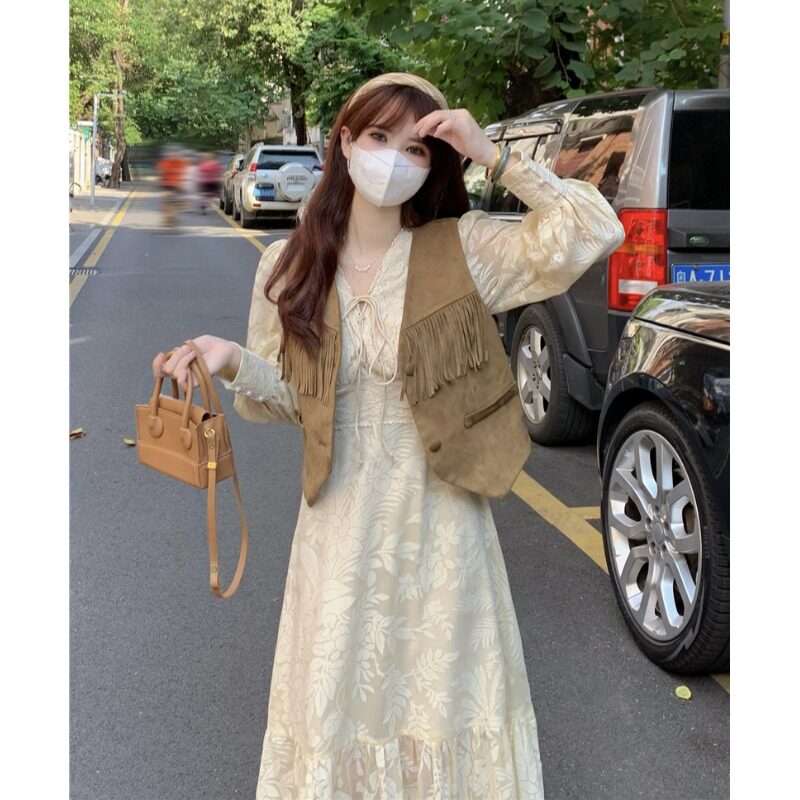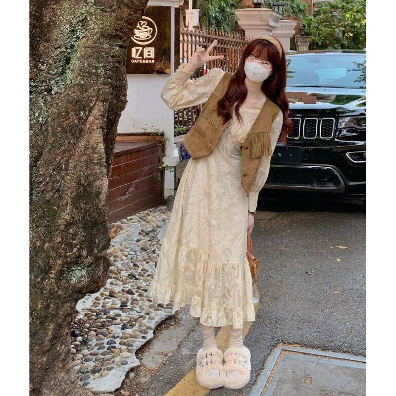 | Цвет: | Цветной жилет, Абрикосовая длинная юбка |