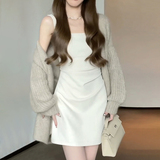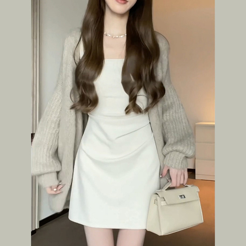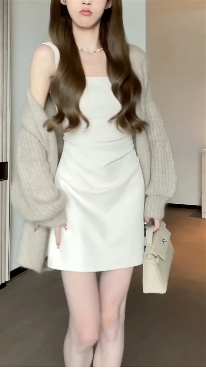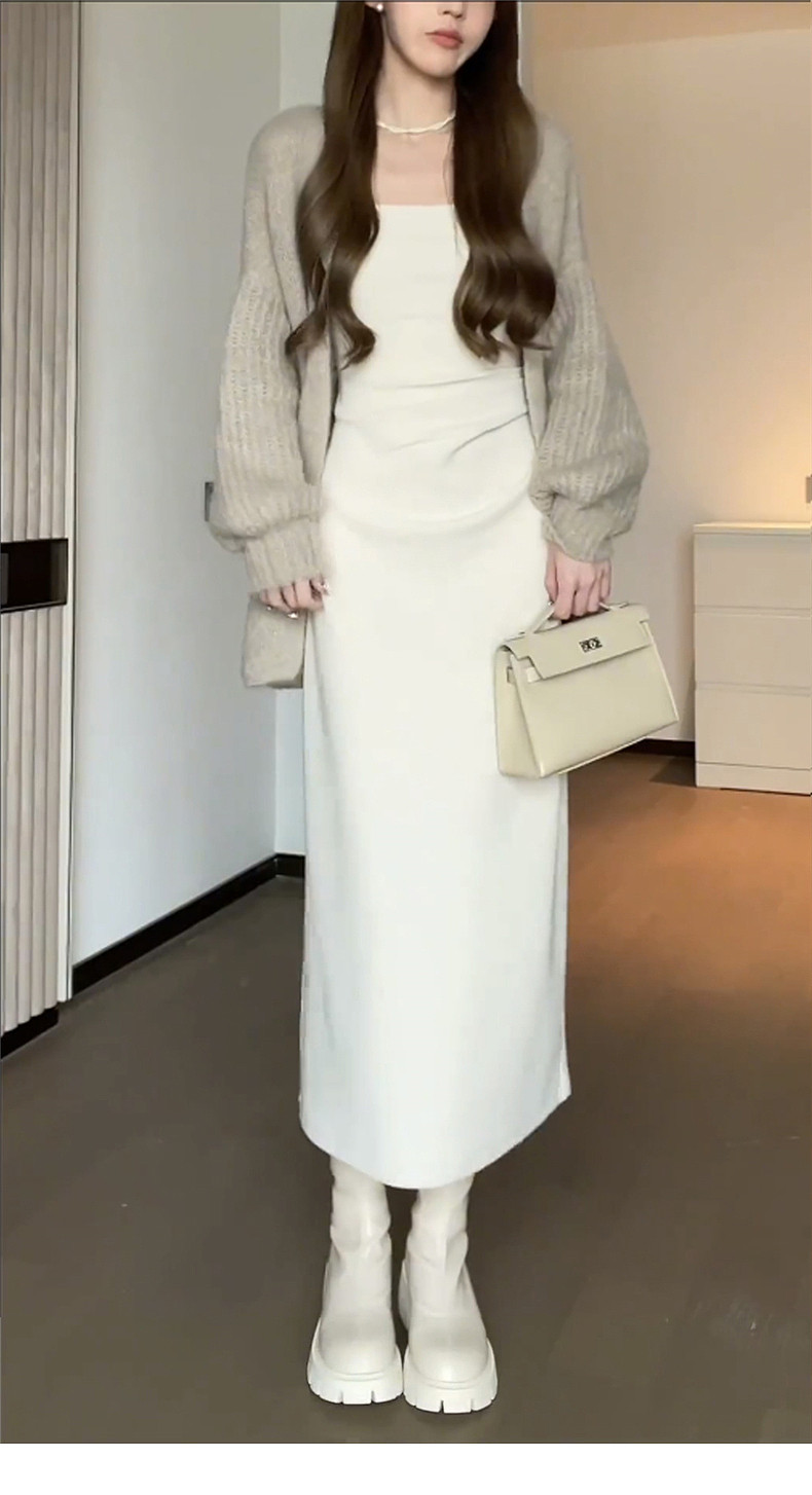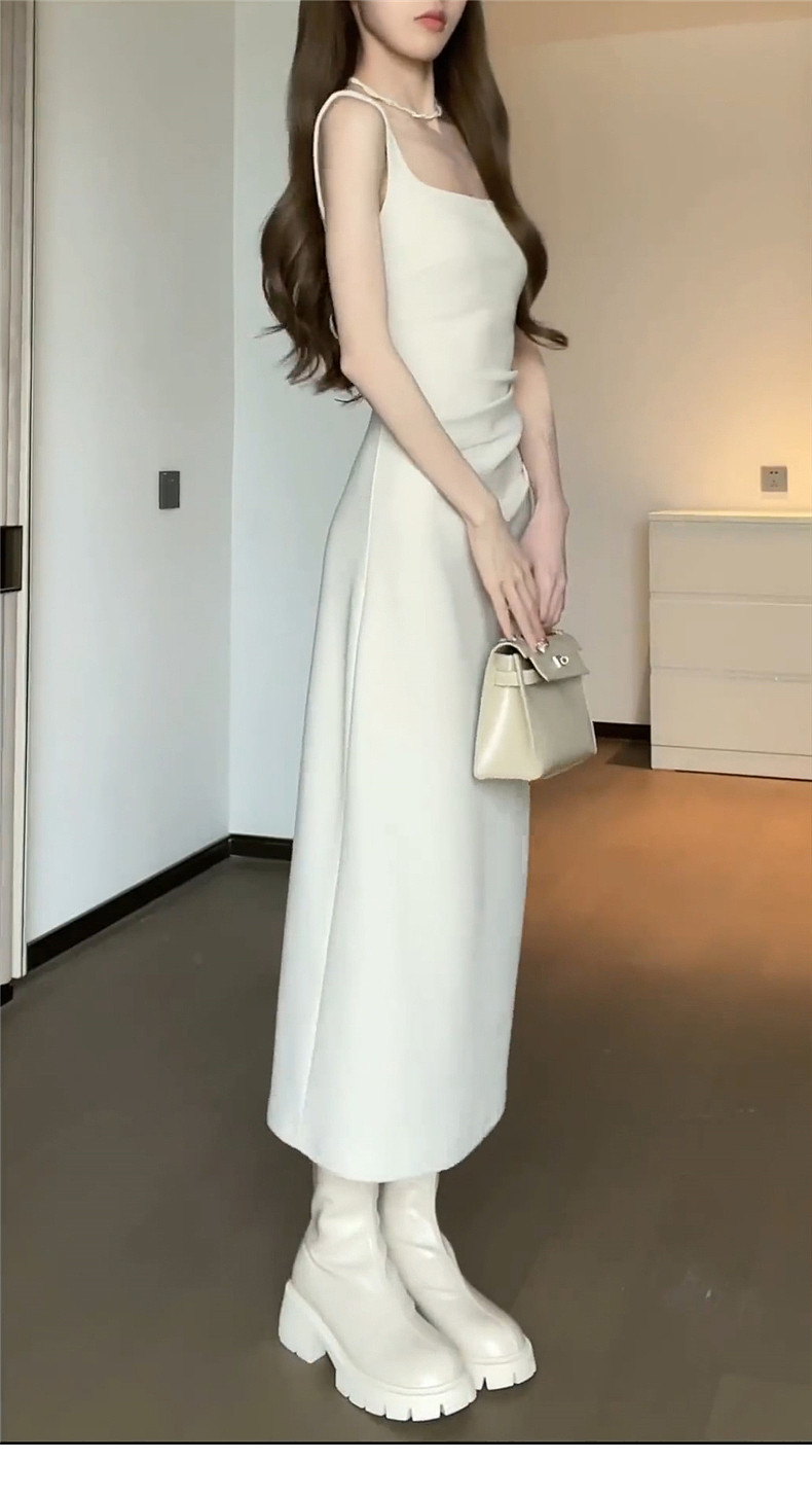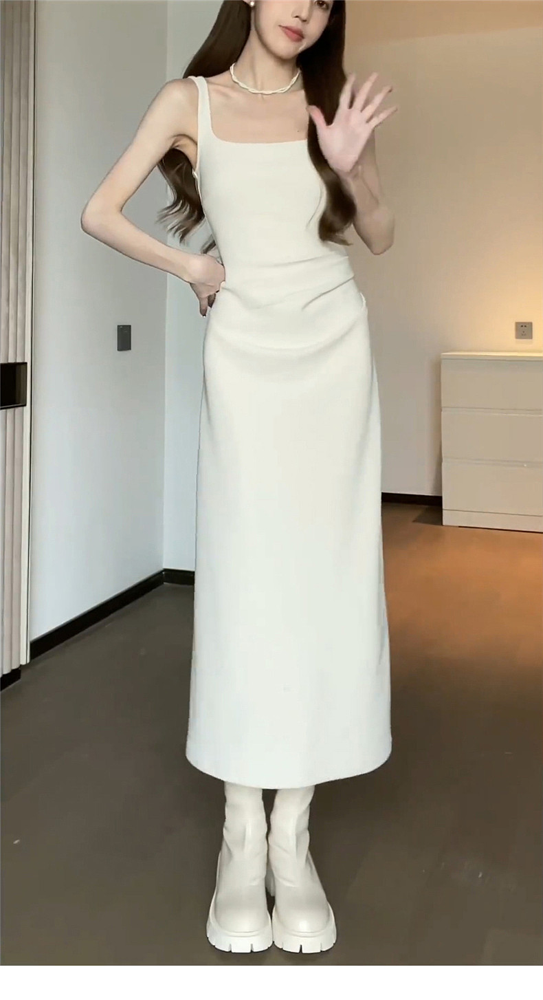 Белое платье, осеннее, премиум класс, эффект подтяжки, подходит для подростков