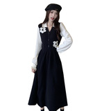 Демисезонный комплект, длинное платье, осенний, городской стиль, французский стиль, по фигуре, А-силуэт, 2023