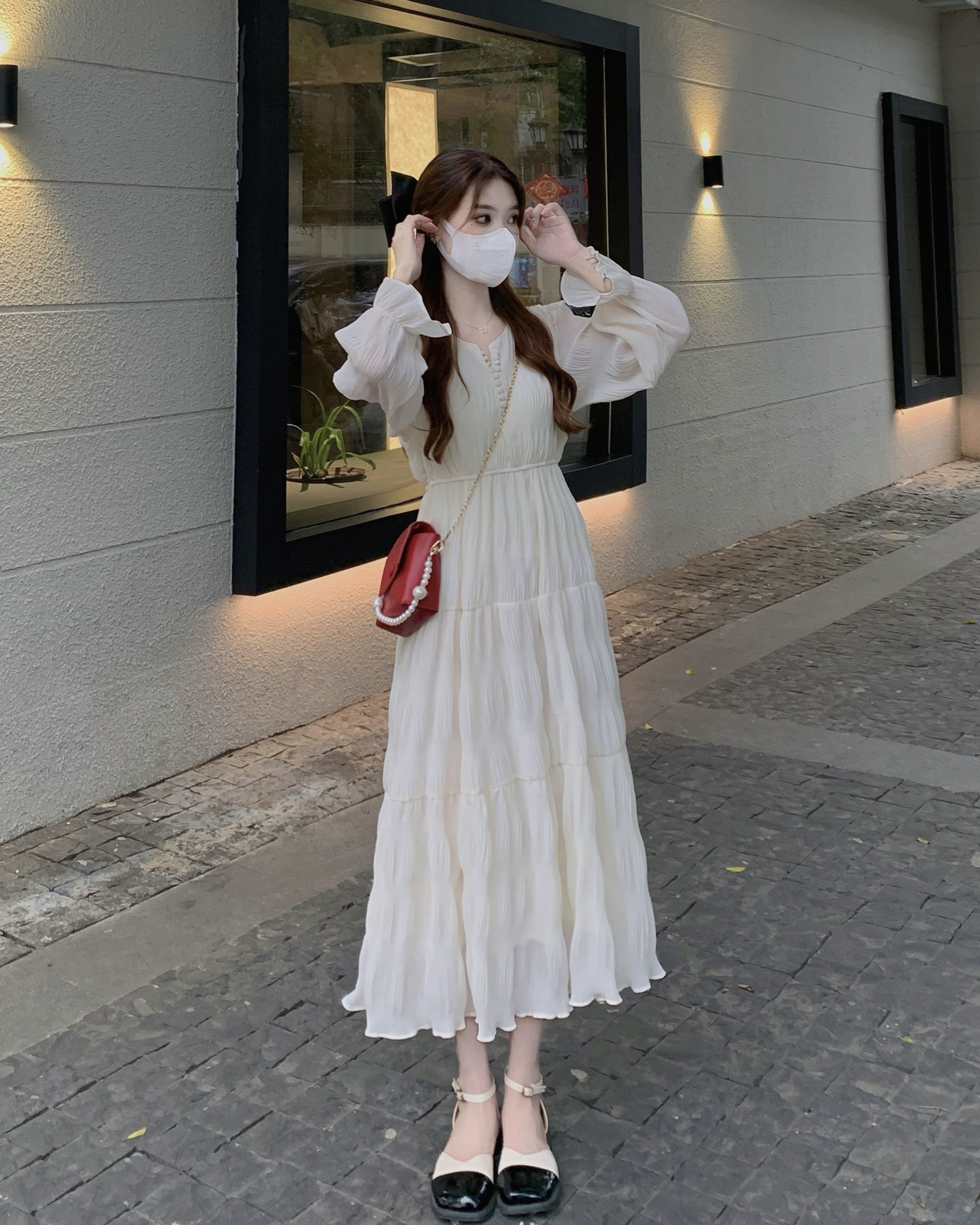 Белый шифоновый осенний милый лонгслив, корсет, длинная юбка, французский стиль
