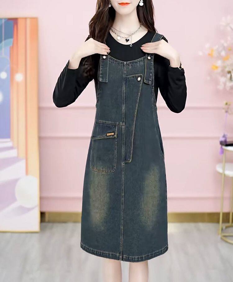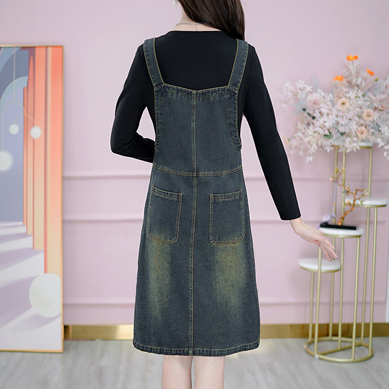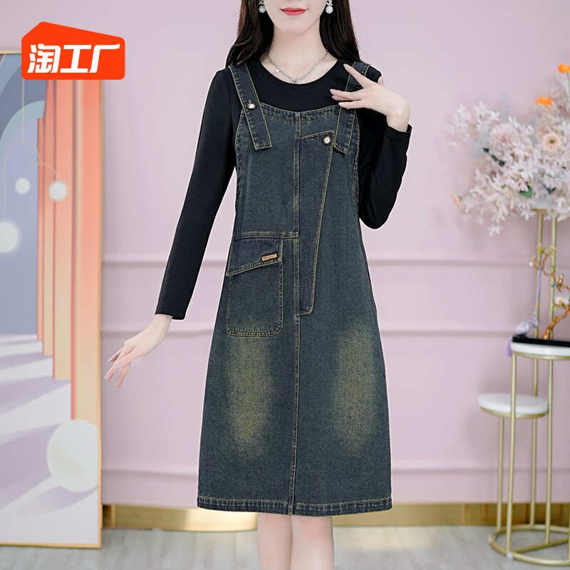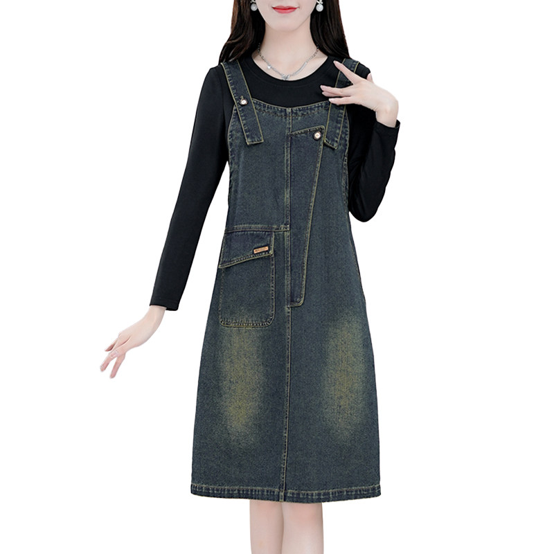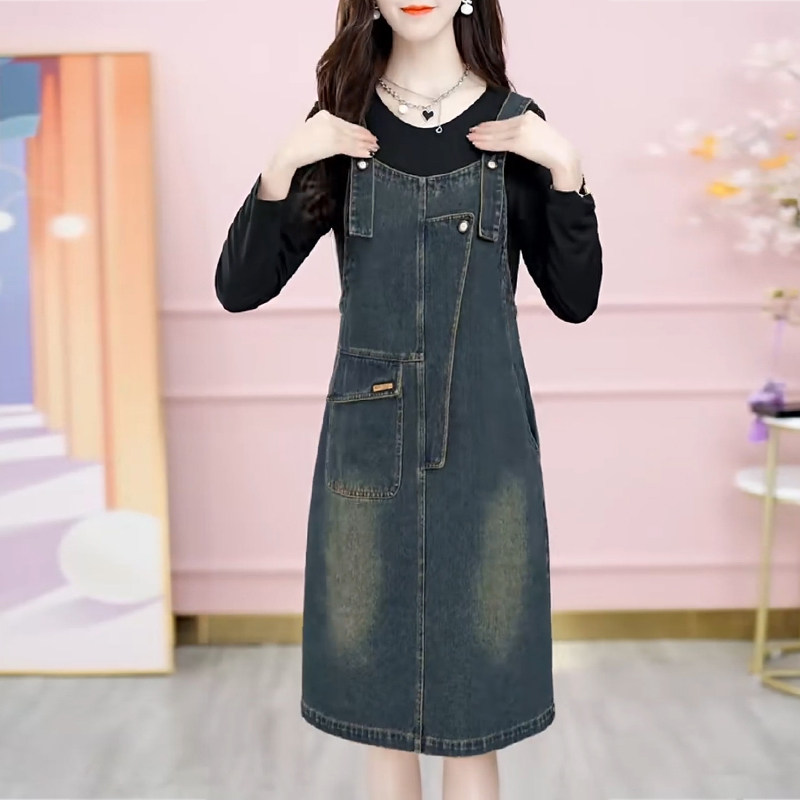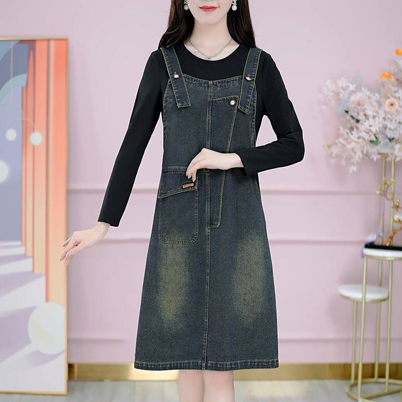 Осенние подтяжки, платье, лонгслив, модный универсальный комплект, джинсовая юбка, по фигуре, 2023