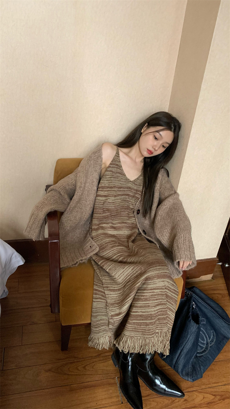 Трикотажное платье, платье-комбинация, базовая длинная юбка, свободный крой