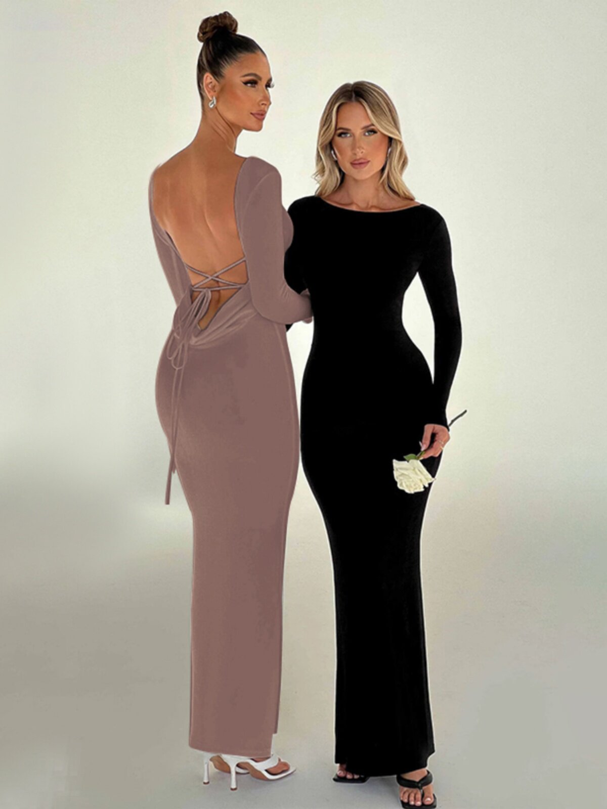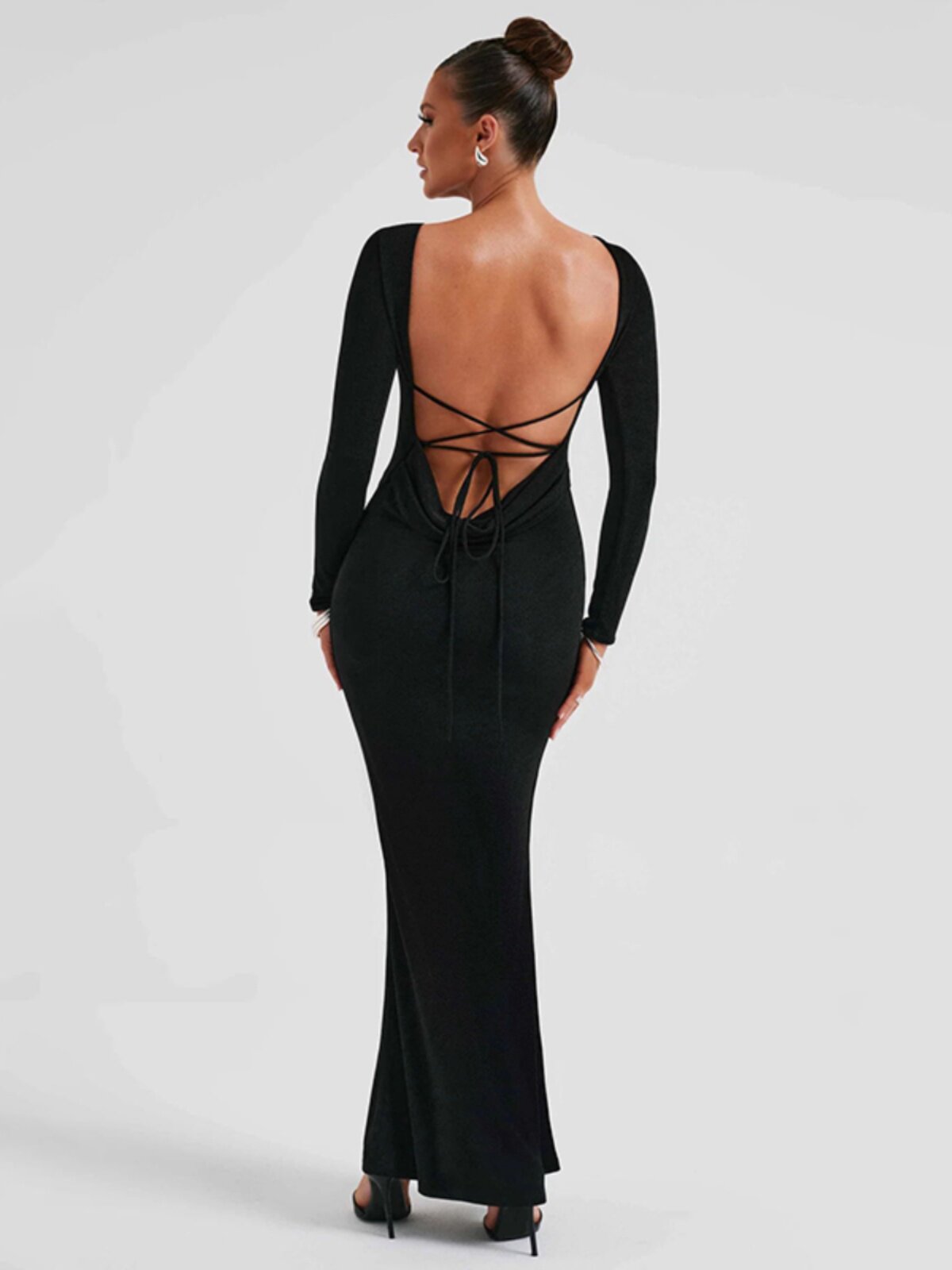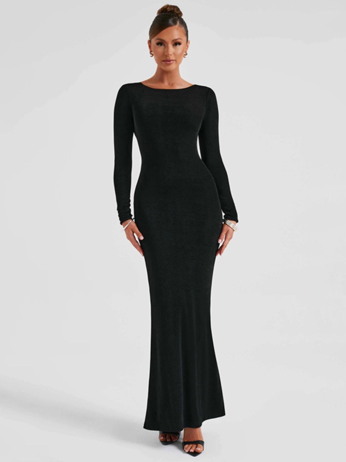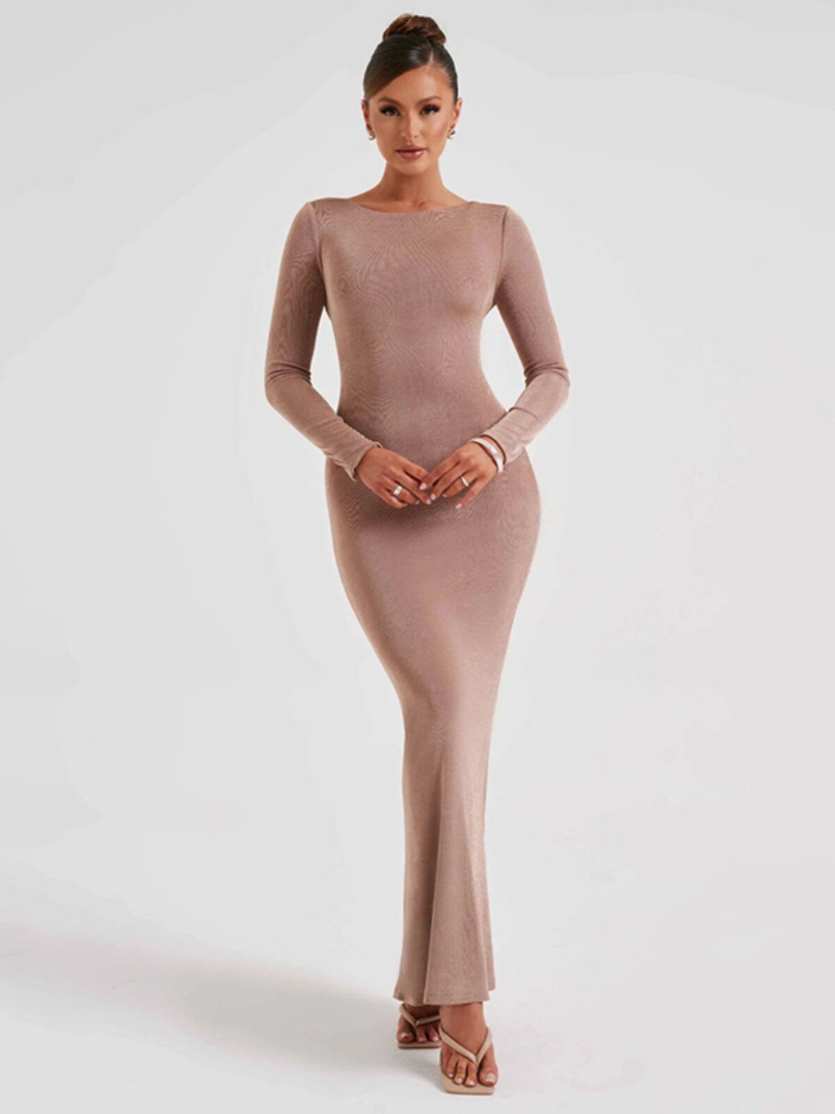 Осеннее платье, лонгслив, длинная юбка, коллекция 2023, с открытой спиной, изысканный стиль