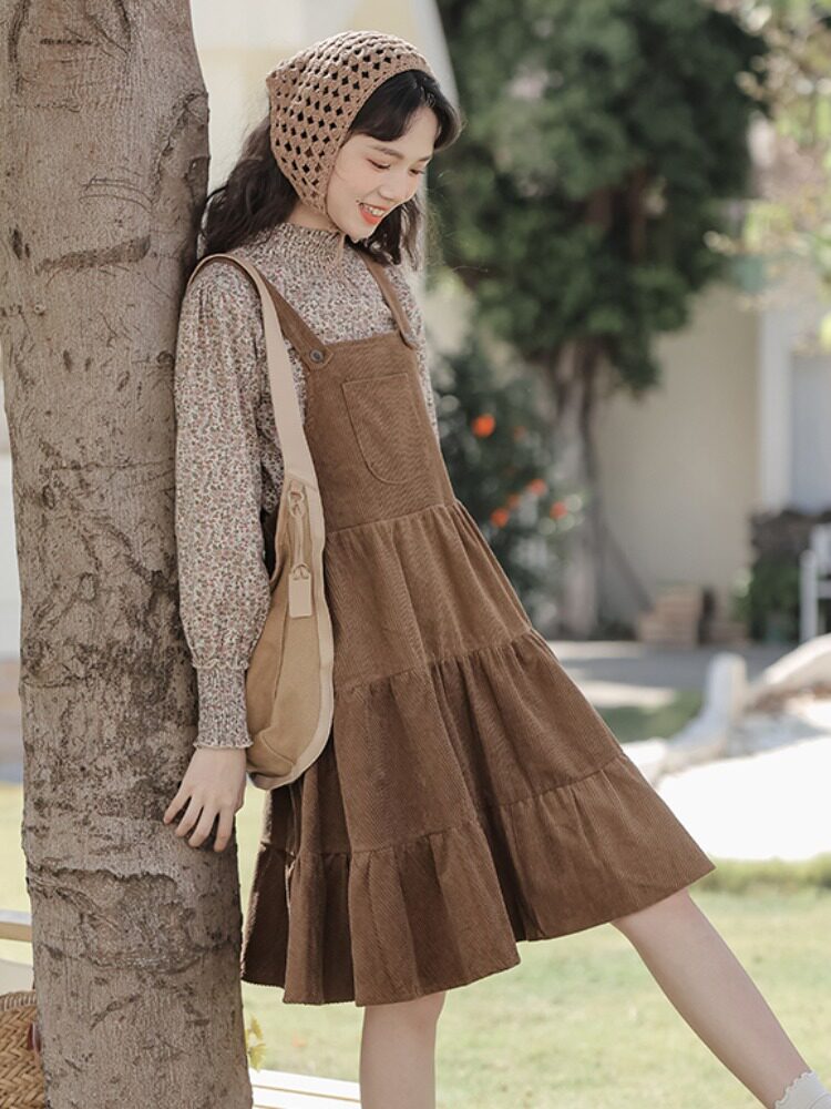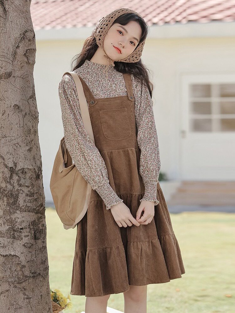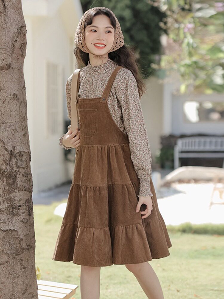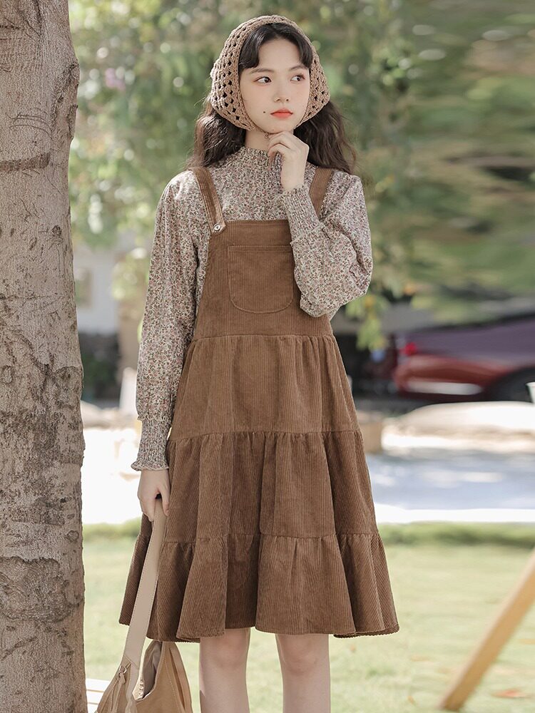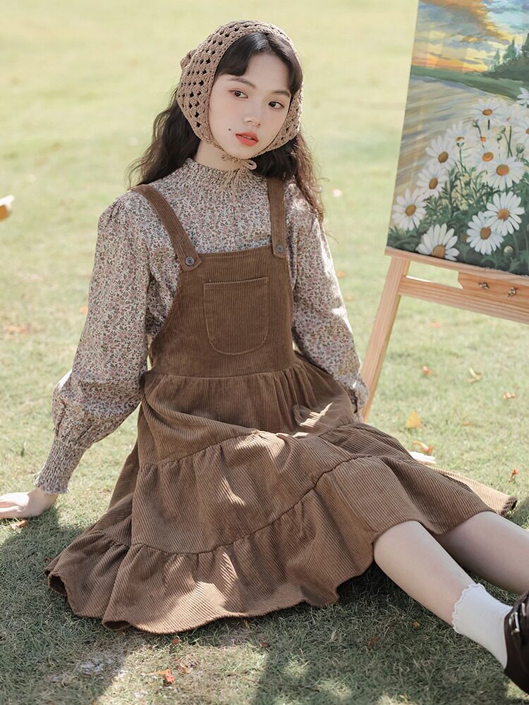 Свежее вельветовое платье, юбка, демисезонный комплект, увеличенная толщина, цветочный принт