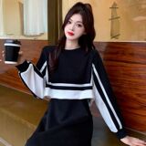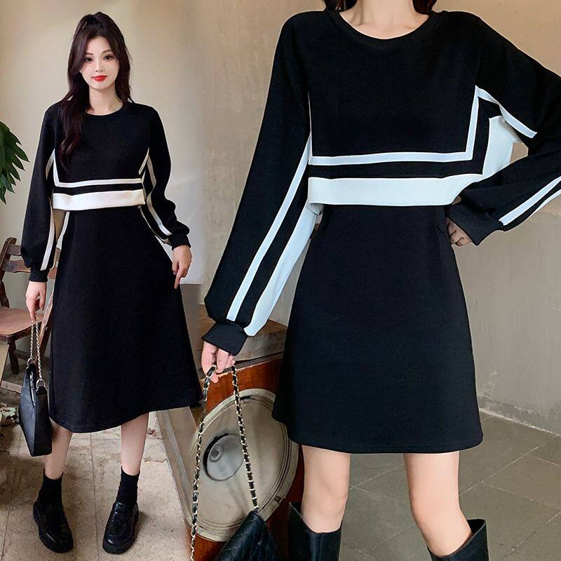 Лонгслив, демисезонная юбка, длинный короткий комплект, платье, большой размер, средней длины