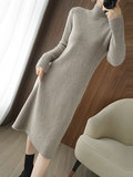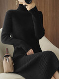 Демисезонный свитер, зимнее трикотажное платье, базовая длинная юбка, высокий воротник, свободный крой, увеличенная толщина