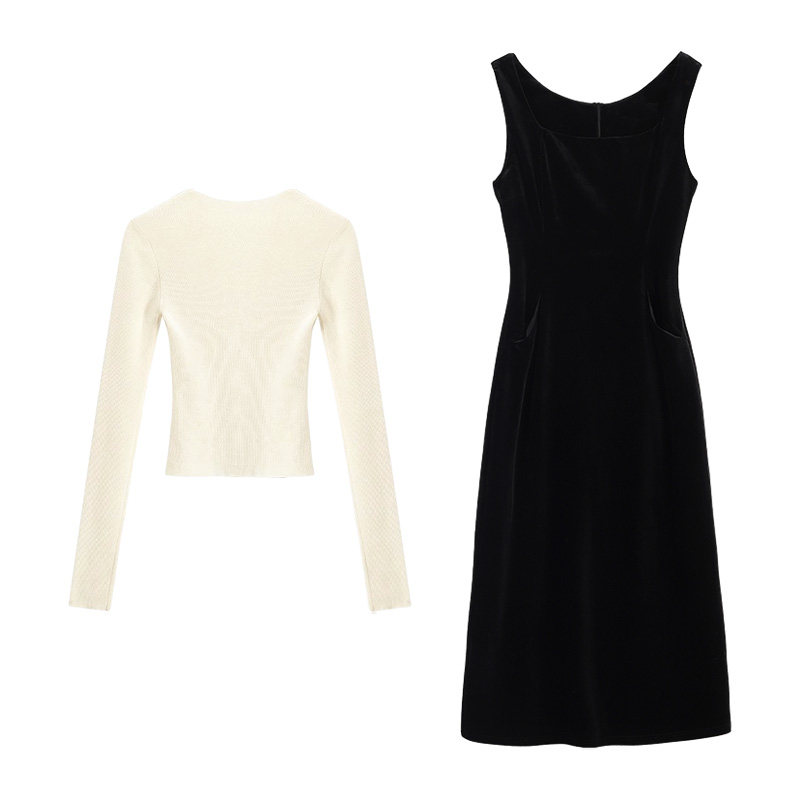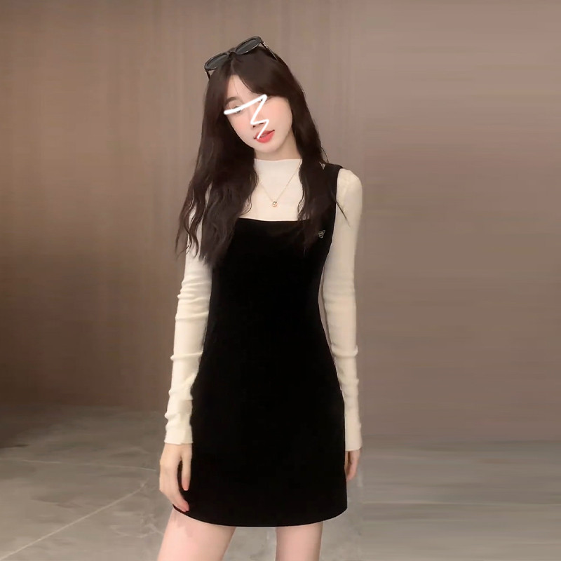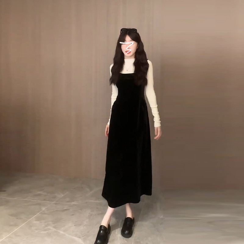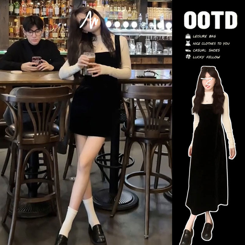 Черные подтяжки, платье, осенняя бархатная длинная юбка, комплект, подходит для подростков, осенние