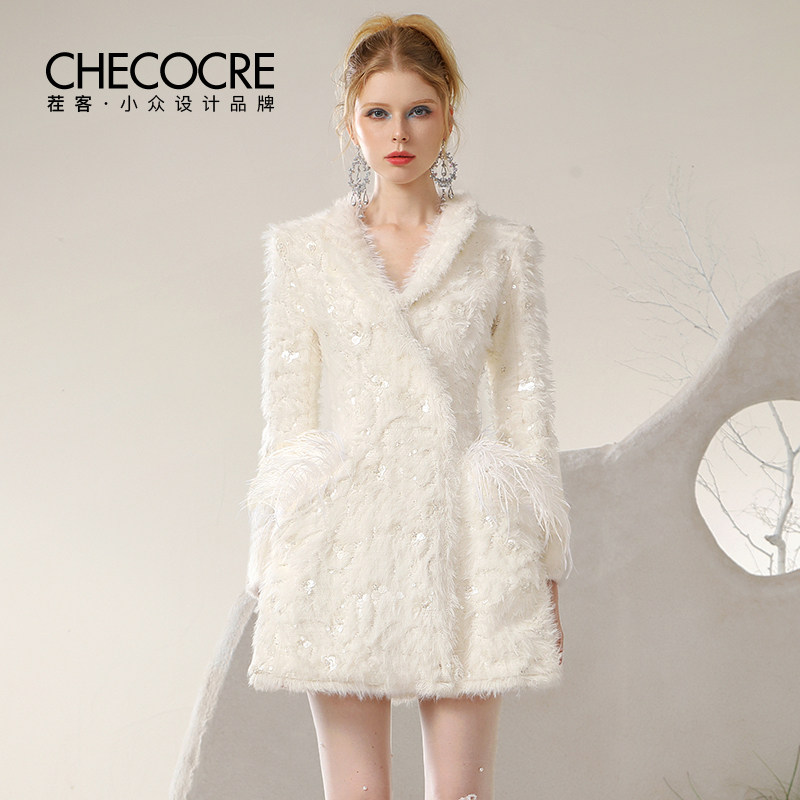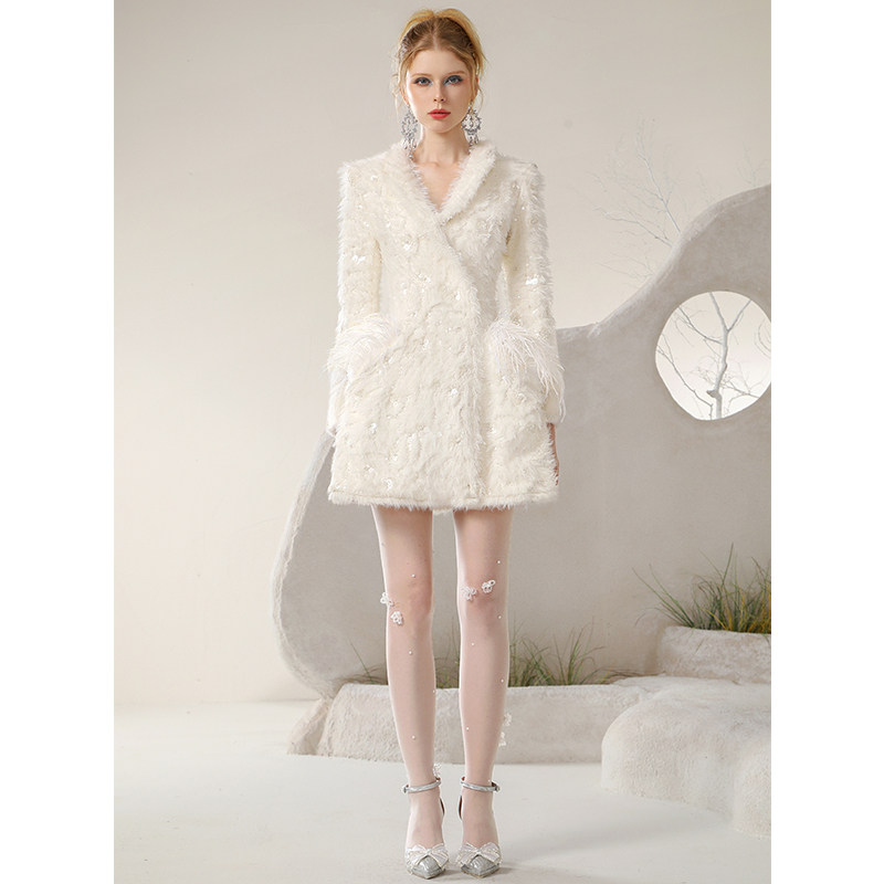 茬客 Демисезонное вечернее платье, юбка, блестки для ногтей, бежевый костюм, с вышивкой