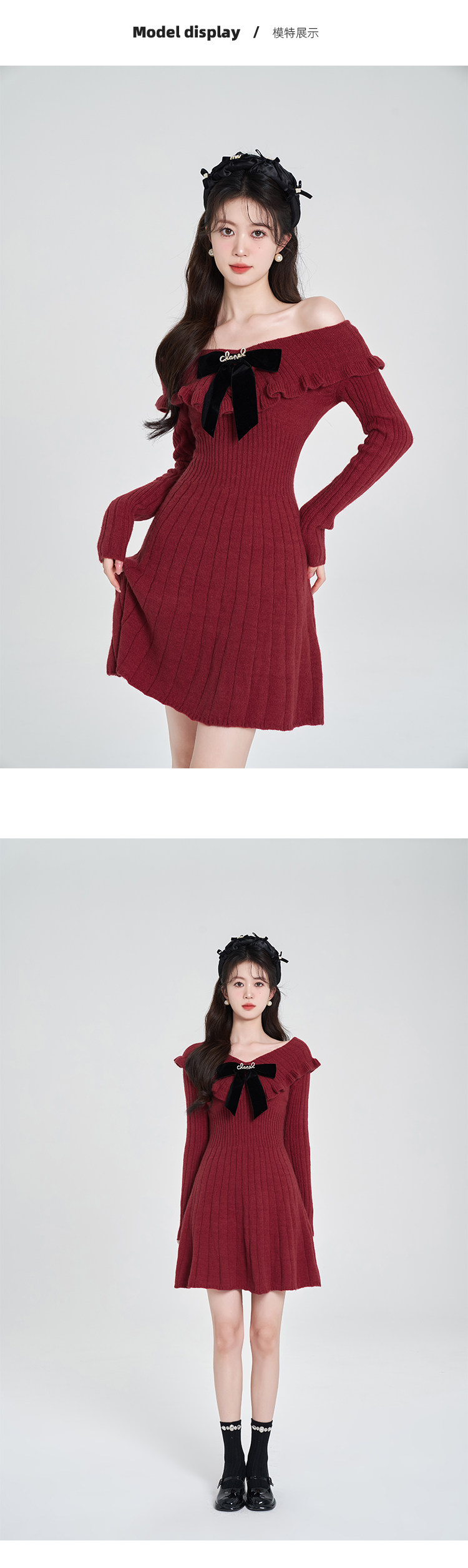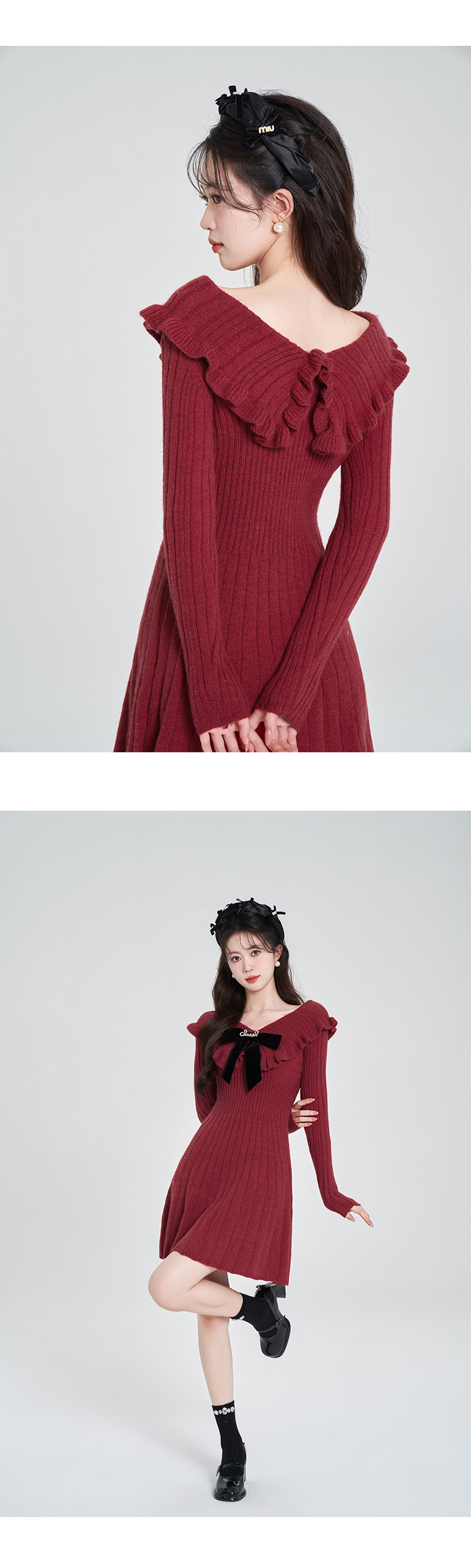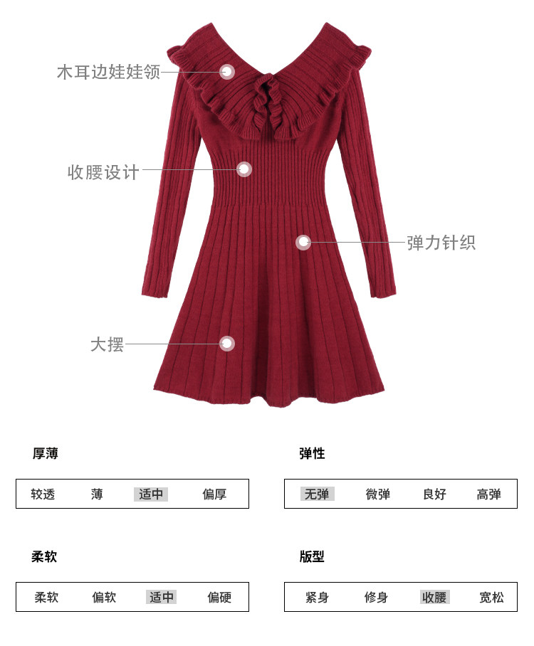 Красный трикотажный свитер, платье, V-образный вырез, французский стиль