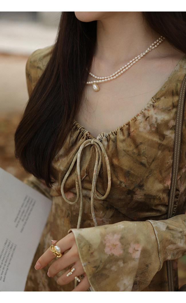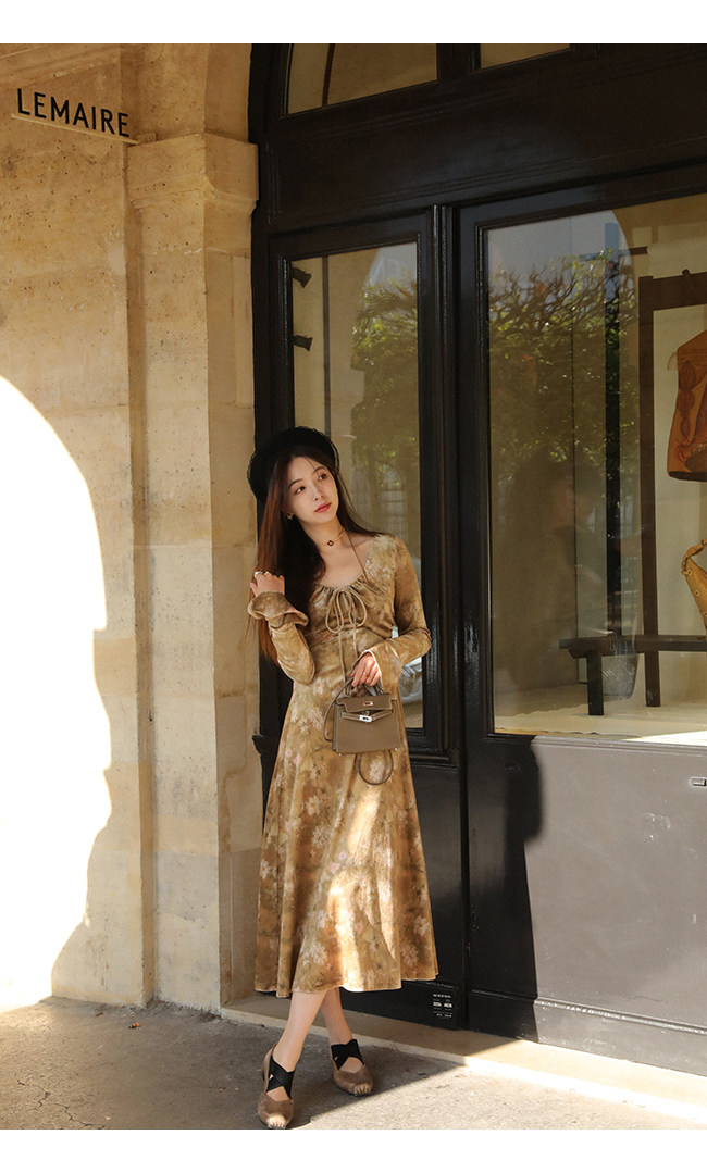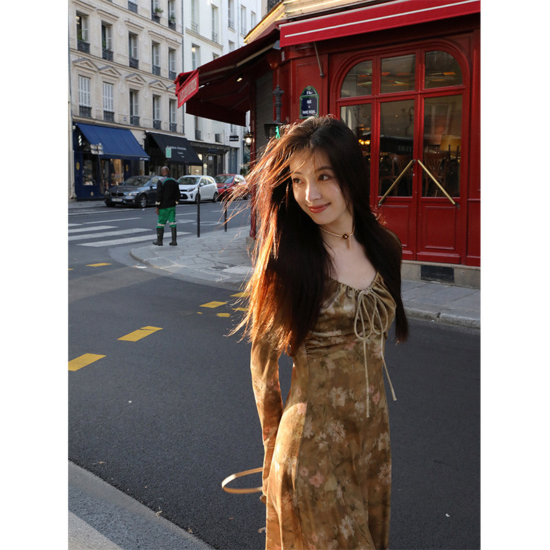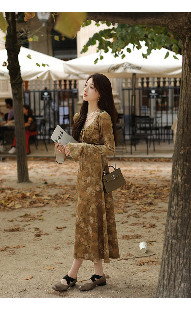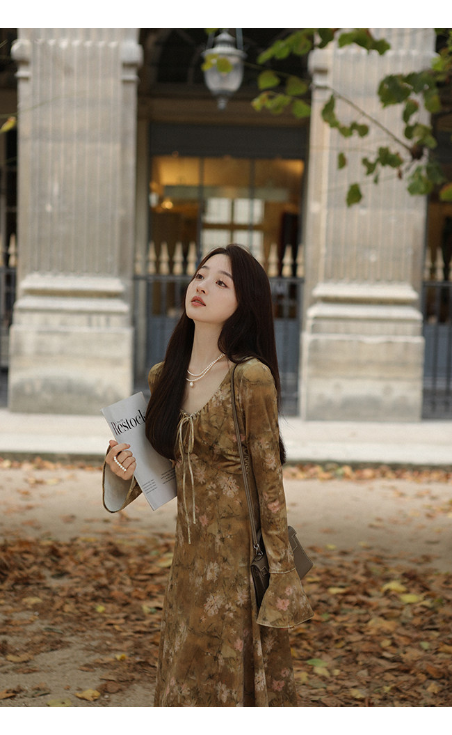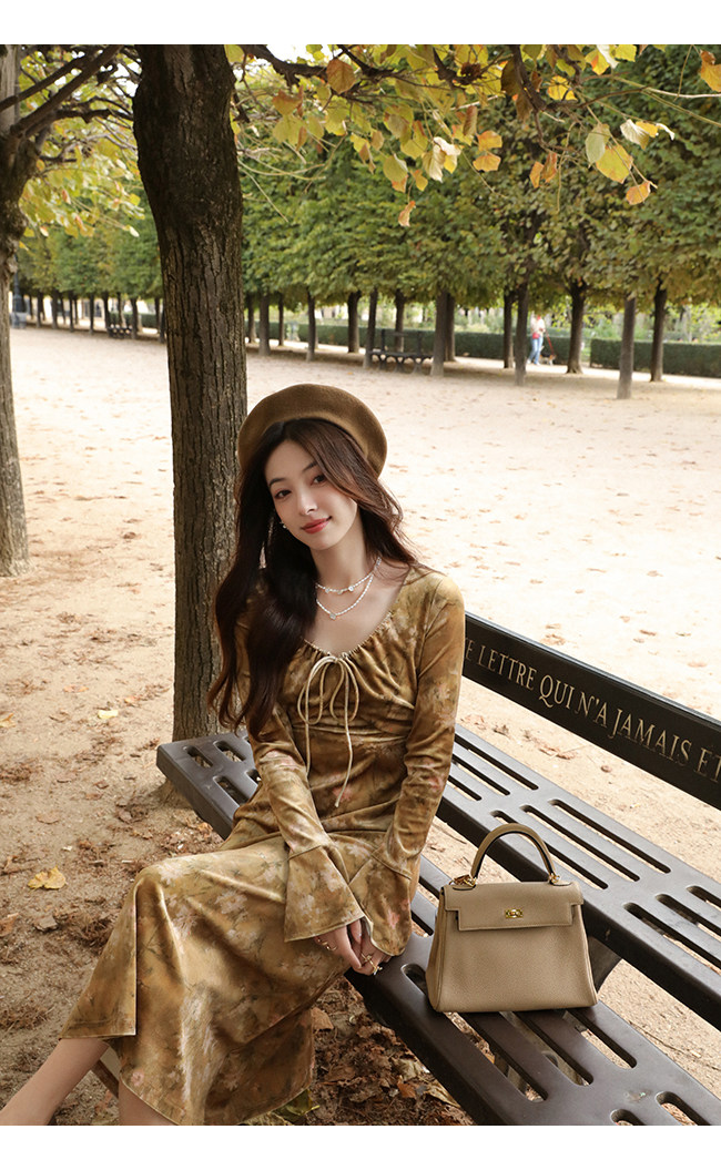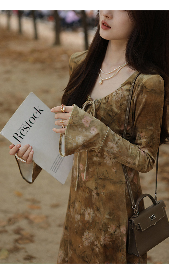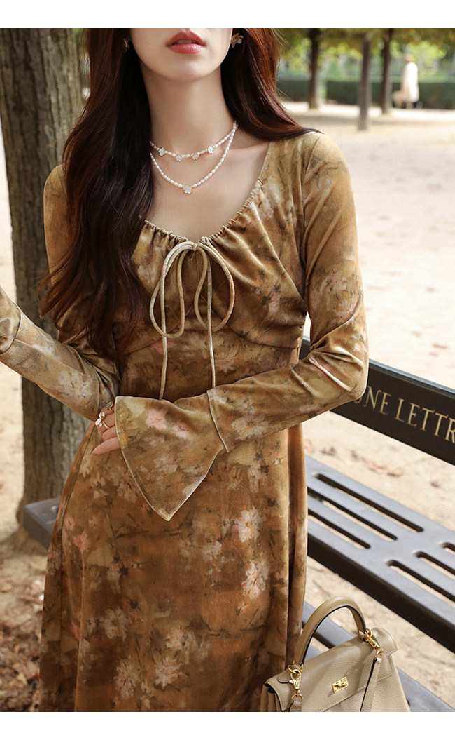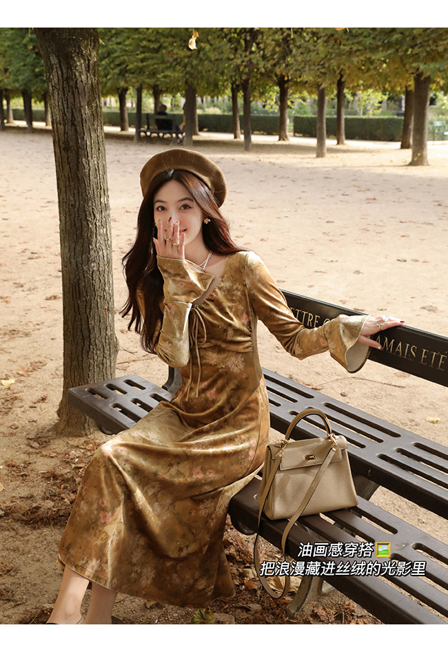 Бархатный мегафон, зимнее платье с рукавами, длинная юбка, средней длины