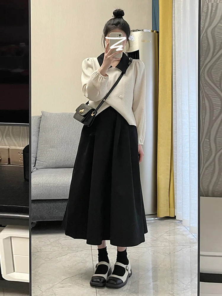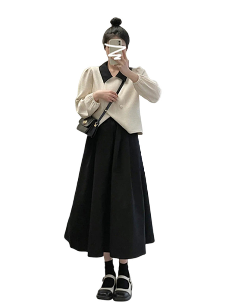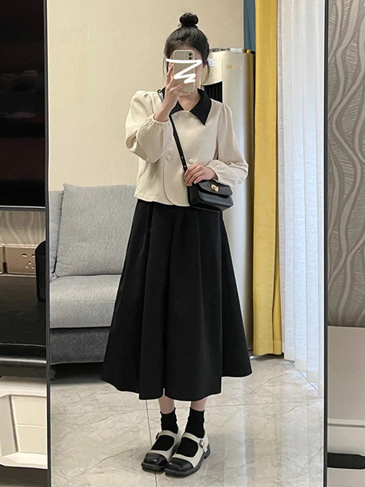 Весенний комплект, демисезонное платье, длинная юбка, городской стиль, подходит для подростков, французский стиль