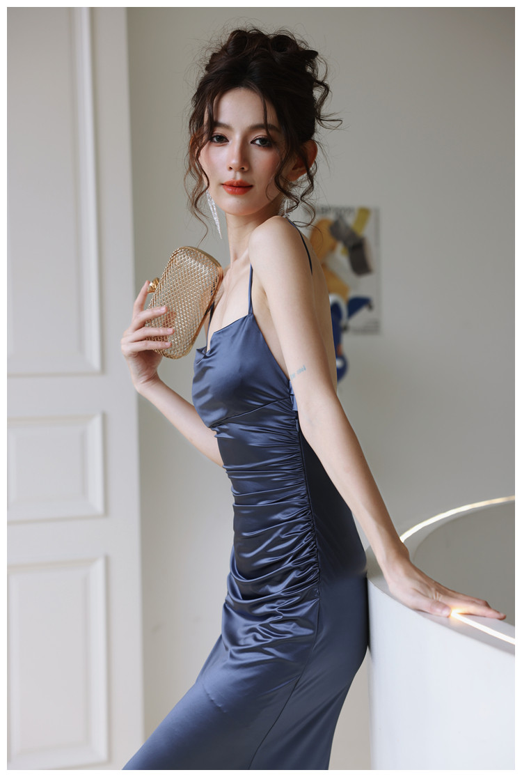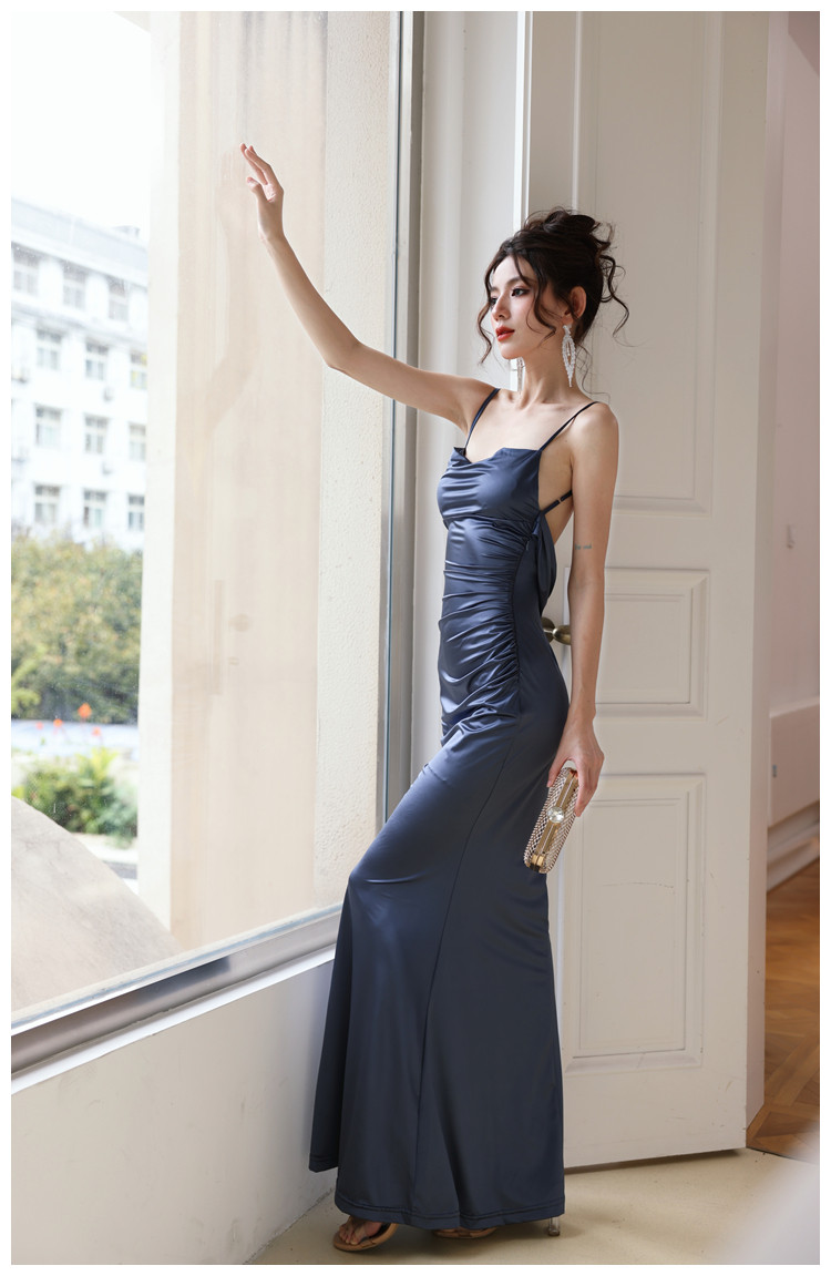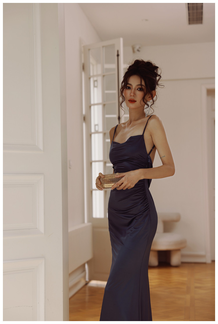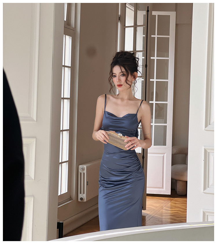 dollytang Текстурированное атласное платье с открытой спиной и подтяжками Duojia Chaebol для дочери, легкое вечернее платье