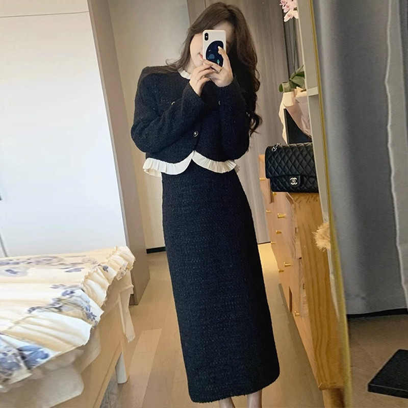 Комплект, черный лонгслив, демисезонное платье, подходит для подростков, коллекция 2023