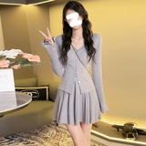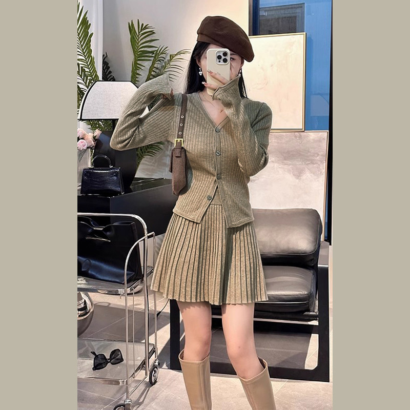 Трикотажный свитер, осенняя демисезонная юбка в складку, платье, комплект, коллекция 2023, подходит для подростков