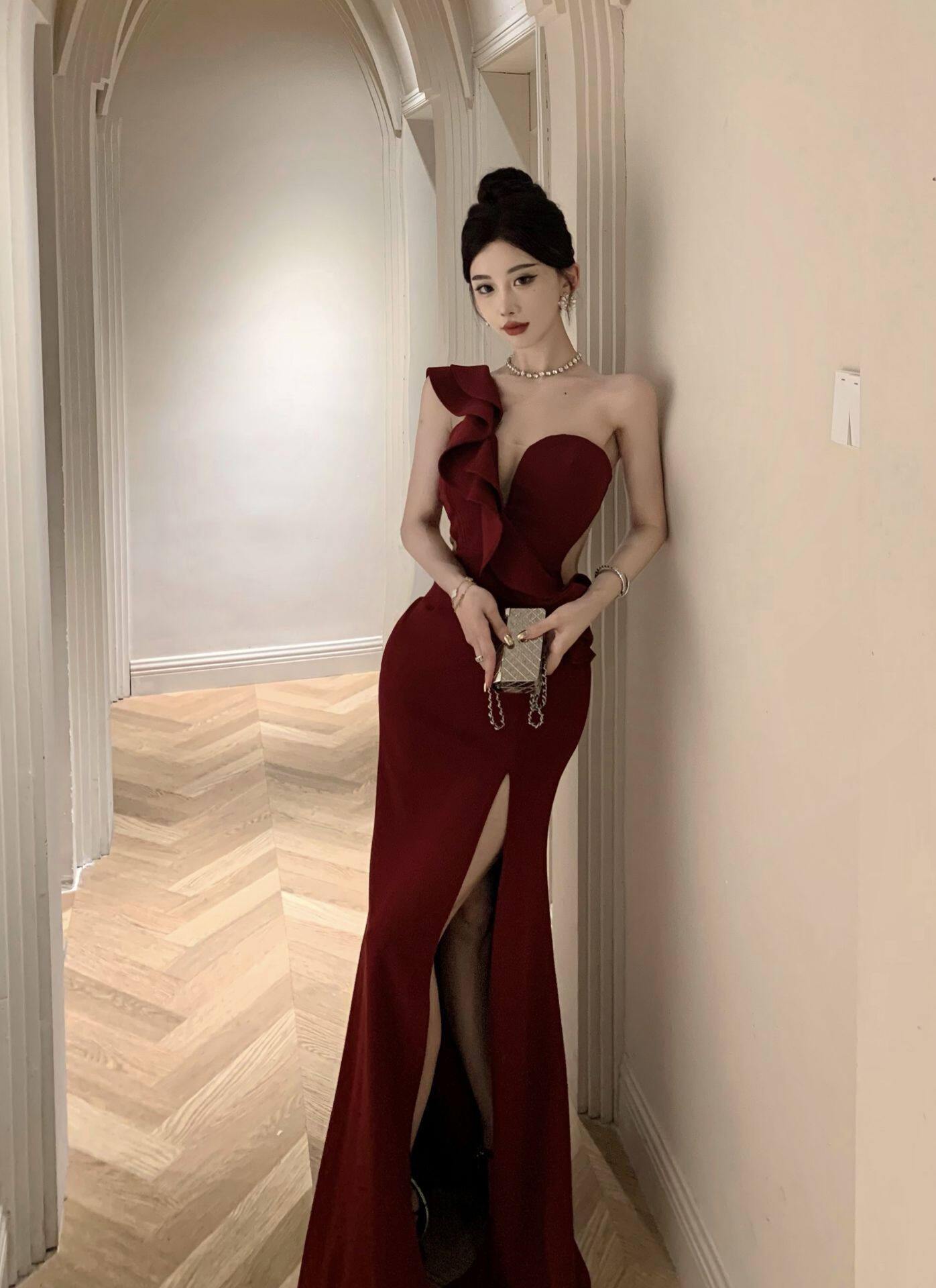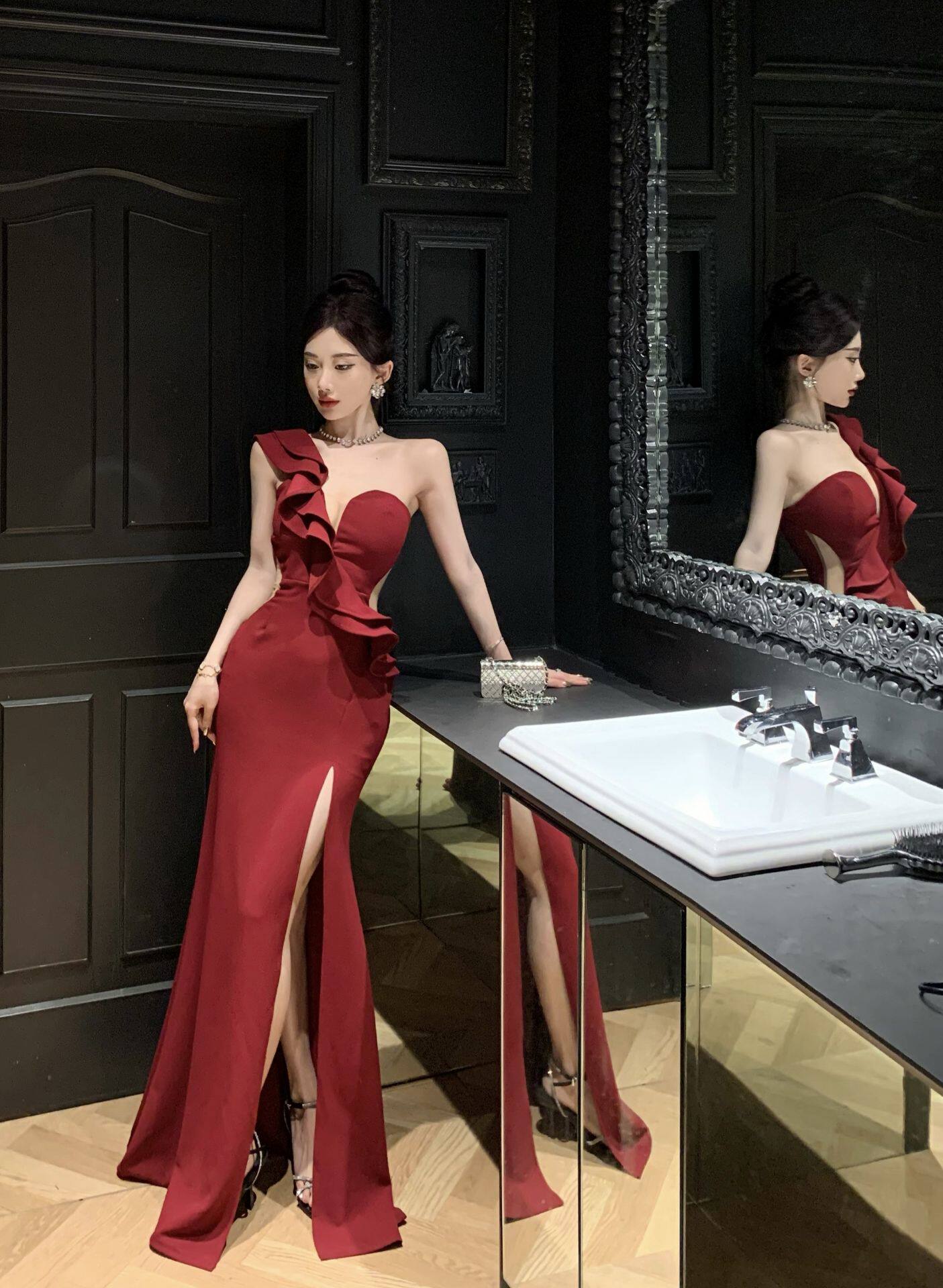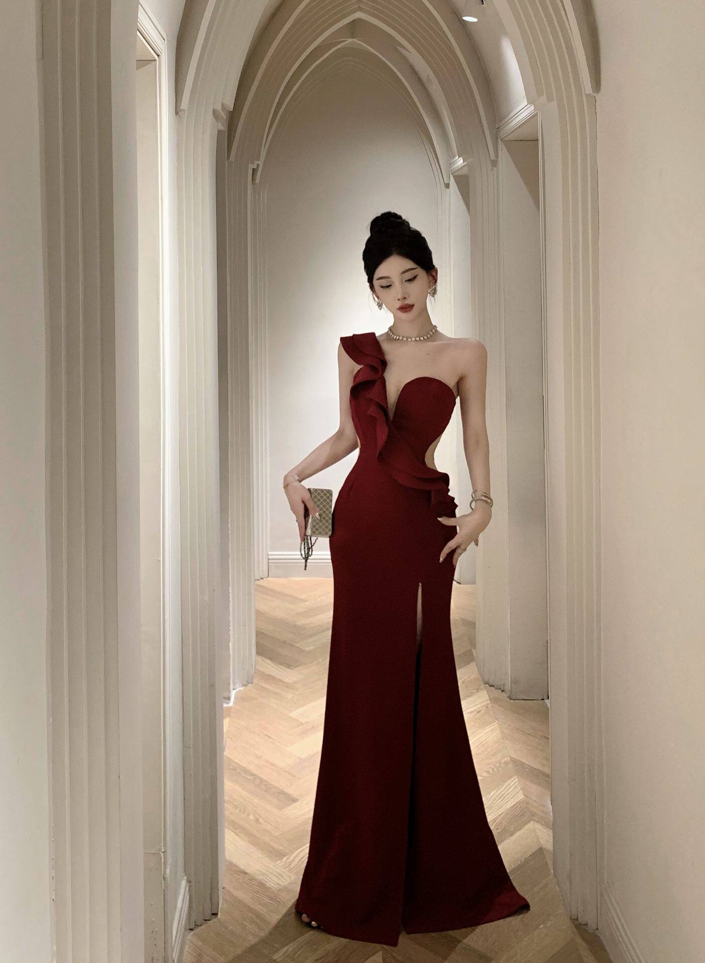 Сексуальное вечернее платье, длинная юбка, высокая талия, крой «рыбий хвост»