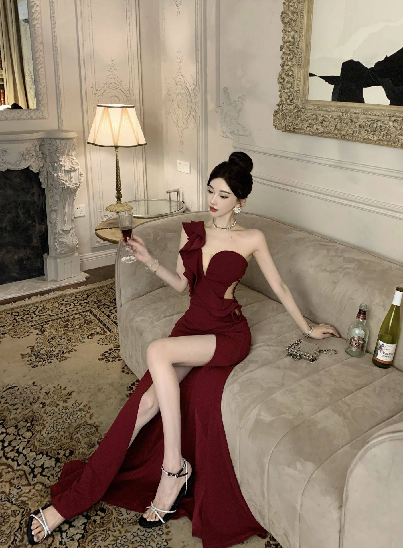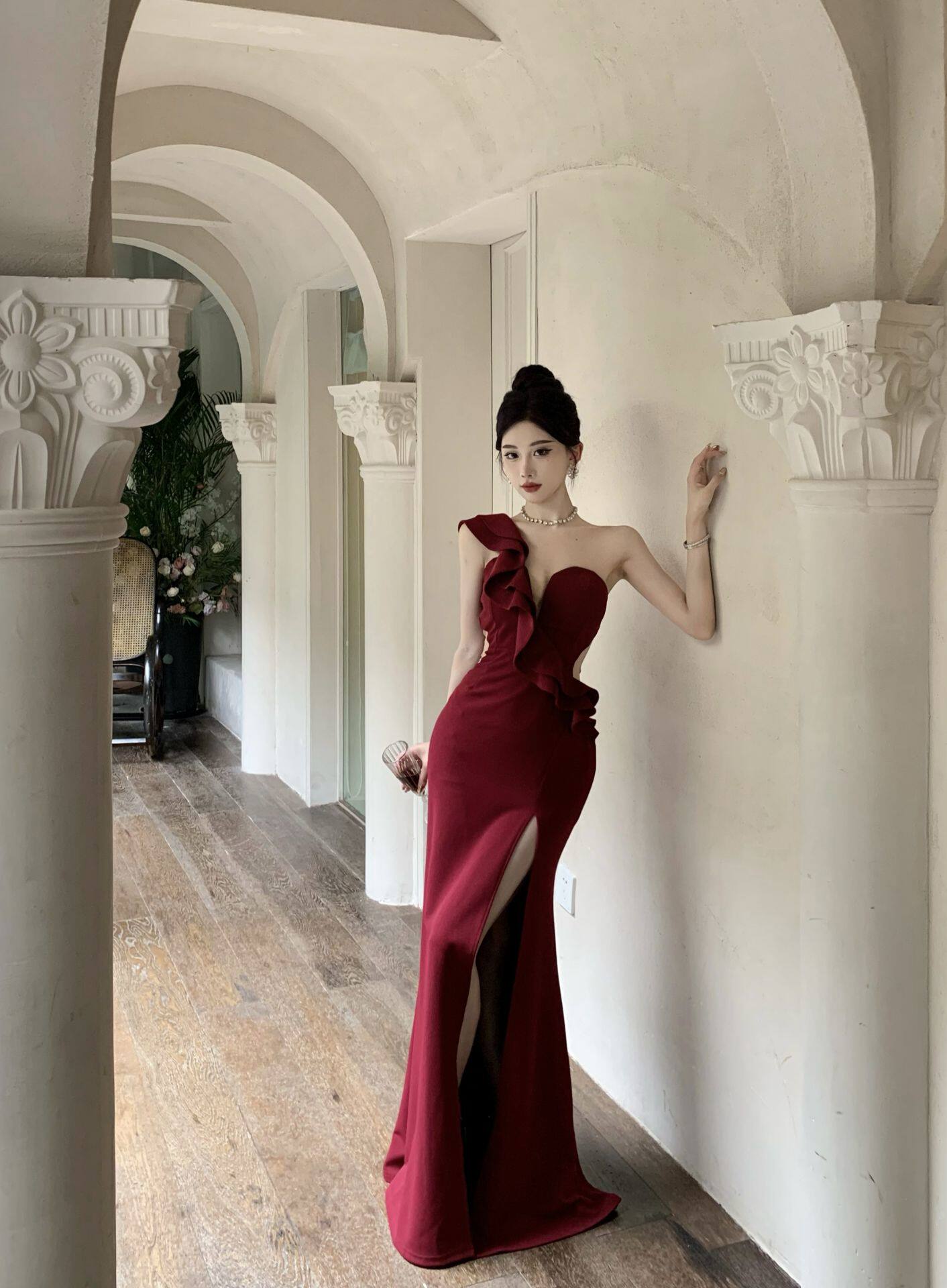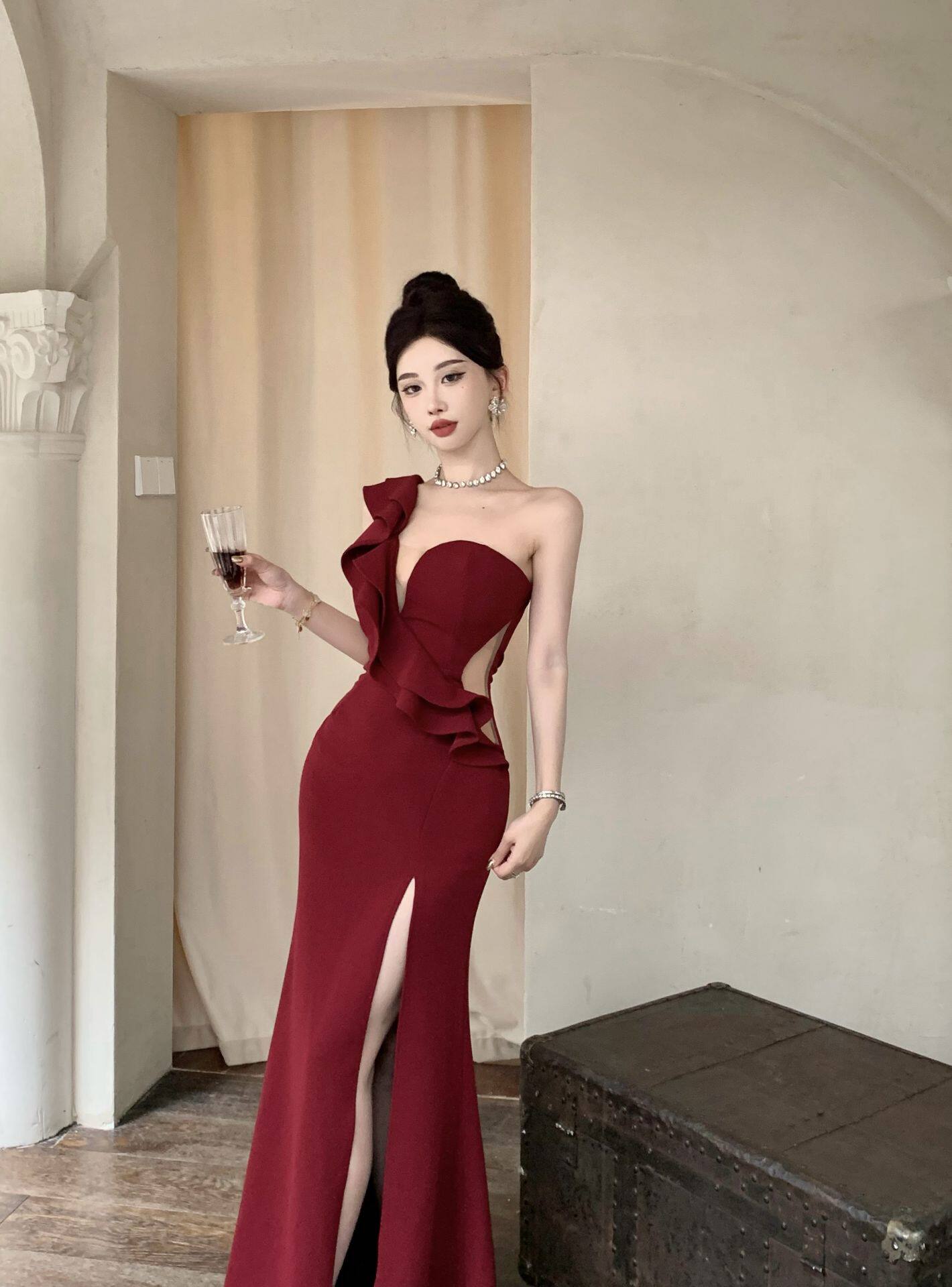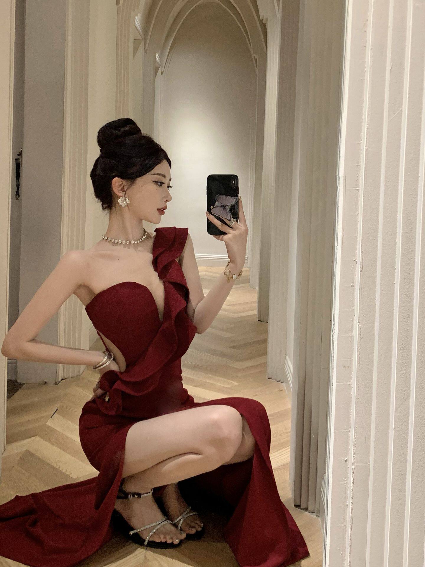 Сексуальное вечернее платье, длинная юбка, высокая талия, крой «рыбий хвост»