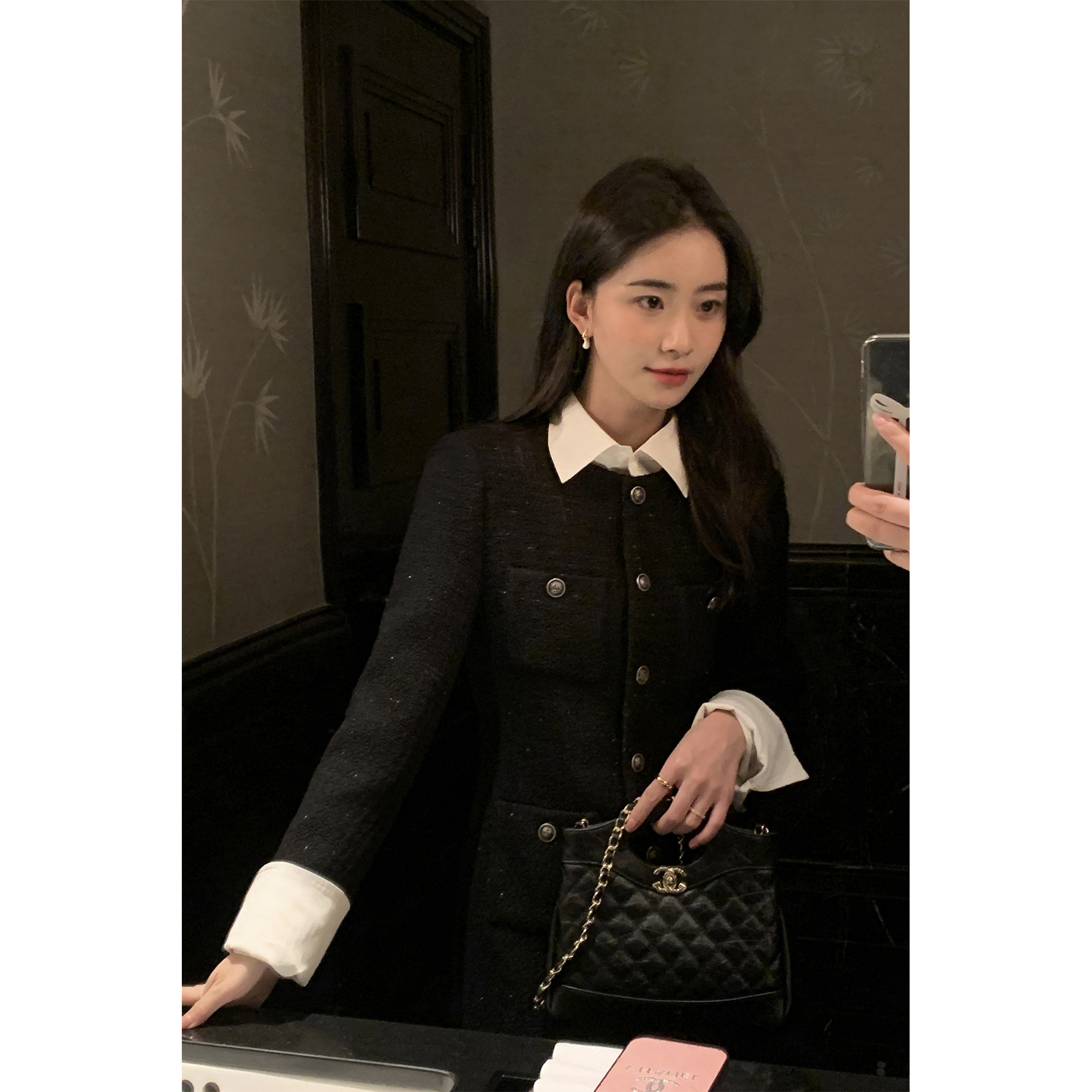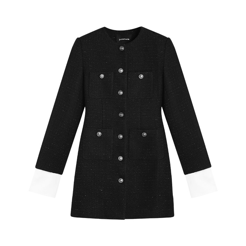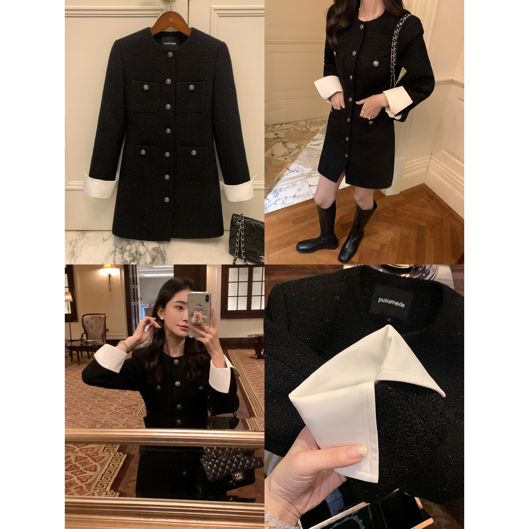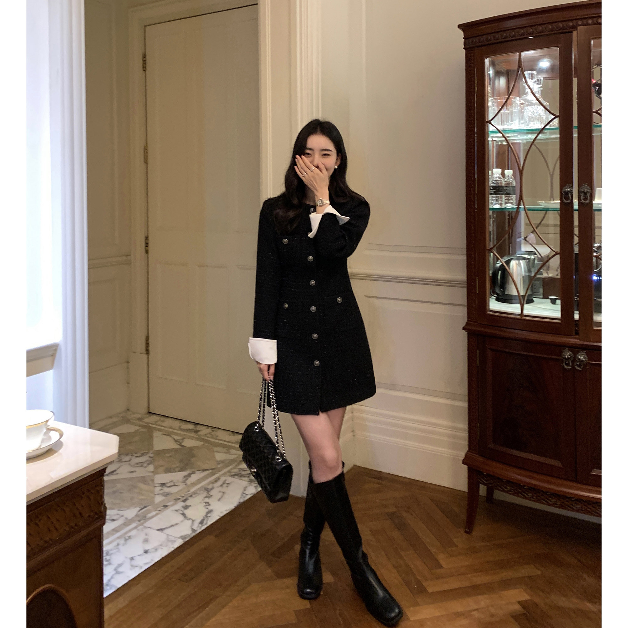 Черное платье, шерстяная приталенная мини-юбка, юбка, корсет, в стиле Шанель, изысканный стиль