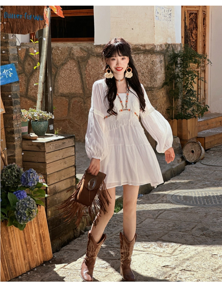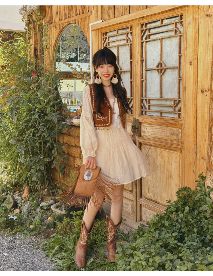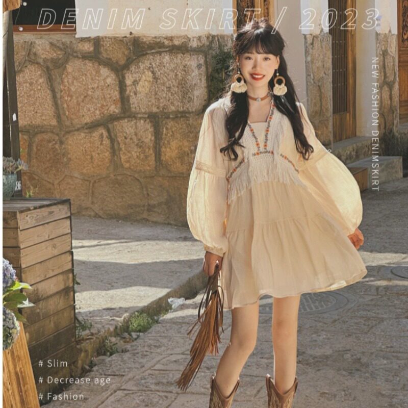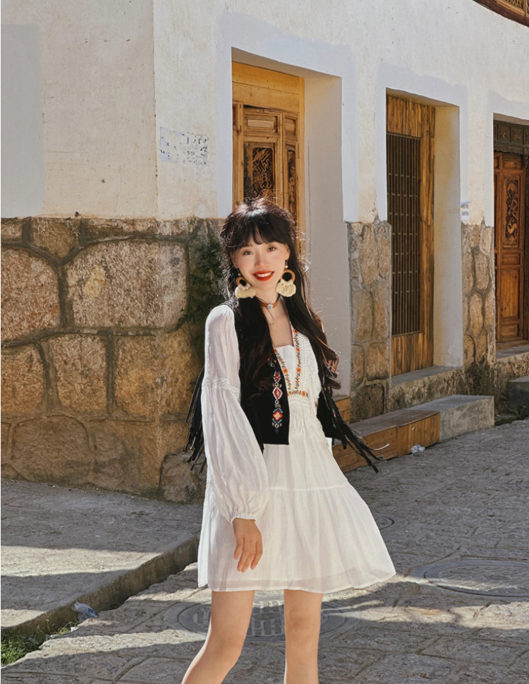 Милое винтажное платье из провинции Юньнань для путешествий, приталенный кружевной корсет, мини-юбка, юбка, по фигуре
