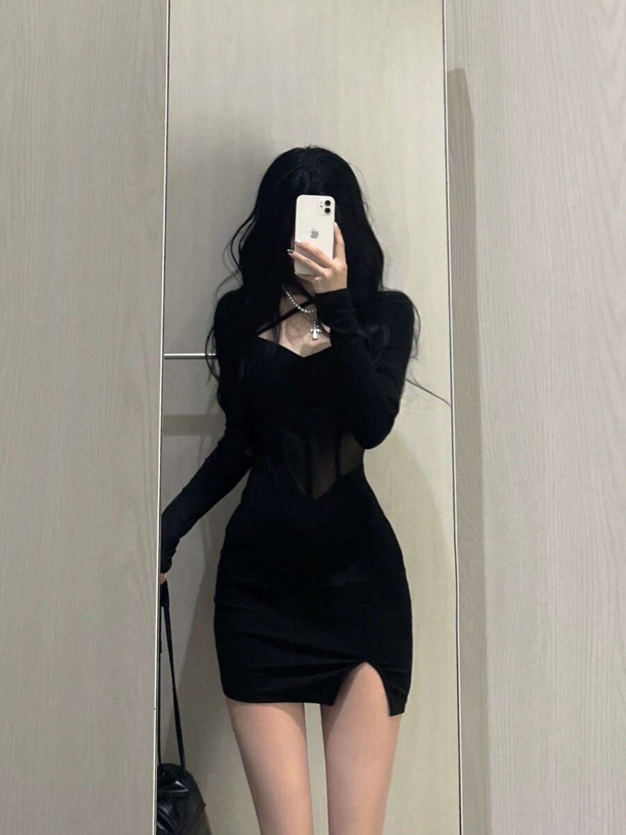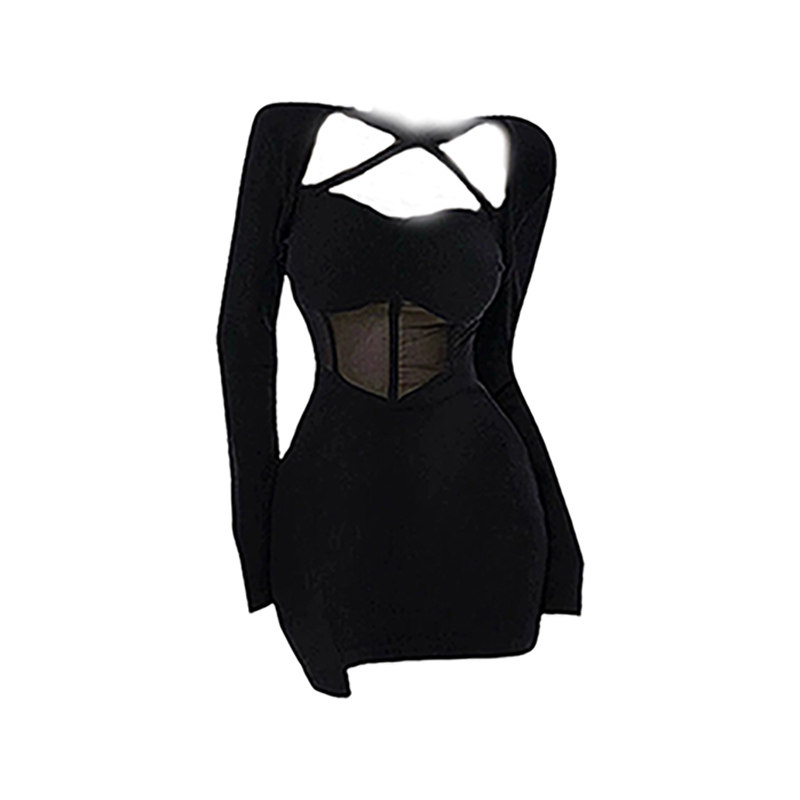 Черное весеннее платье, сумка, мини-юбка, с акцентом на бедрах